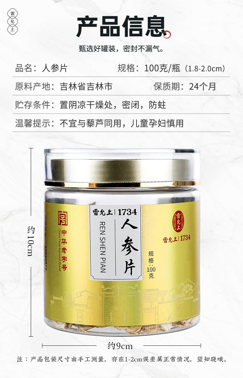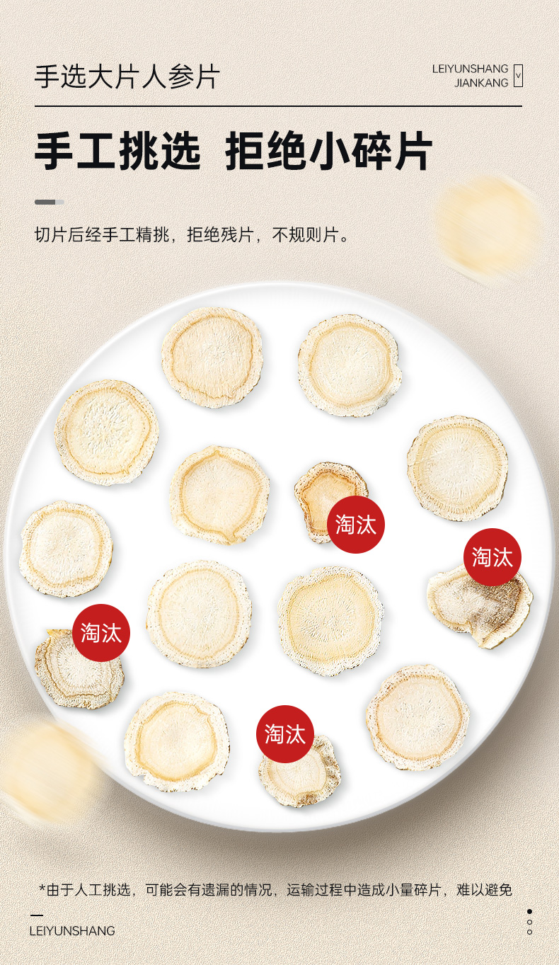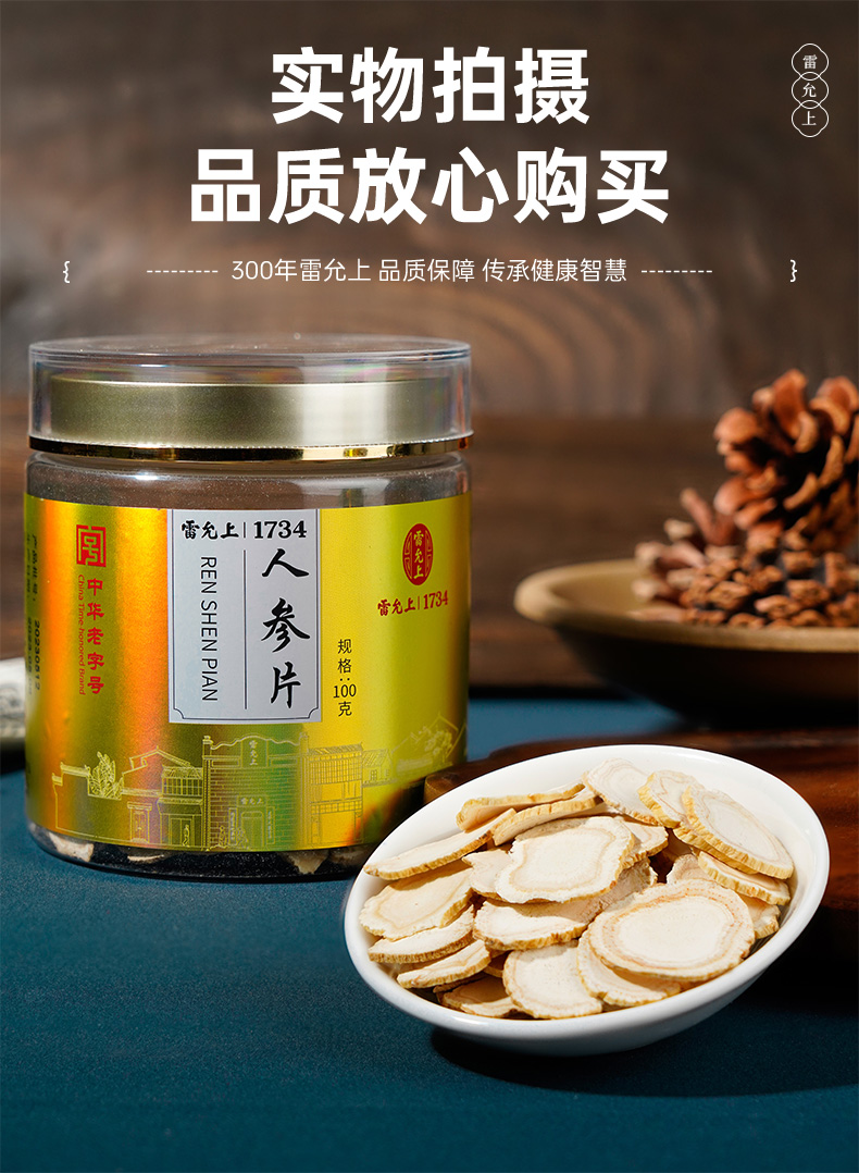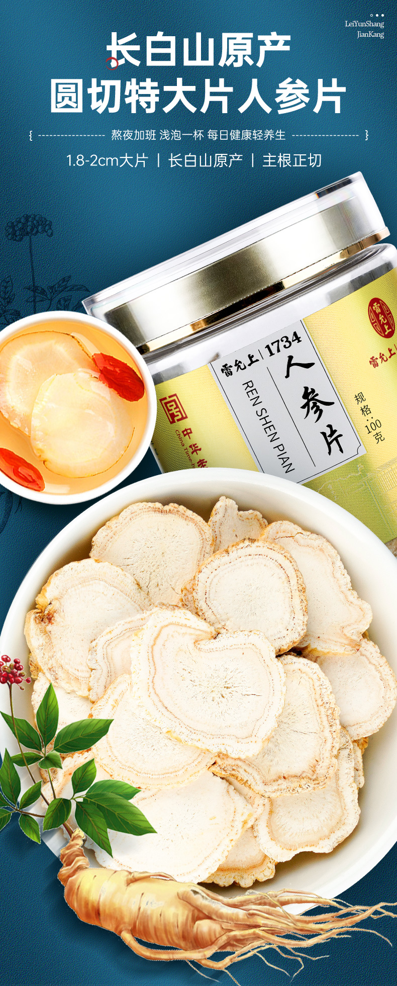 雷允上直营 | 长白山人参片100g/罐(直径1.8-2.0cm)自然原产品质老参浓香回甘