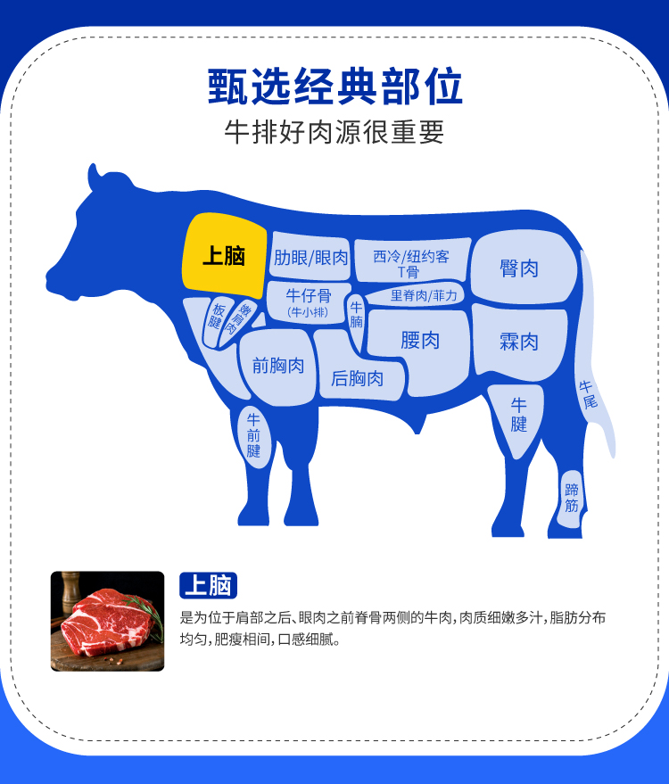 【谷饲上脑原切牛排套餐】无添加不拼接 黄金部位自带雪花纹!500g*3袋(9-12片) 下单送和牛肉饼4个、意面2袋、海盐黑胡椒12包、刀叉1套、铸铁煎锅(锅分开发货)