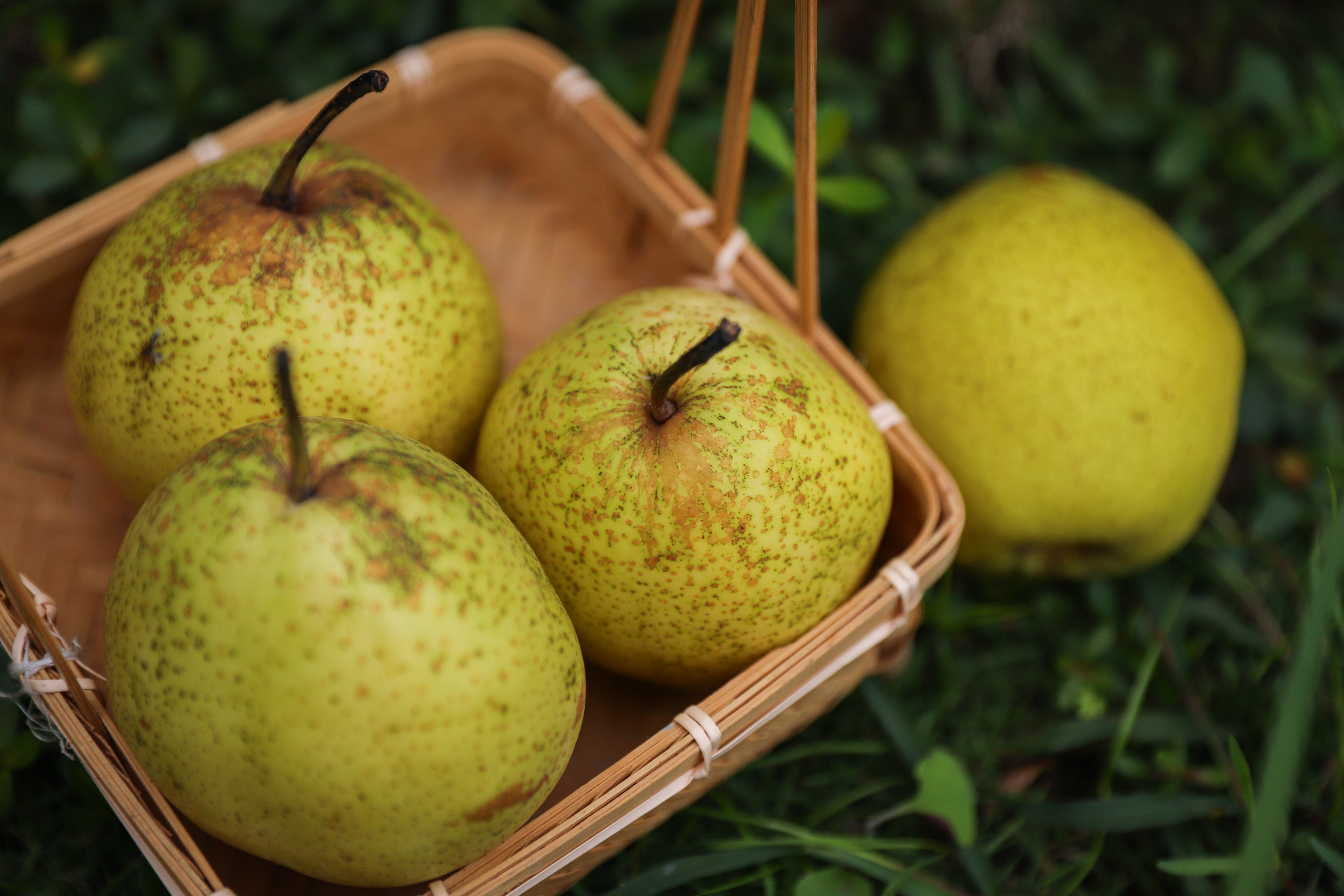 雪花梨成熟后肉质洁白无瑕,表皮有浅褐色斑点,皮肉厚,口感扎实,核小,有冰糖味和特殊的怡人香气。