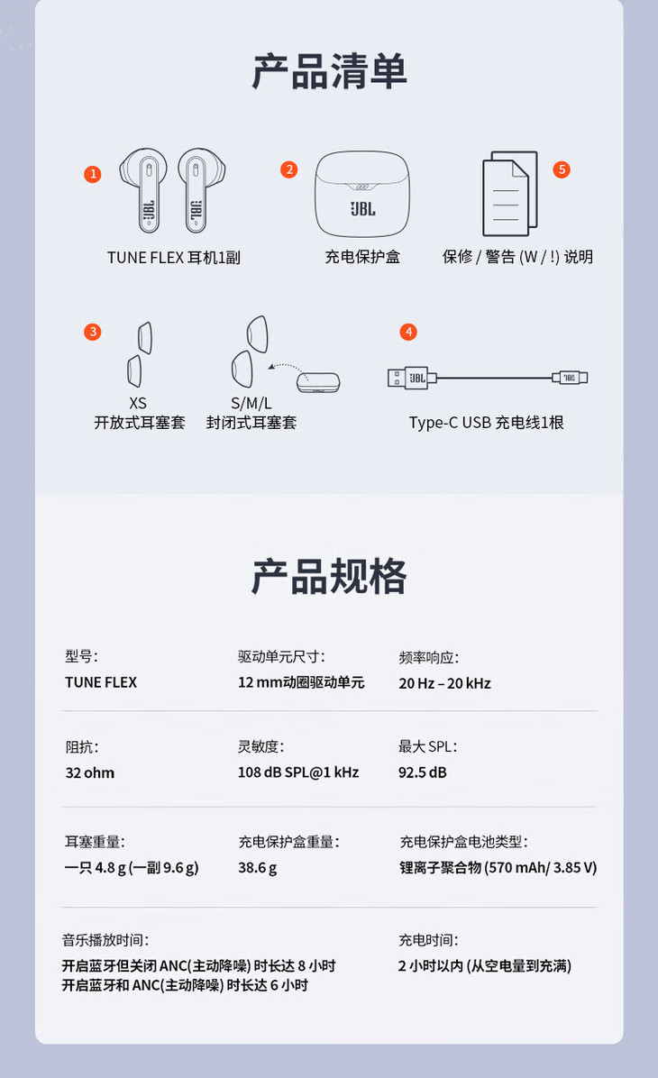 JBL TUNE FLEX 小晶豆 真无线蓝牙耳机