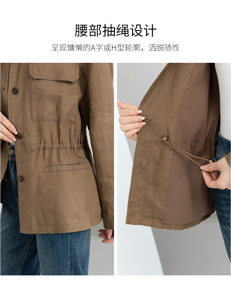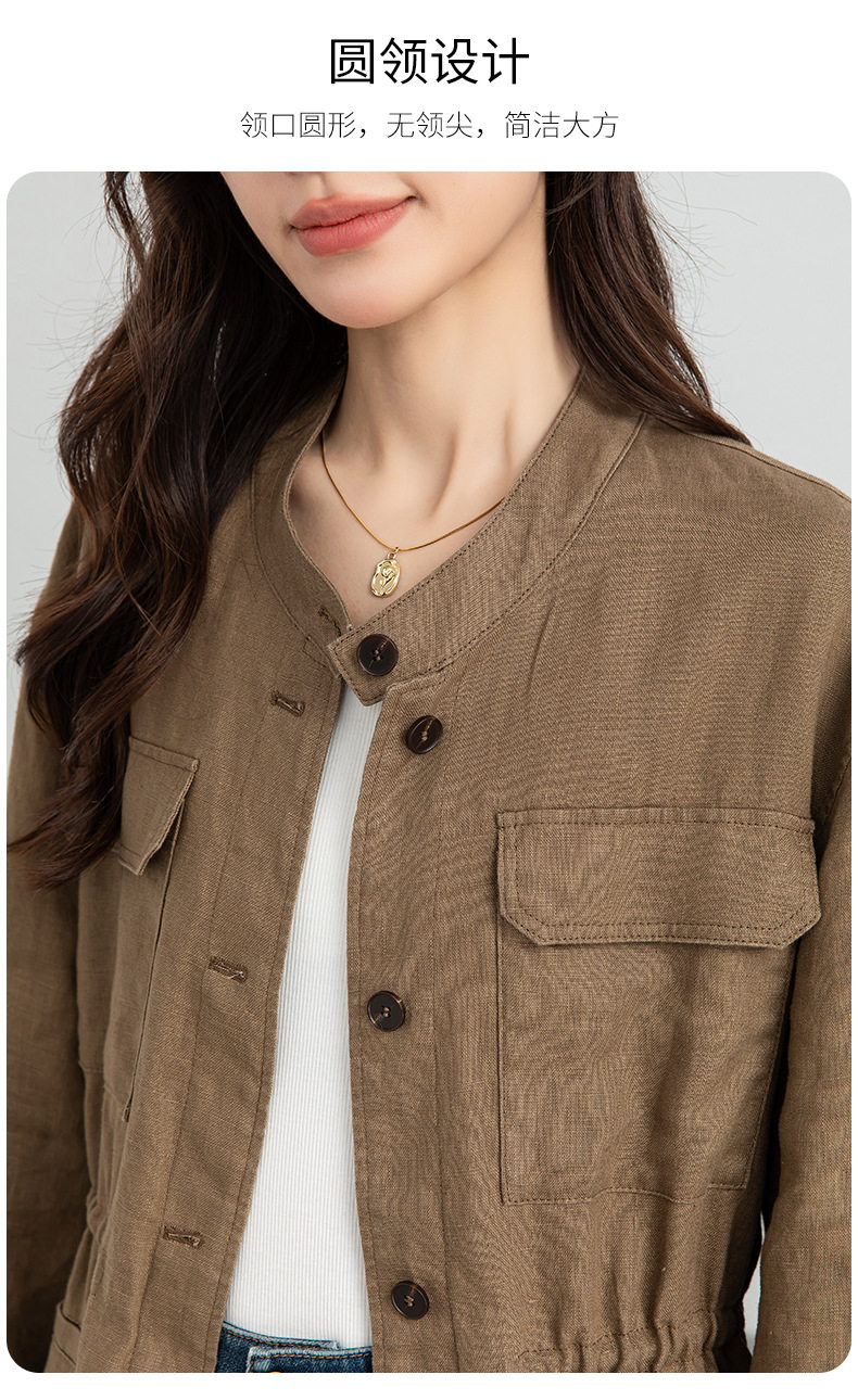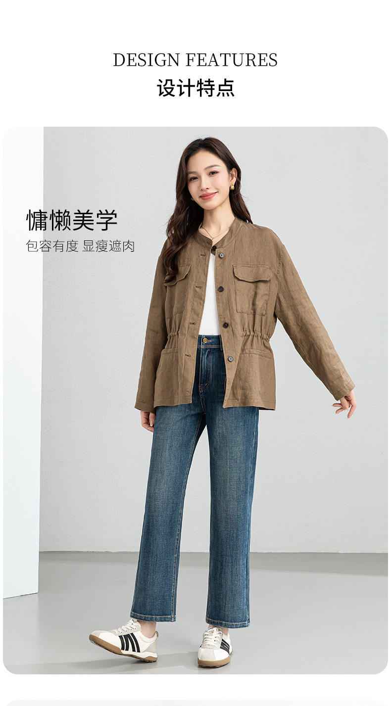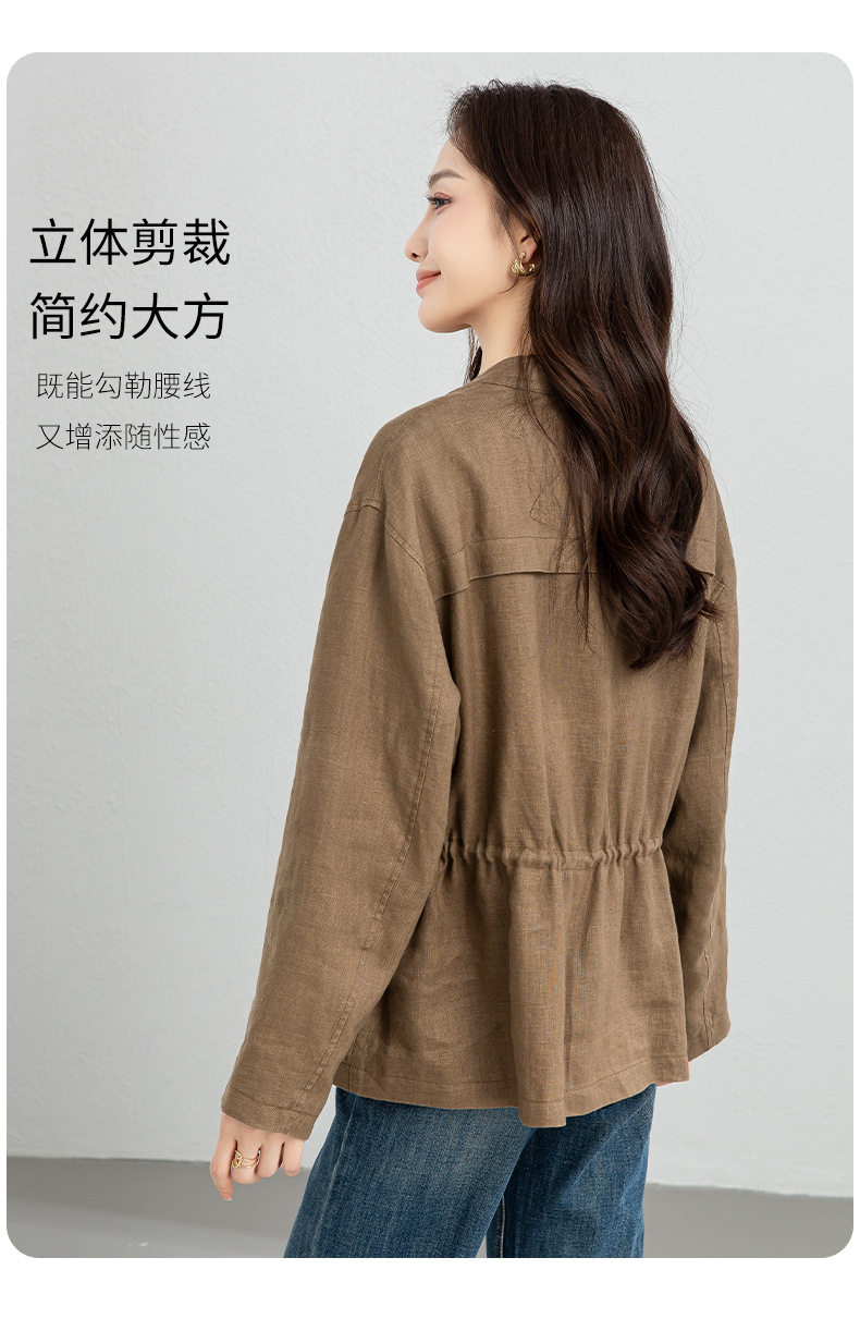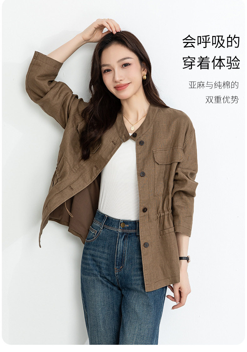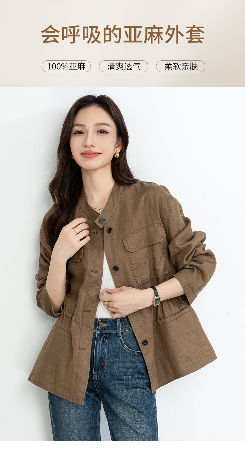 「高货xg」全新升级【铂金会员339/天猫459/差价120】(10738)洛诗琳2026春季新款老钱风立领系带收腰亚麻工装夹克外套