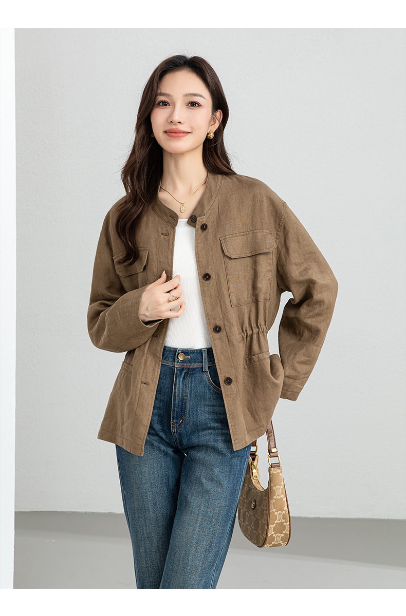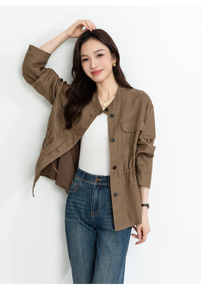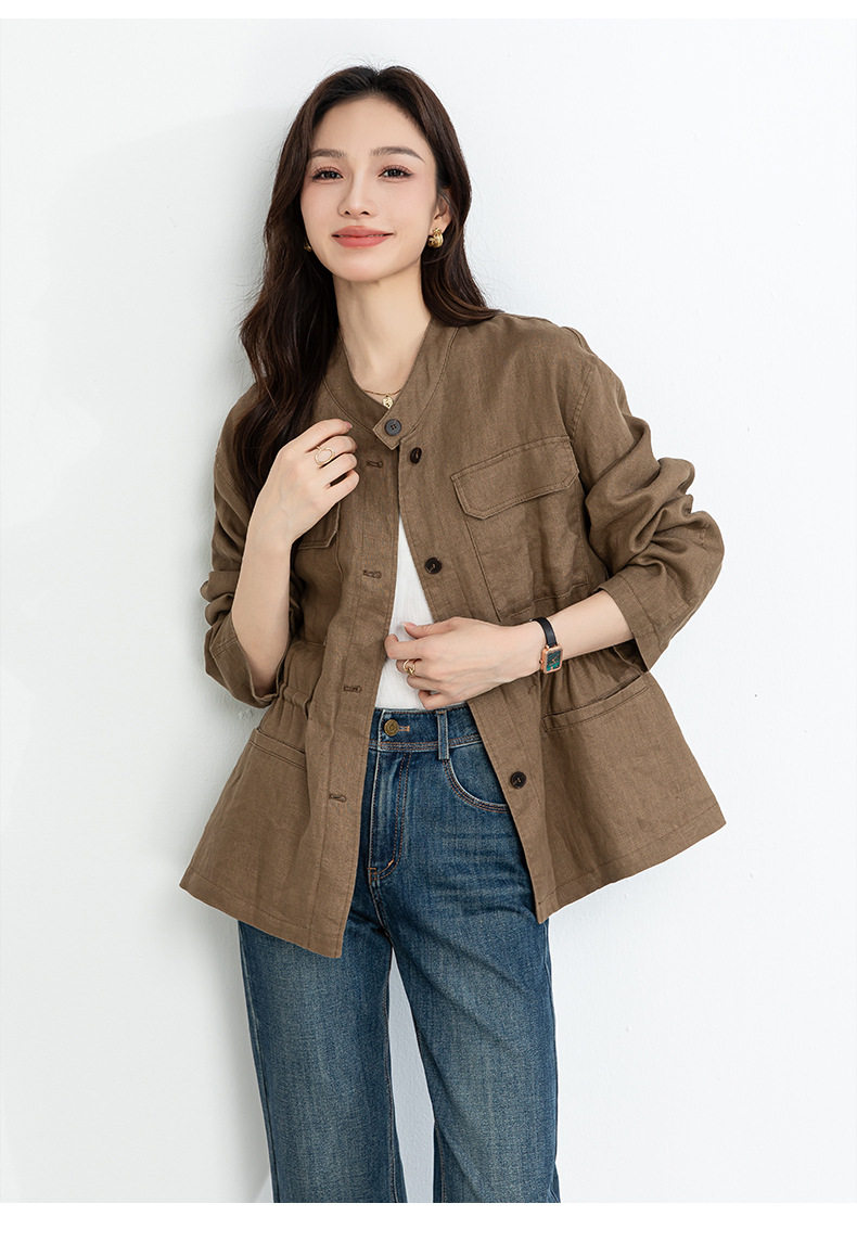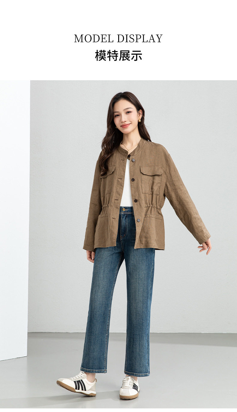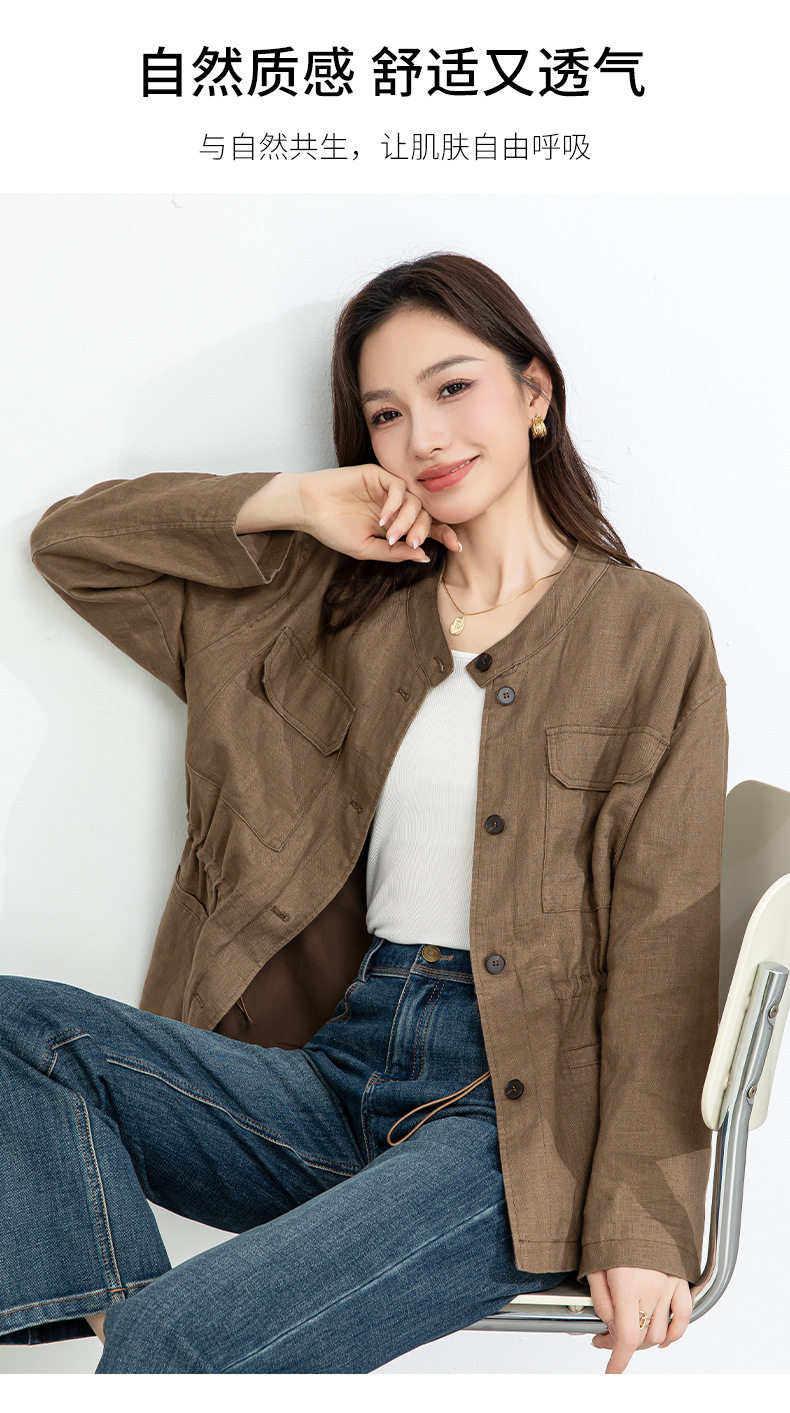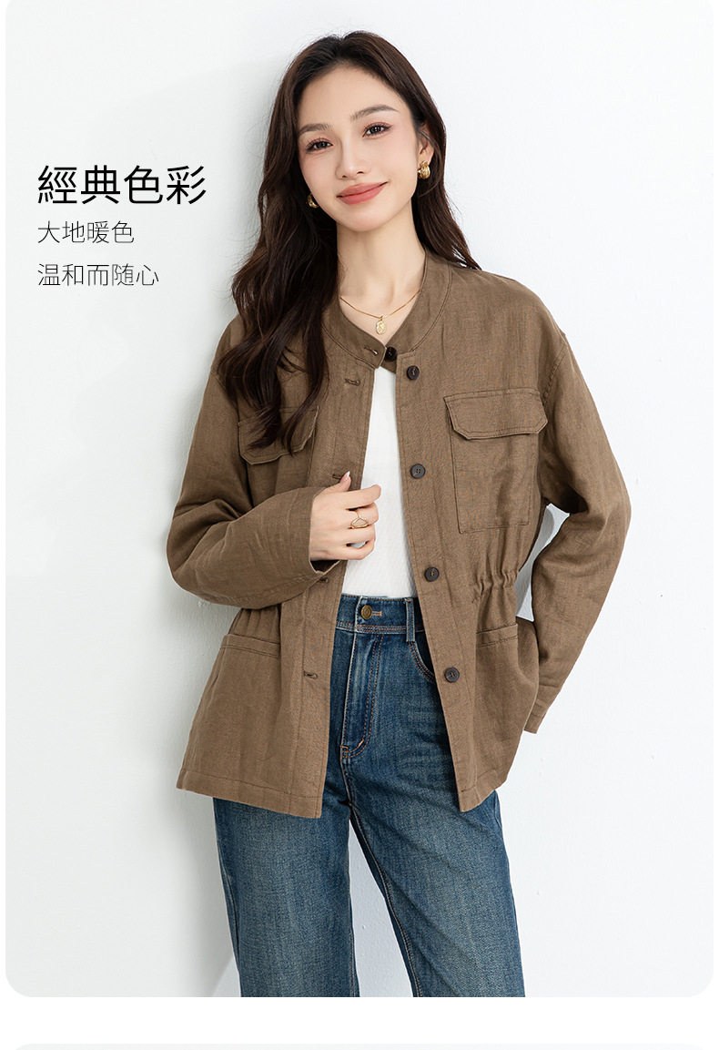 「高货xg」全新升级【铂金会员339/天猫459/差价120】(10738)洛诗琳2026春季新款老钱风立领系带收腰亚麻工装夹克外套