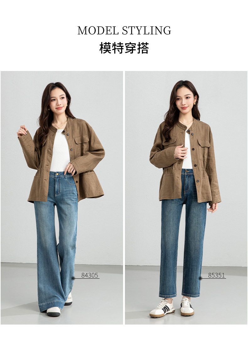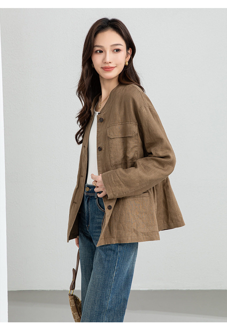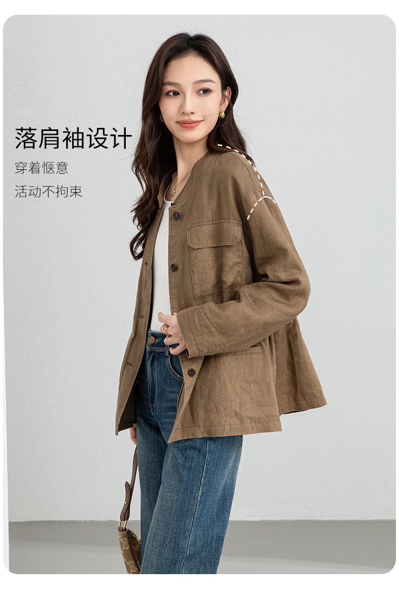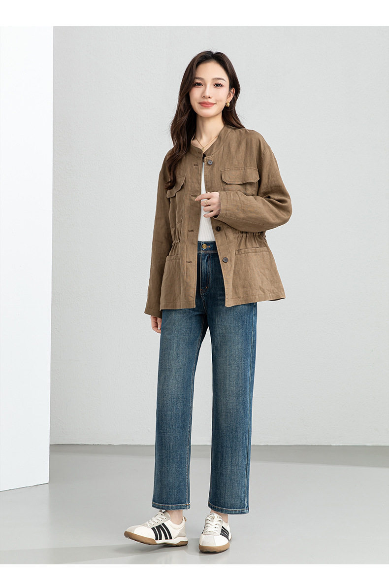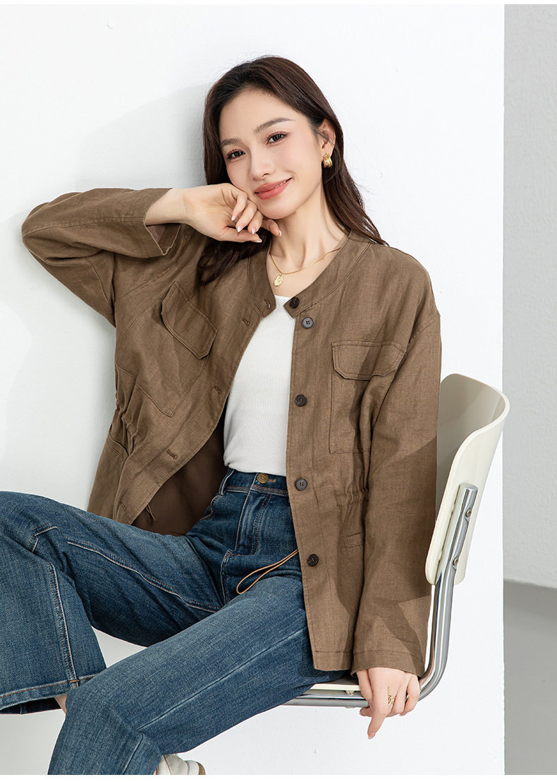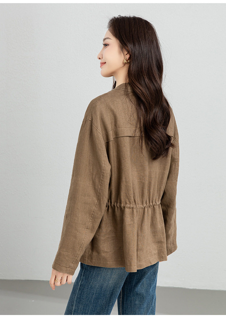 「高货xg」全新升级【铂金会员339/天猫459/差价120】(10738)洛诗琳2026春季新款老钱风立领系带收腰亚麻工装夹克外套