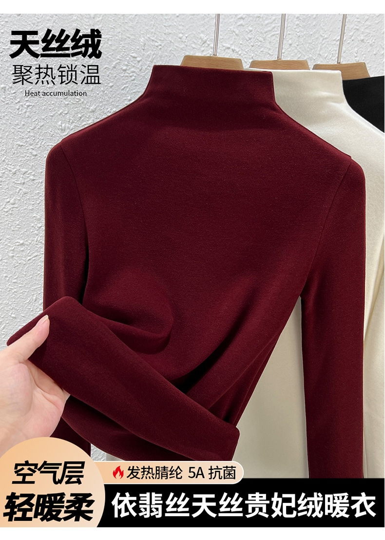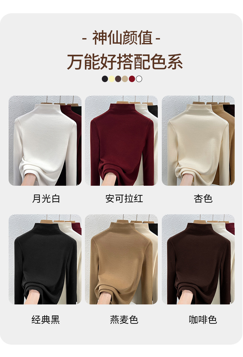 「自j」全新升级【铂金会员119/天猫159/差价40】(53906)洛诗琳新款加绒打底衫2025秋冬半高领加厚天丝绒长袖T恤女