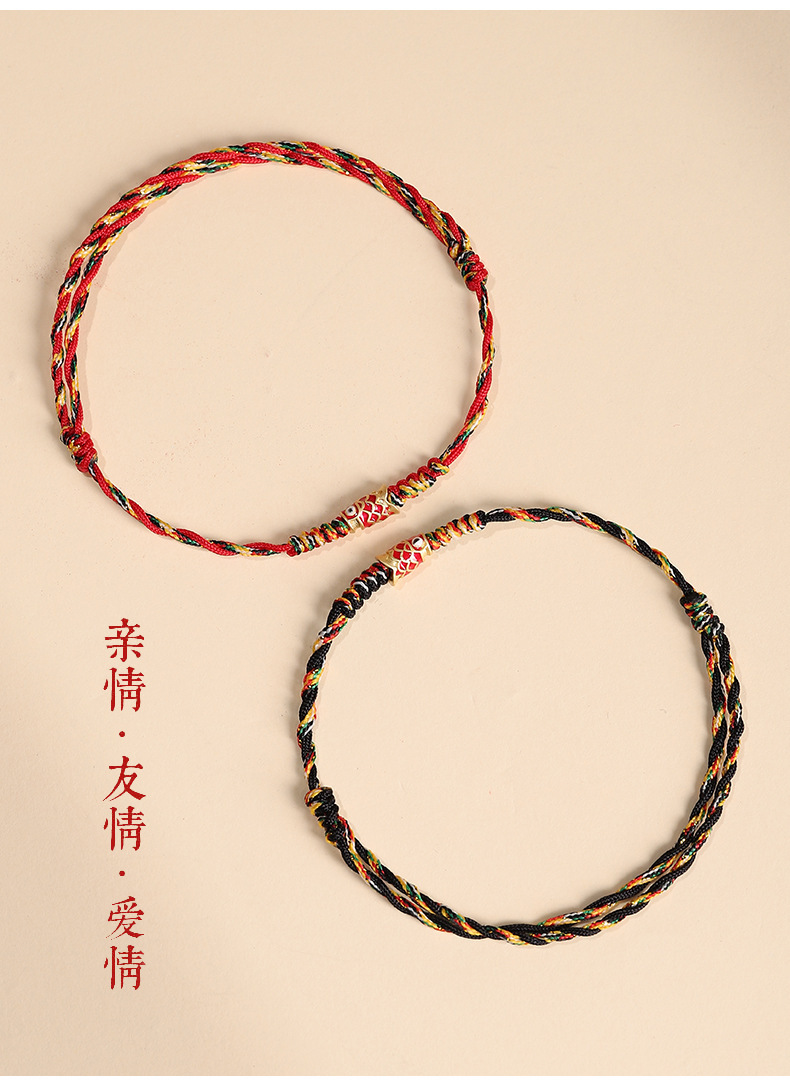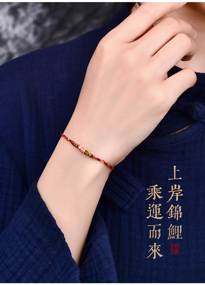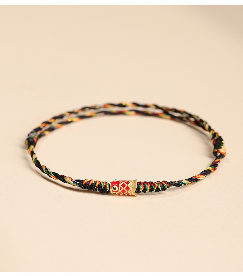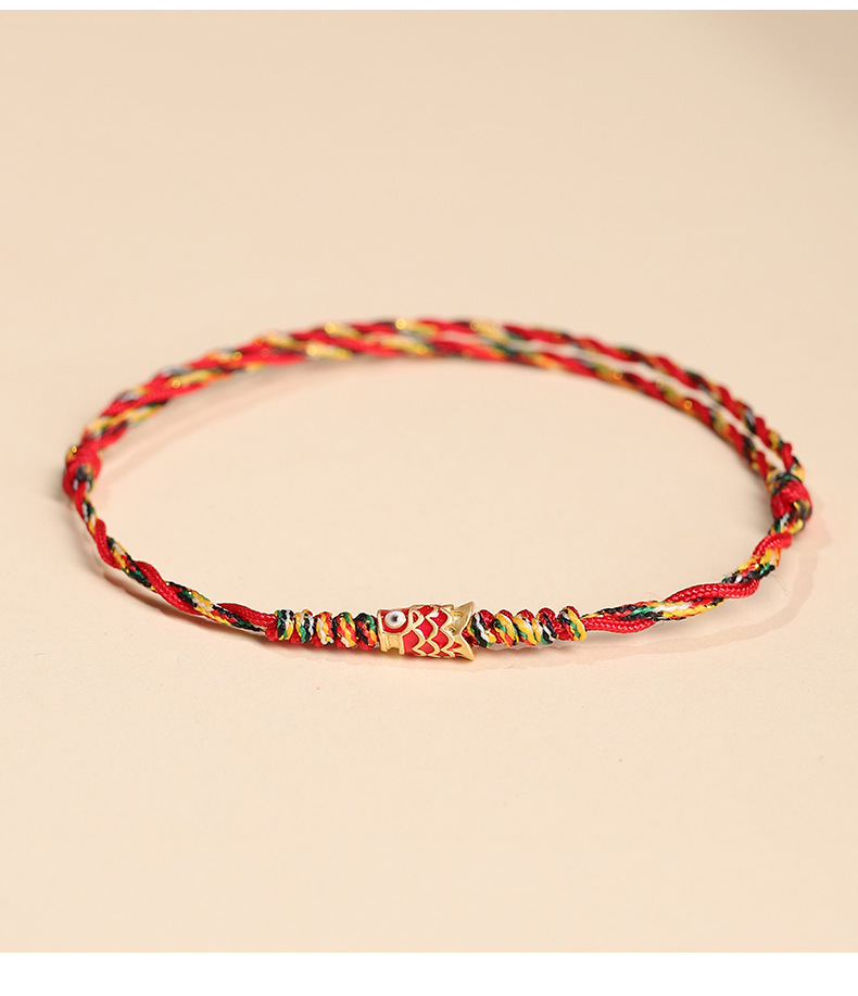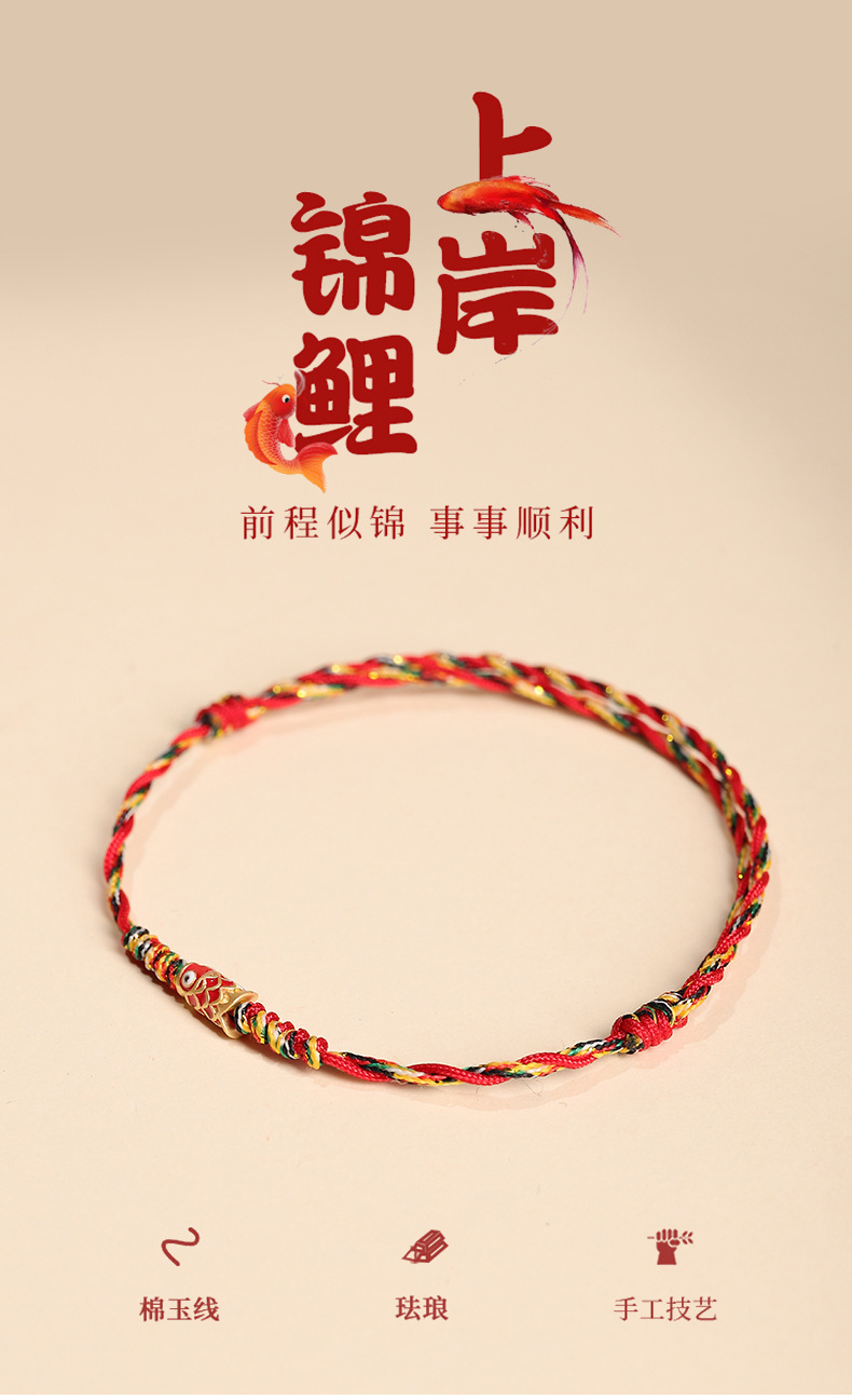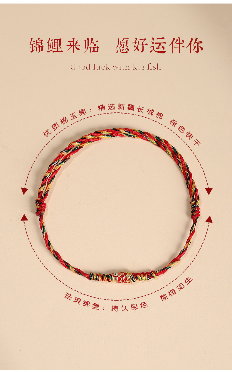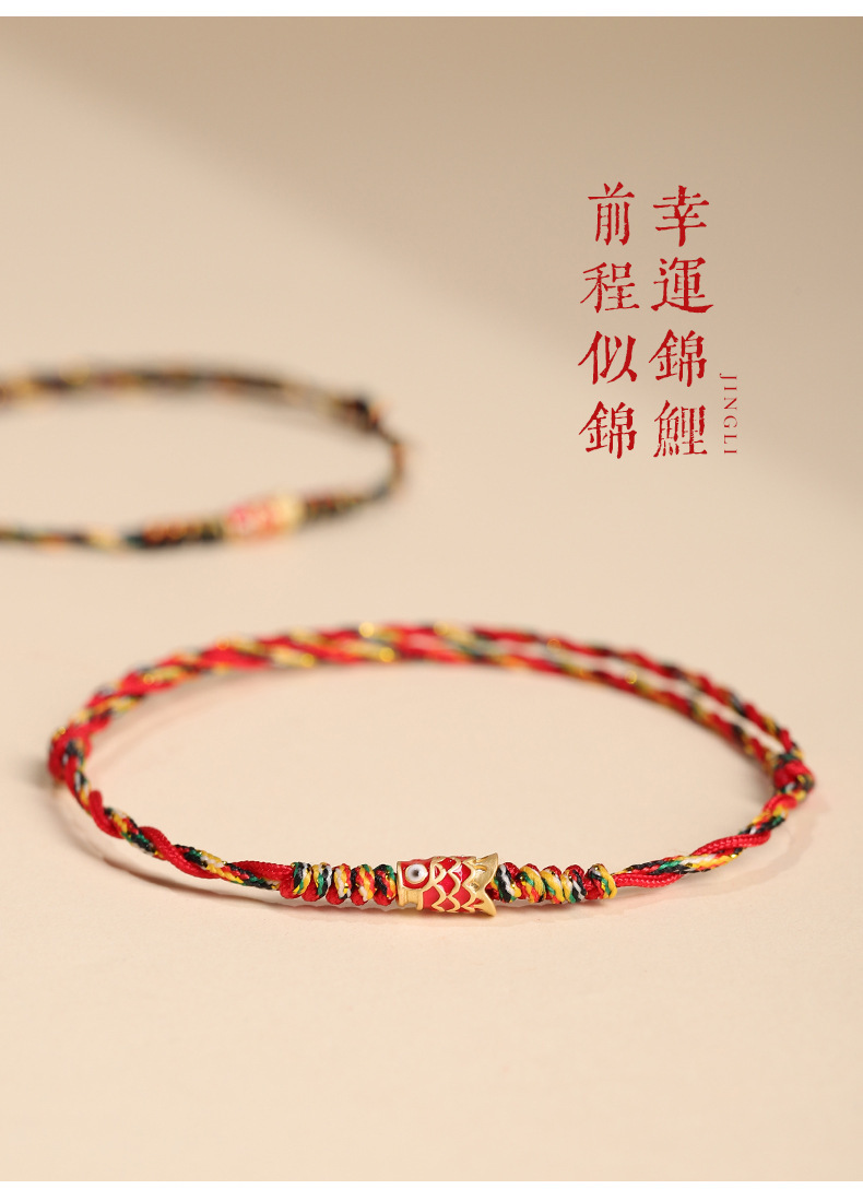【锦鲤上岸,前程似锦,事事顺利】五彩好运锦鲤红手绳 红绳手链女款 端午节编织手绳 脚链上岸礼物-QQ