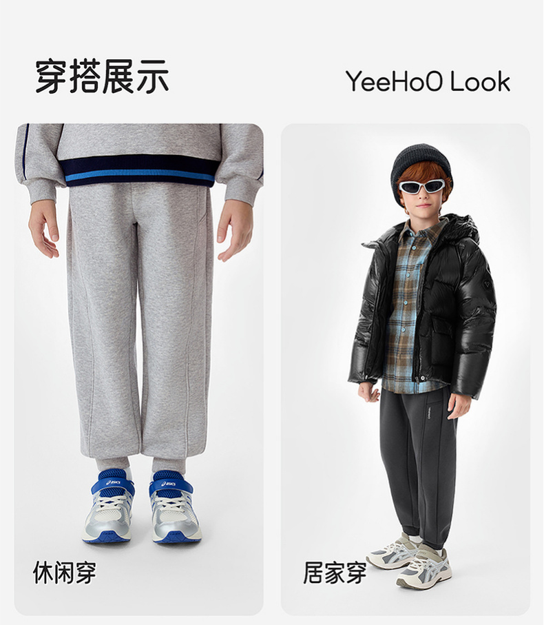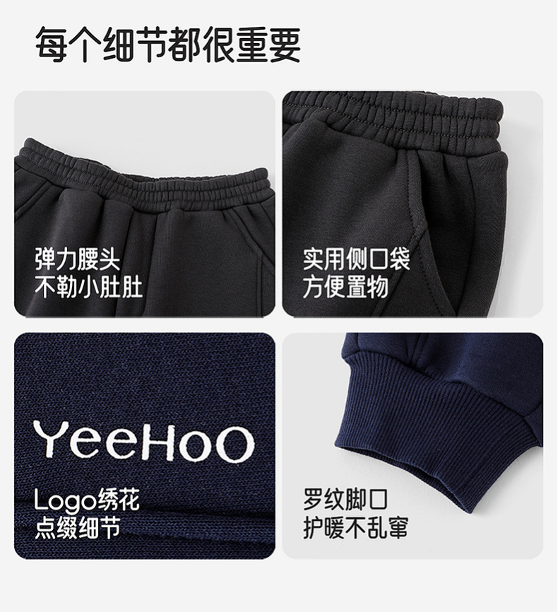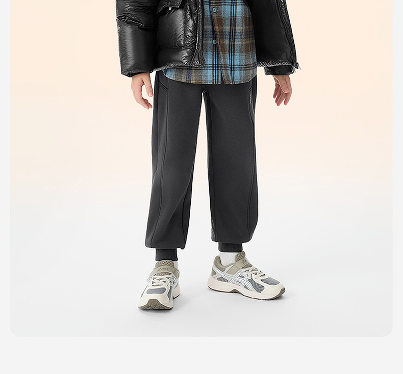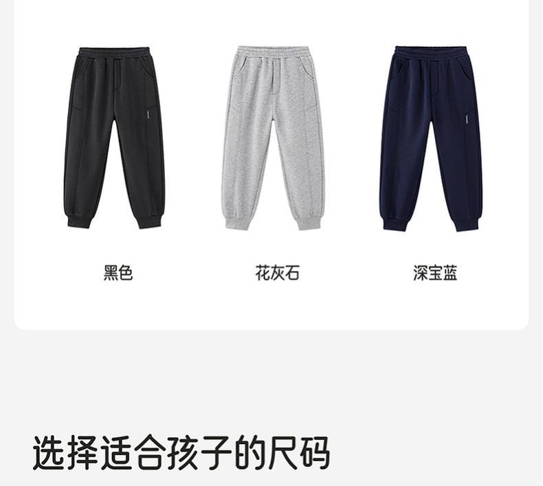 英氏儿童长裤远红外秋冬保暖男童防风裤中童纯色简约百搭时尚裤子