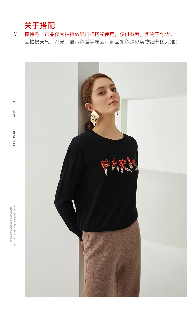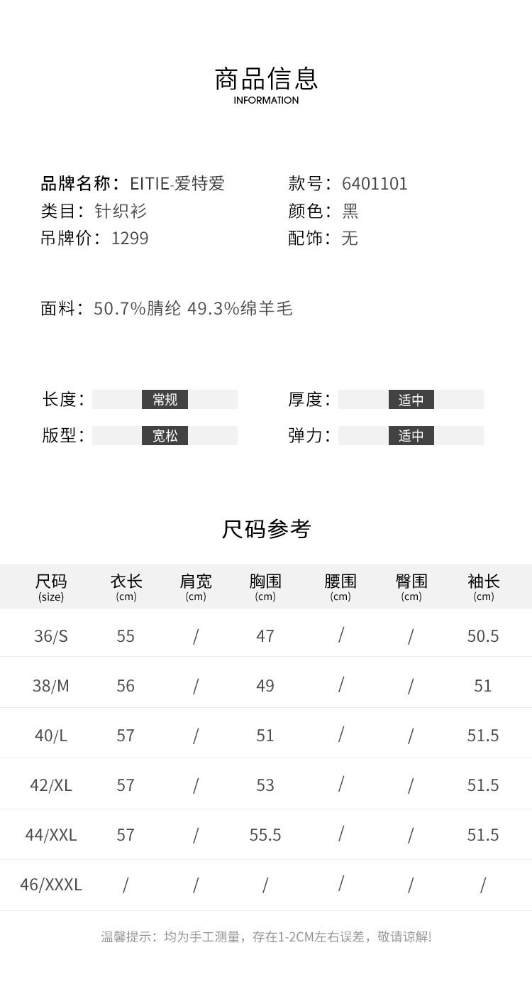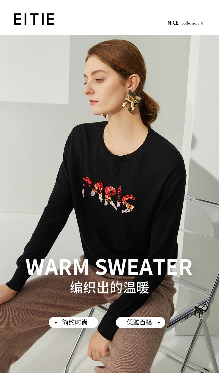 EITIE 爱特爱冬季时尚百搭修身显瘦针织衫女上衣套头6401101