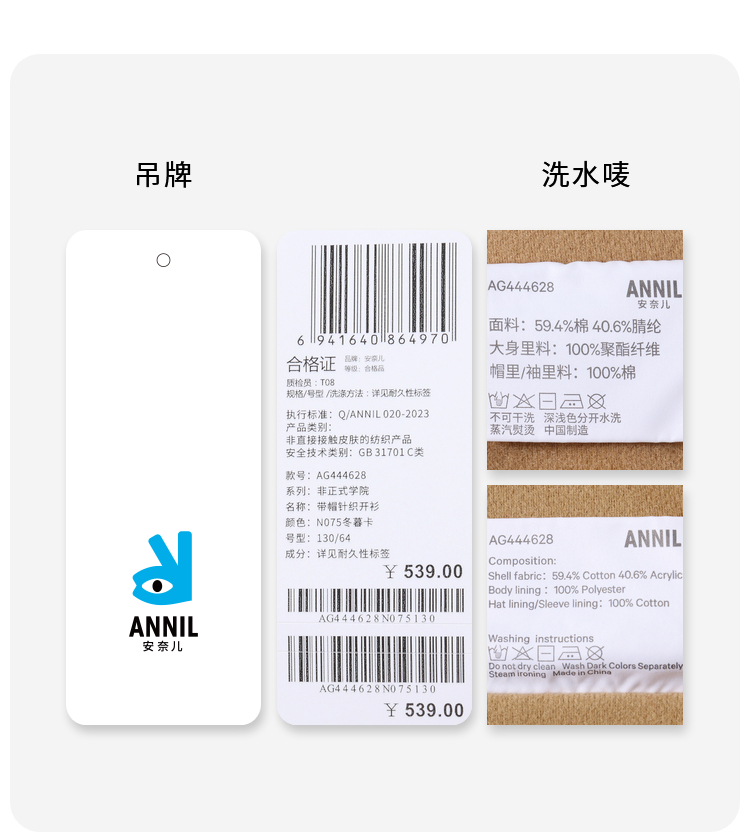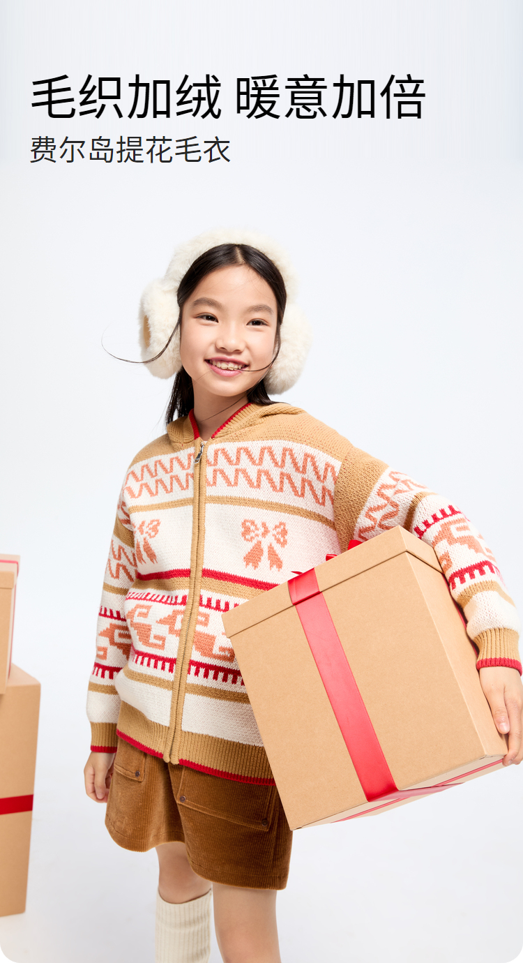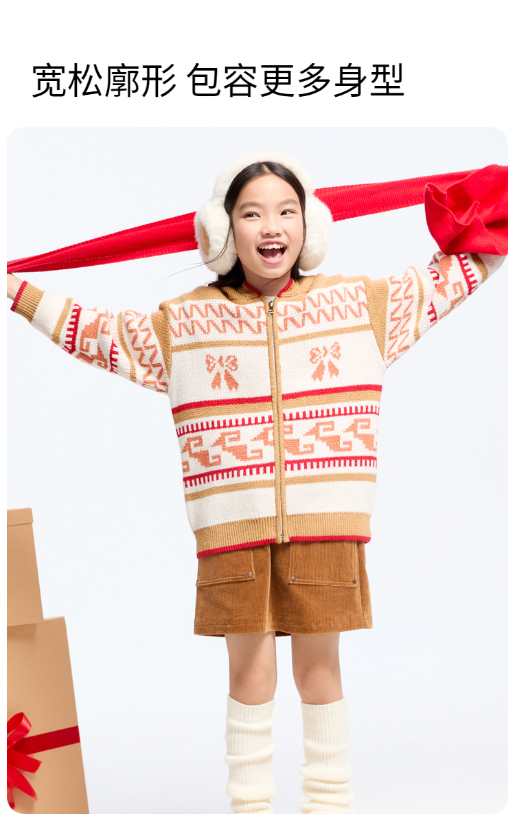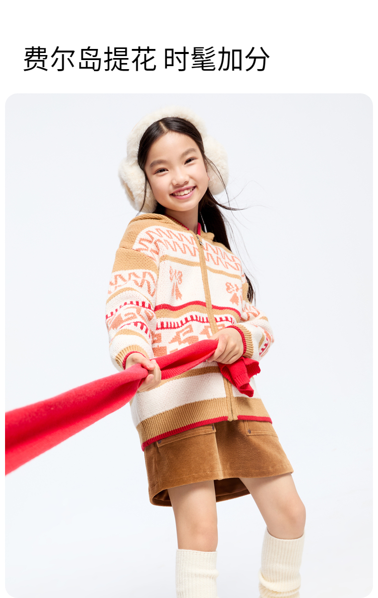 女童费尔岛提花带帽毛衣冬季新款安奈儿童装实体店同款AG444628