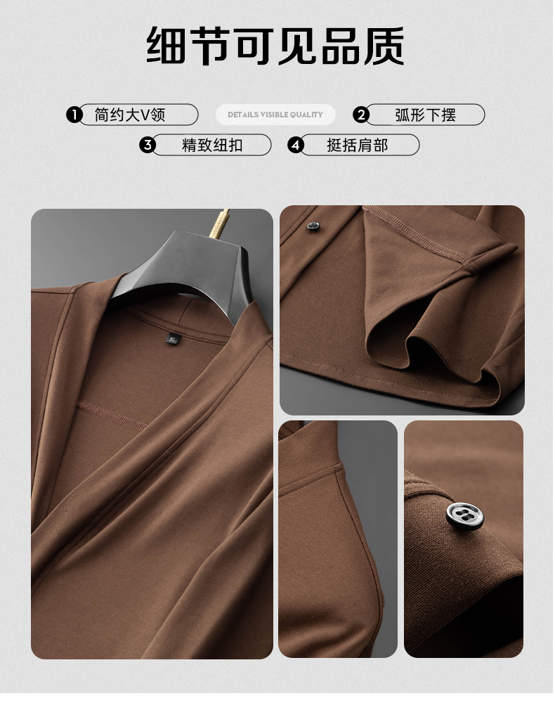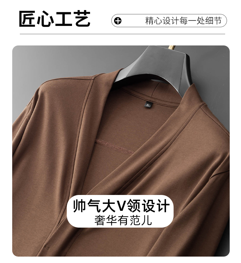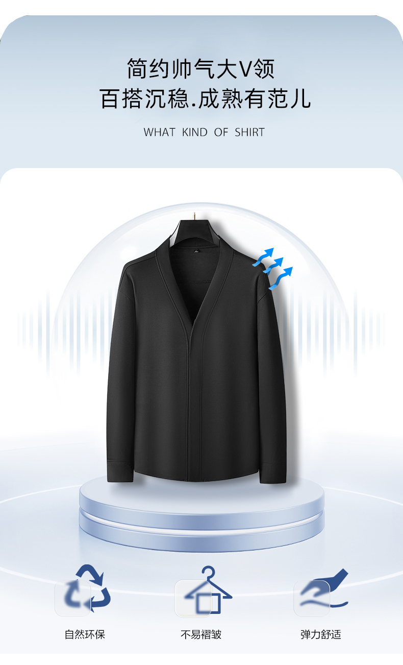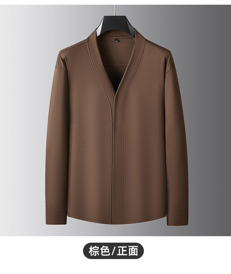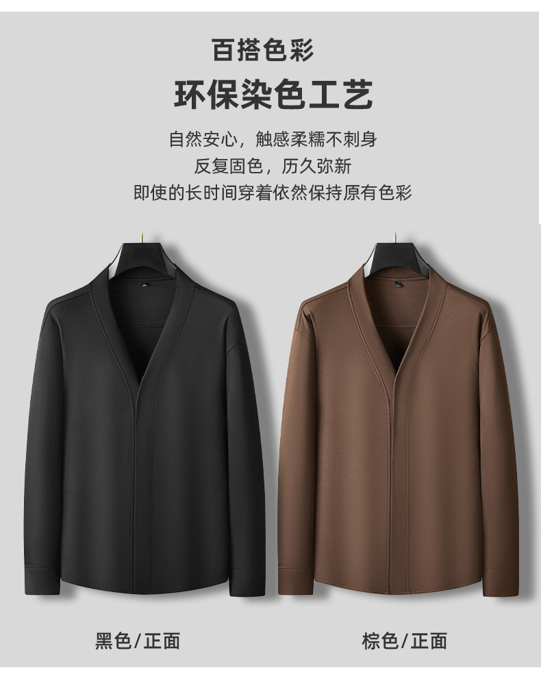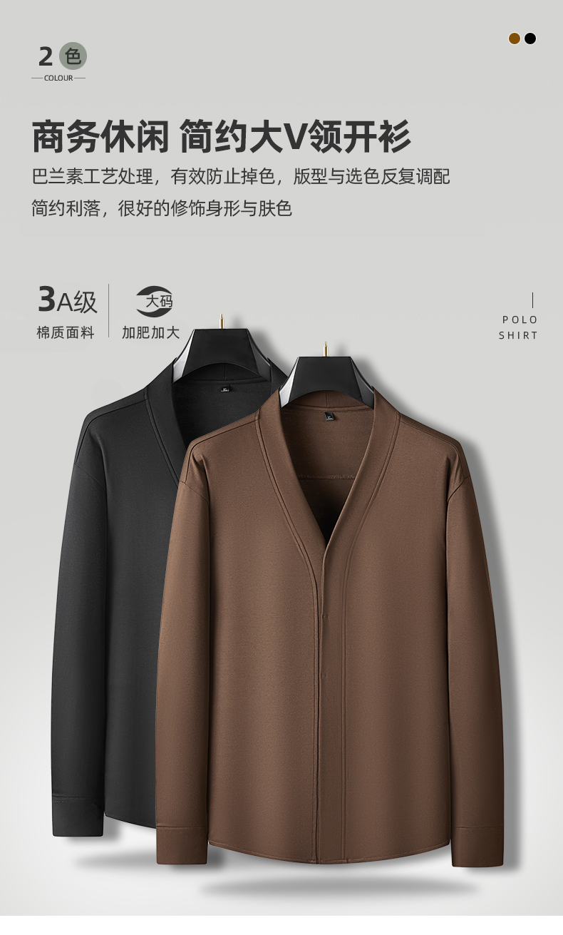 【大V领开衫】【新款DDA】大依优型大码男士开衫衬衫外套长袖T恤商务休闲上衣加肥加大胖子舒适
