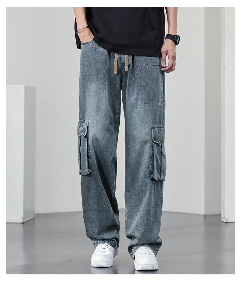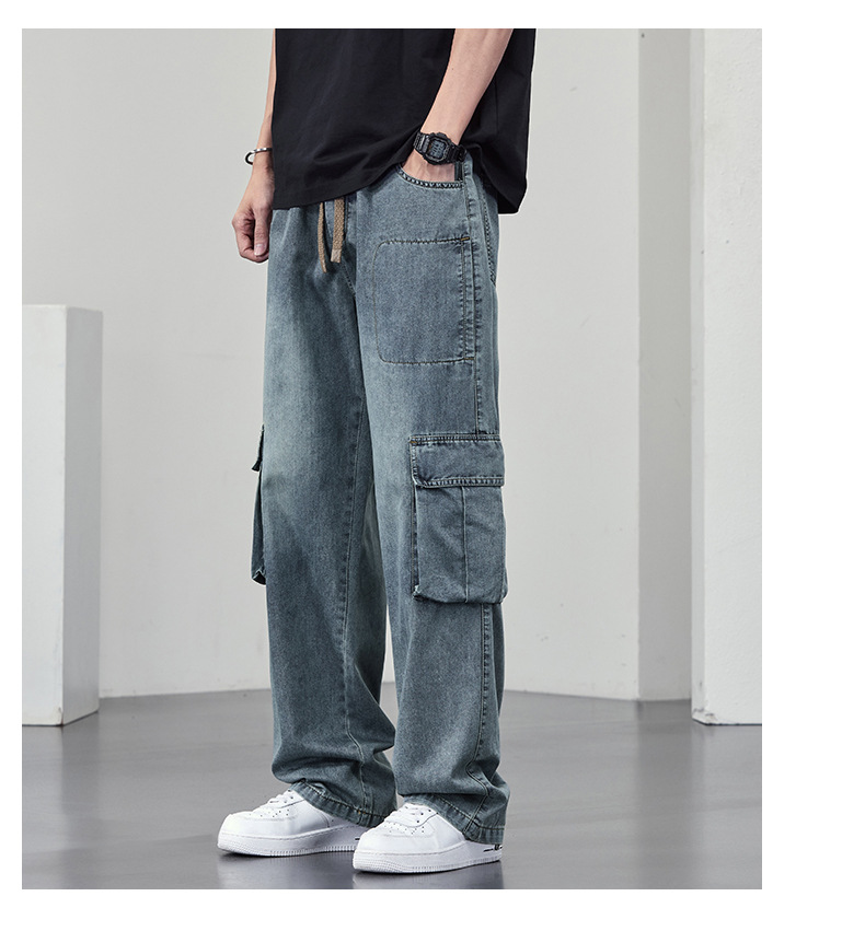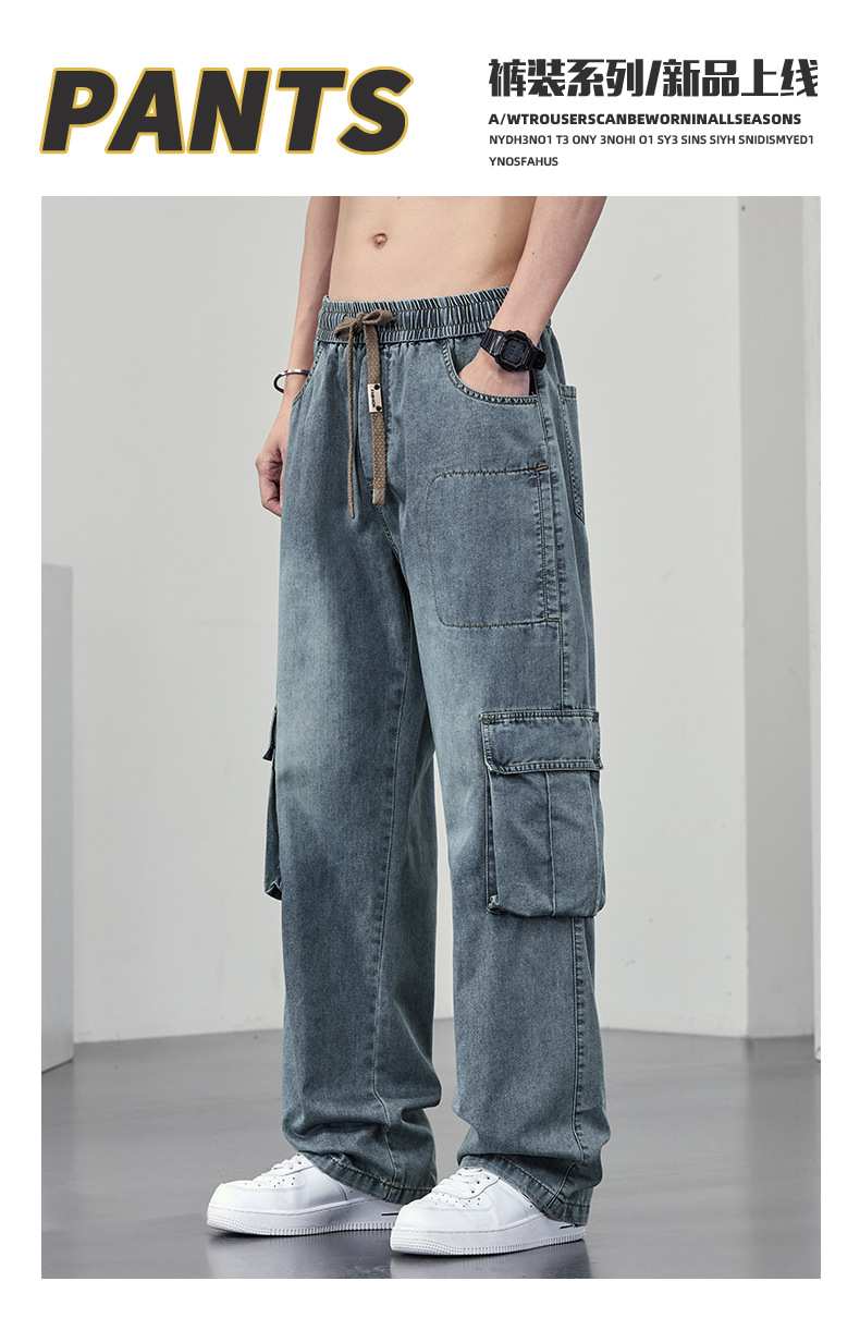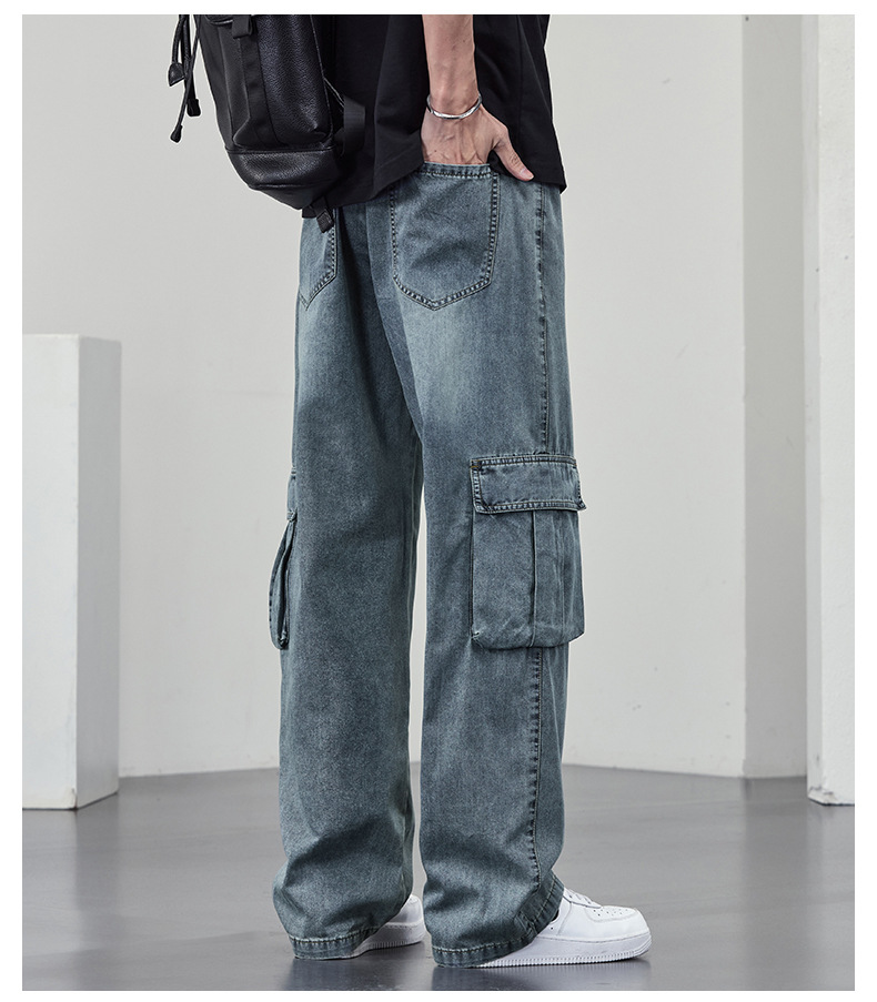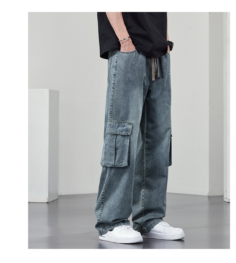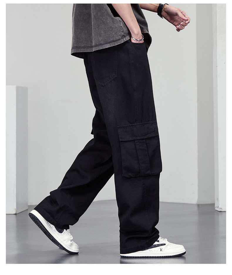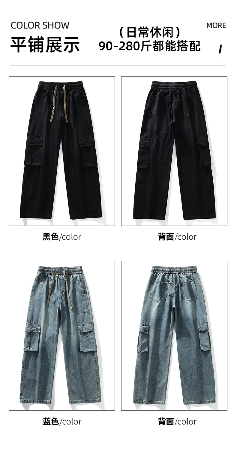 【DYF】大依优型大码牛仔裤复古水洗工装四季潮牌宽松直筒阔腿情侣款长裤子男士