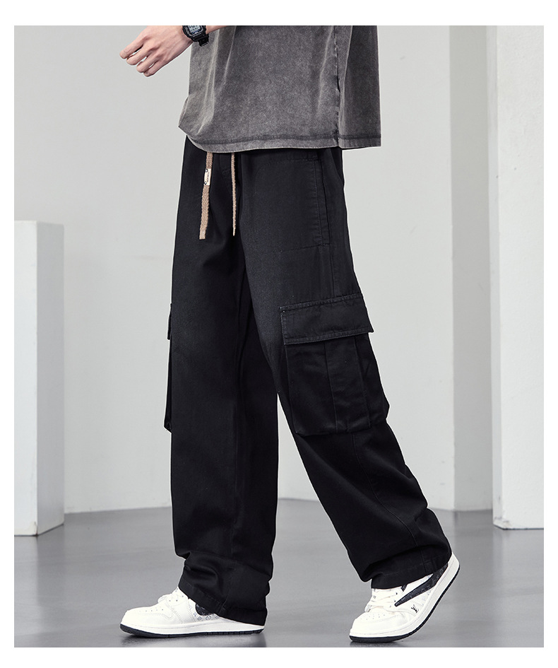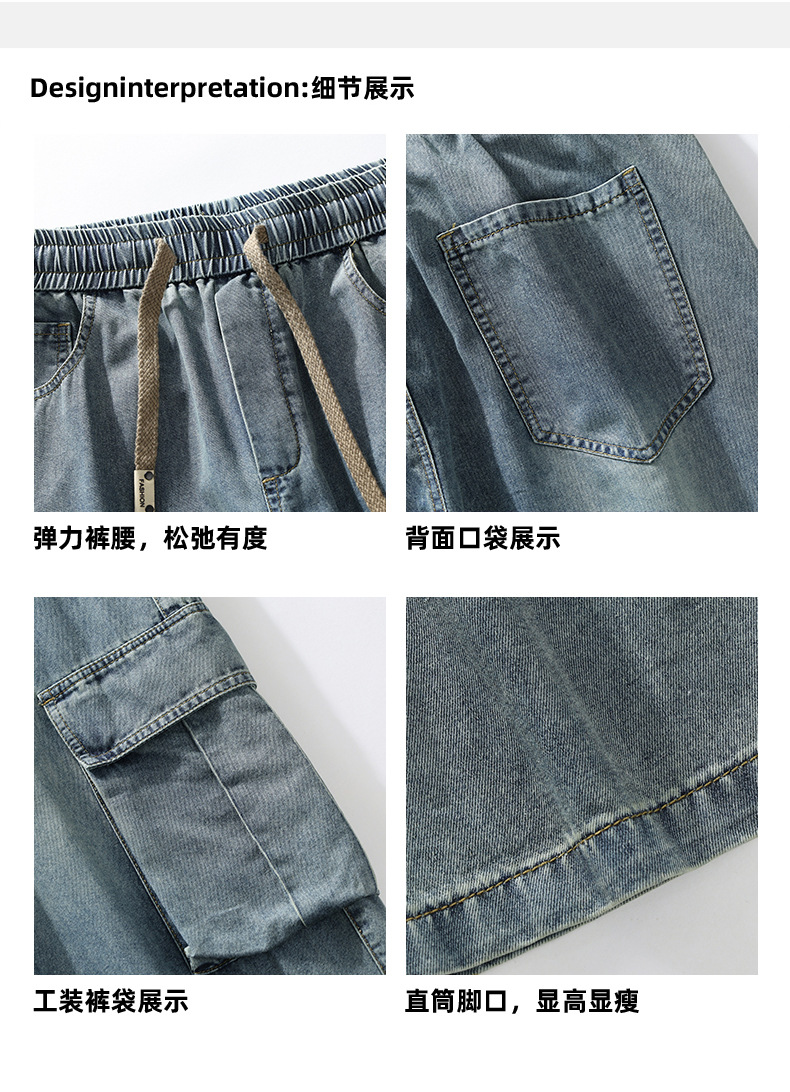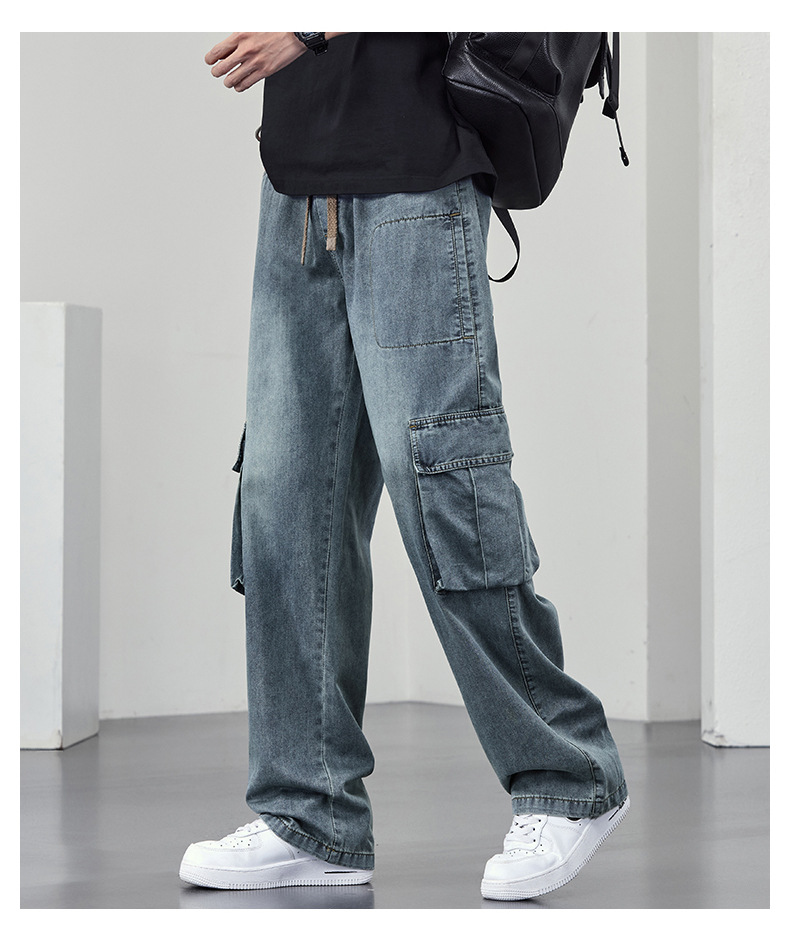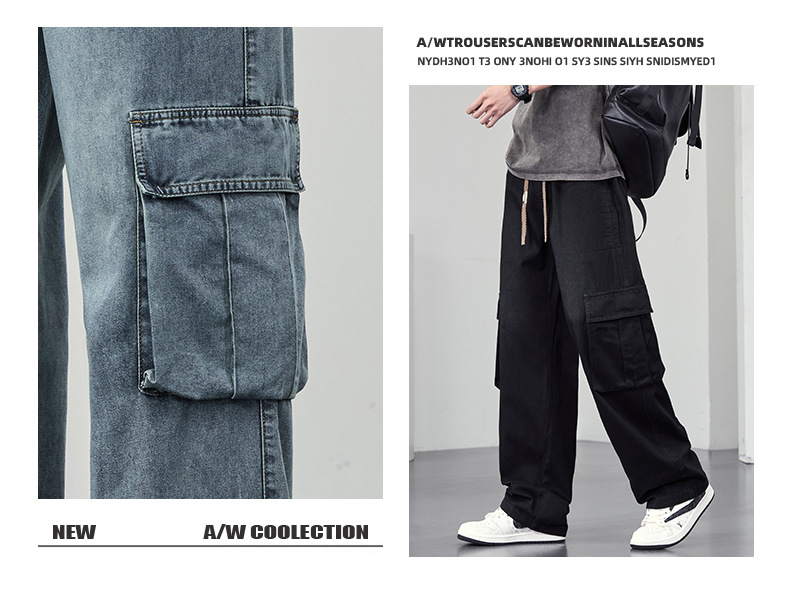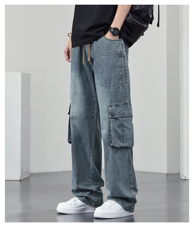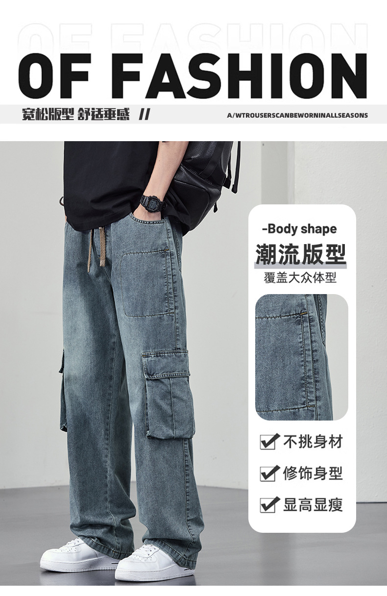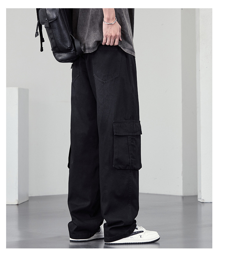 【DYF】大依优型大码牛仔裤复古水洗工装四季潮牌宽松直筒阔腿情侣款长裤子男士