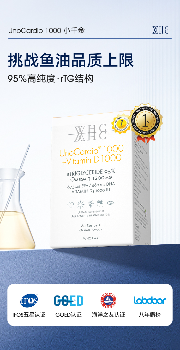 【2件-20 ,4件-120】WHC比利时 小千金深海鱼油rTG结构95%高纯度Omega3维生素D3成人60粒