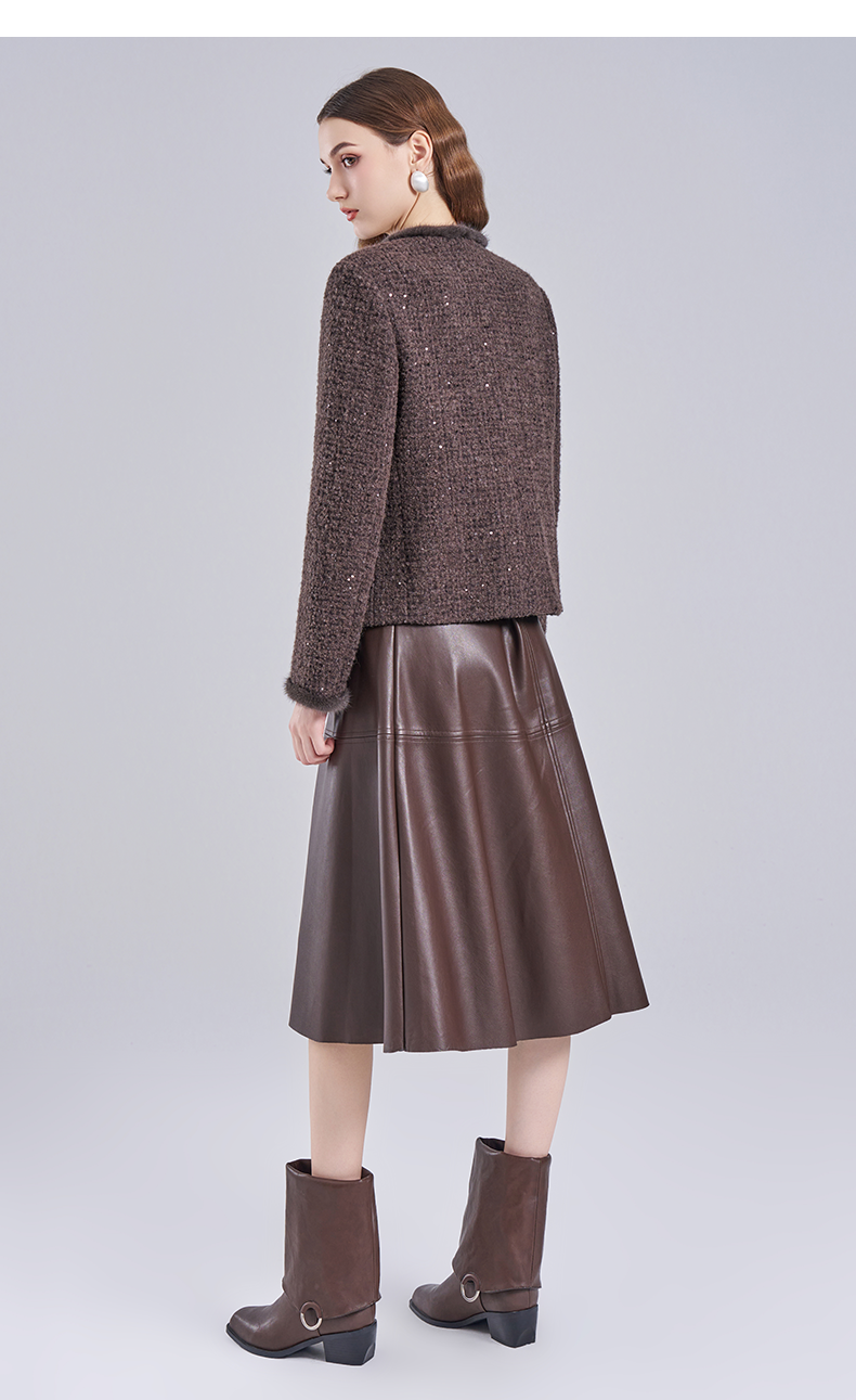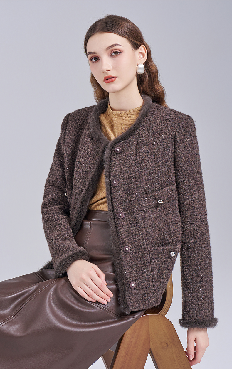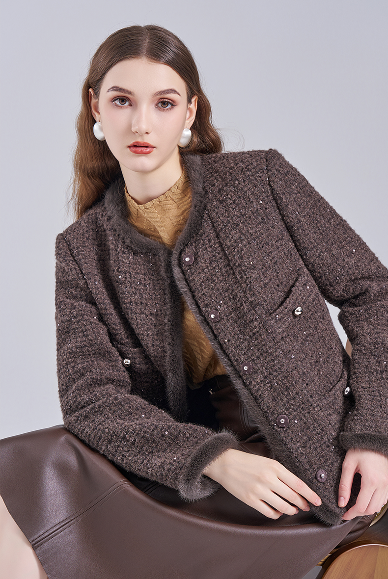 乔万尼冬2025新品奢华复古感亮片粗花呢贵气毛绒边羊驼绵羊毛小香风外套ED4B791