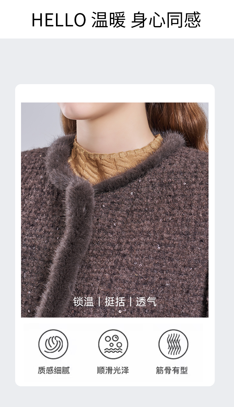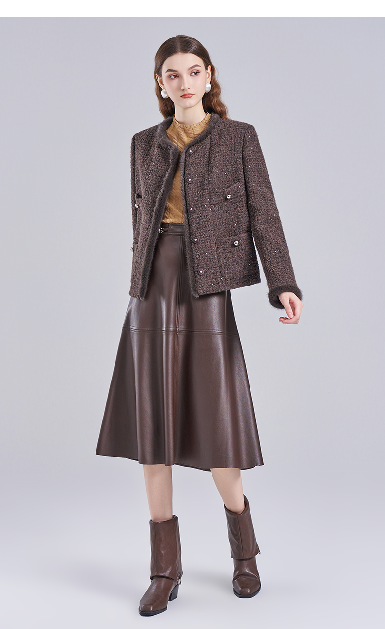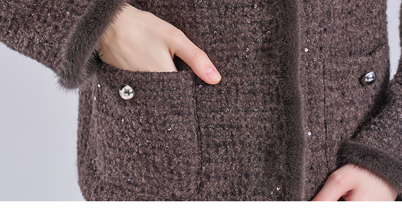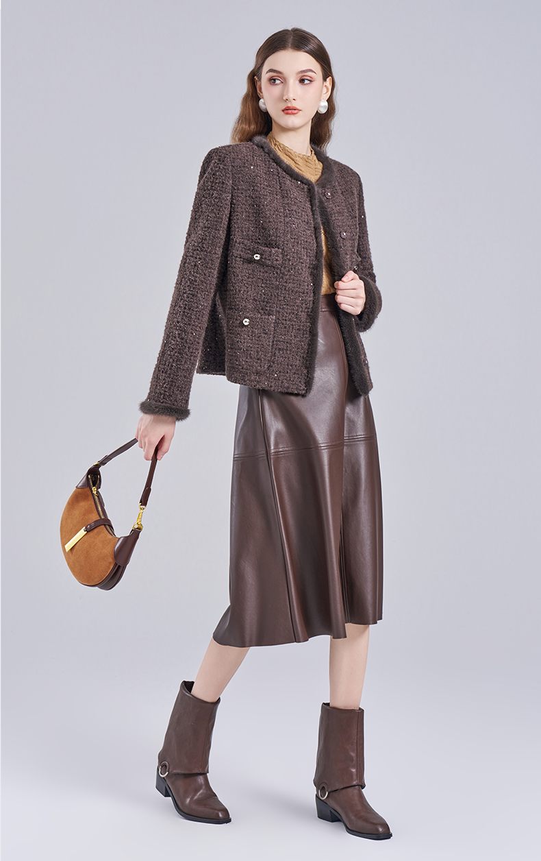 乔万尼冬2025新品奢华复古感亮片粗花呢贵气毛绒边羊驼绵羊毛小香风外套ED4B791
