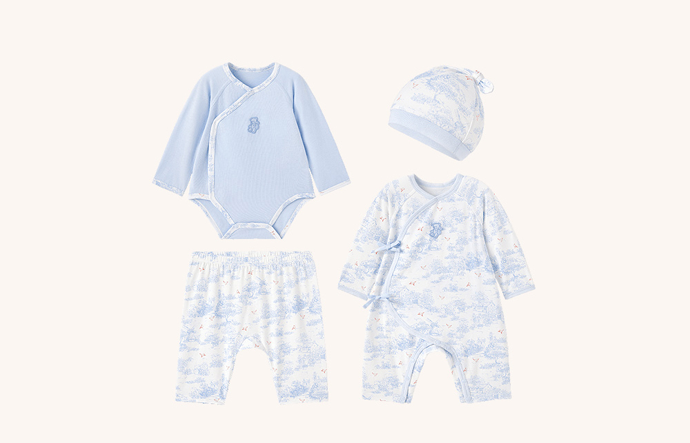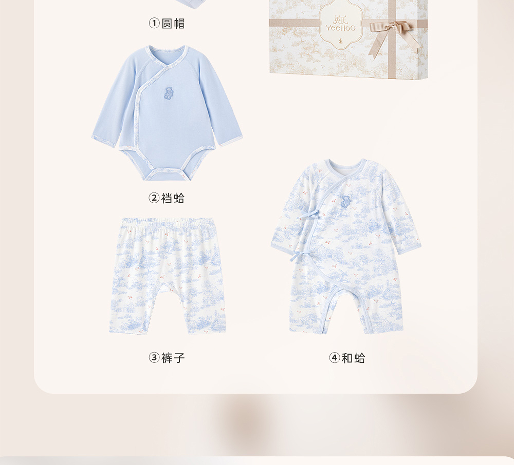 【商场同款】英氏婴儿礼盒四季婴儿抗菌衣服新生儿送礼4件套礼盒