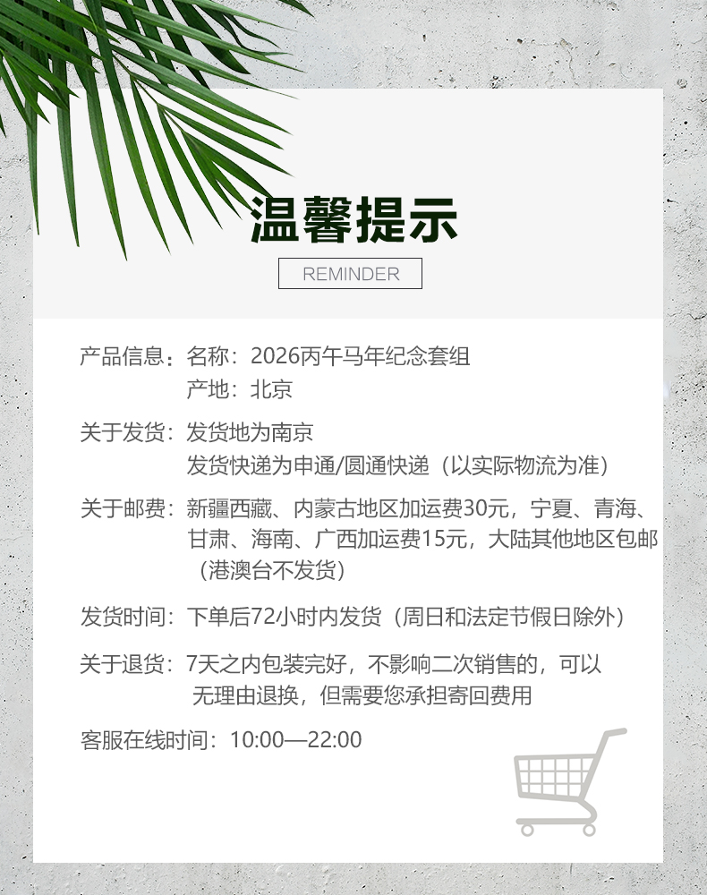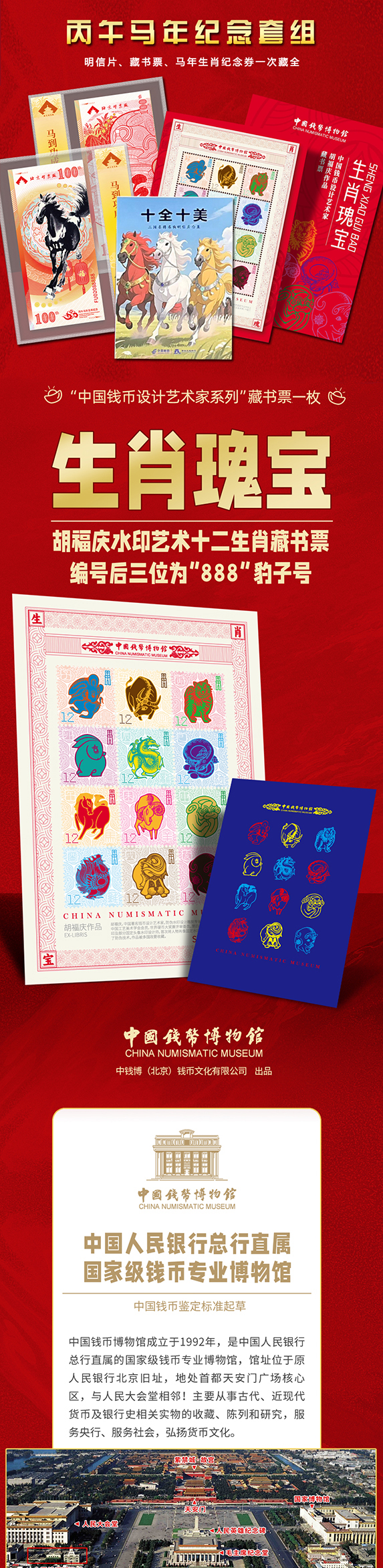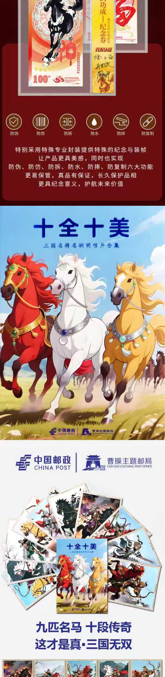 热卖中!!【中国邮政曹操主题邮局&北京邮票厂&中国钱币博物馆】2026丙午马年纪念套组(马年生肖纪念券+十二生肖藏书票+生肖马明信片) 十连号含999足金1mg
