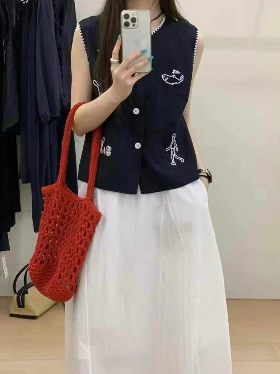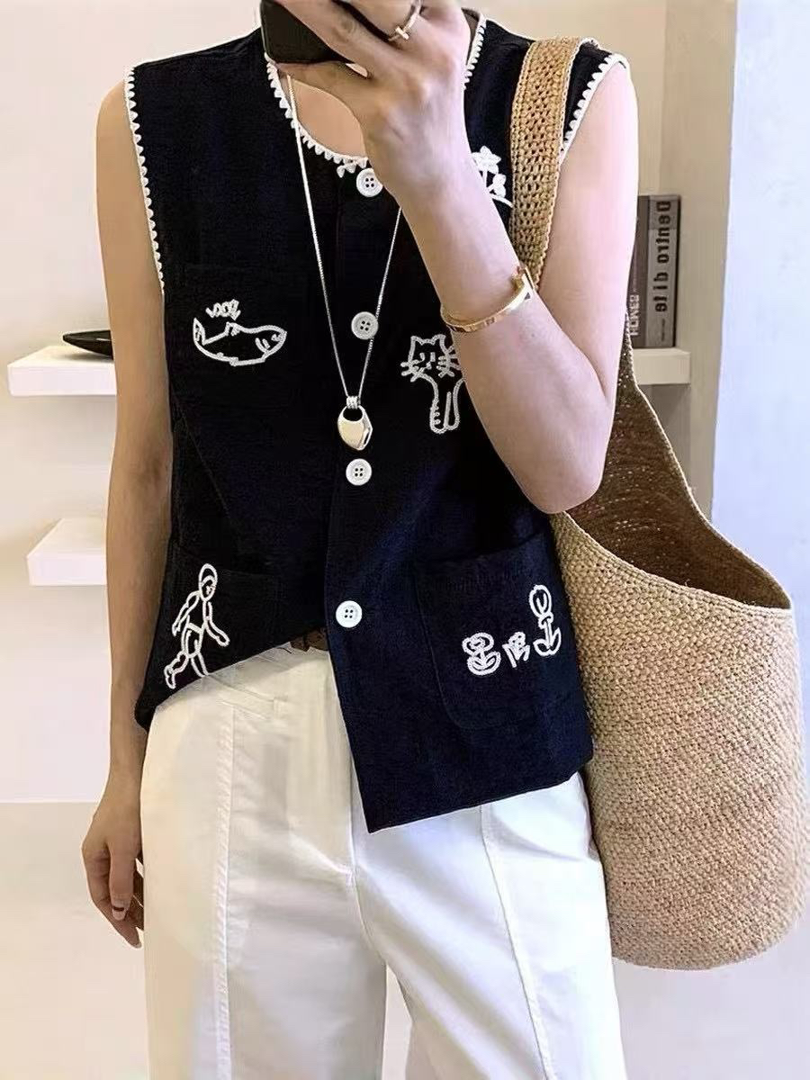 衣身多处刺绣点缀,用到两种不同进口专机绣花,绣线与大身布做到不掉色不串色处理。