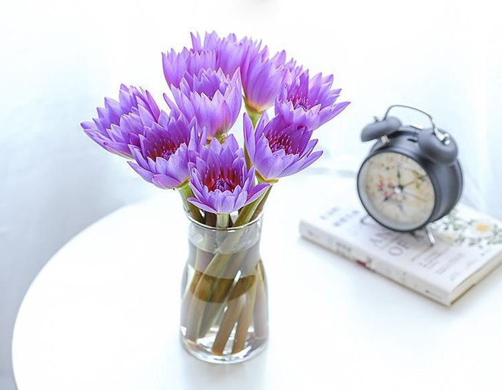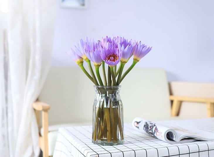 7.如加入清水养需要每2天换水并清洗花瓶和睡莲根部,2~3天剪根一次,天天保持花瓶满格水位睡莲花会开的更漂亮!