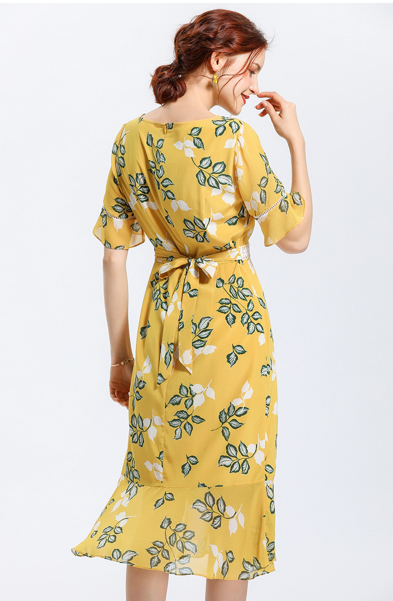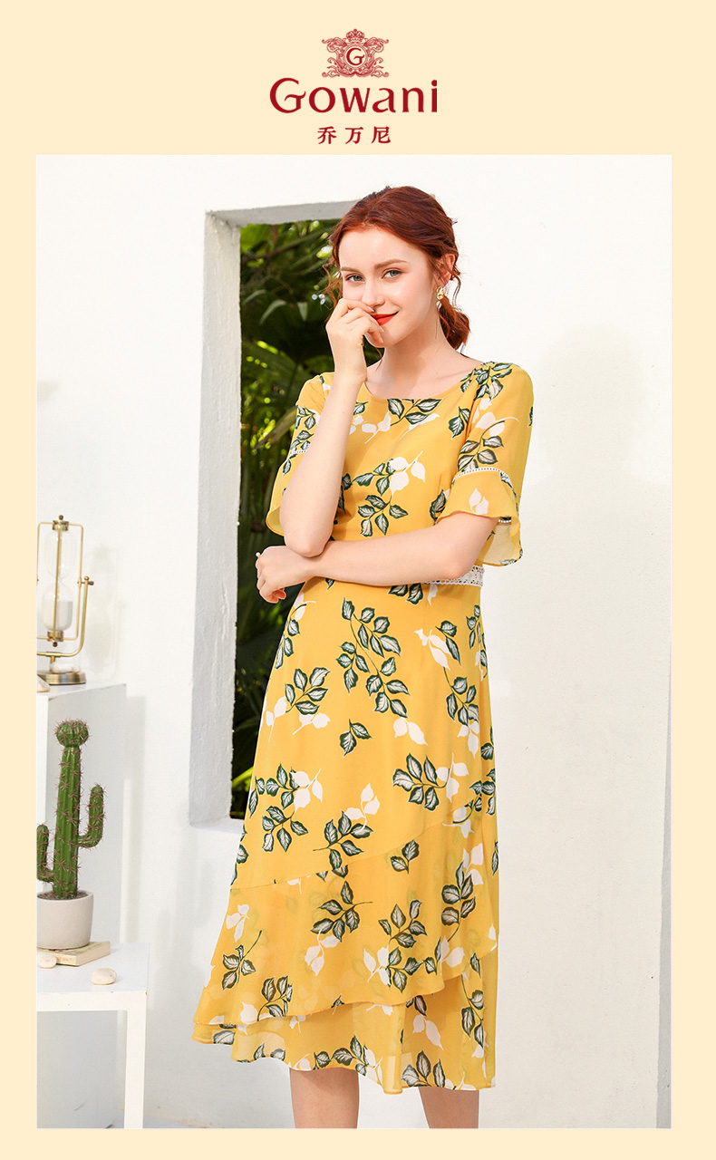 乔万尼夏天流行法式修身气质女真丝桑蚕丝印花连衣裙中长EN2E507