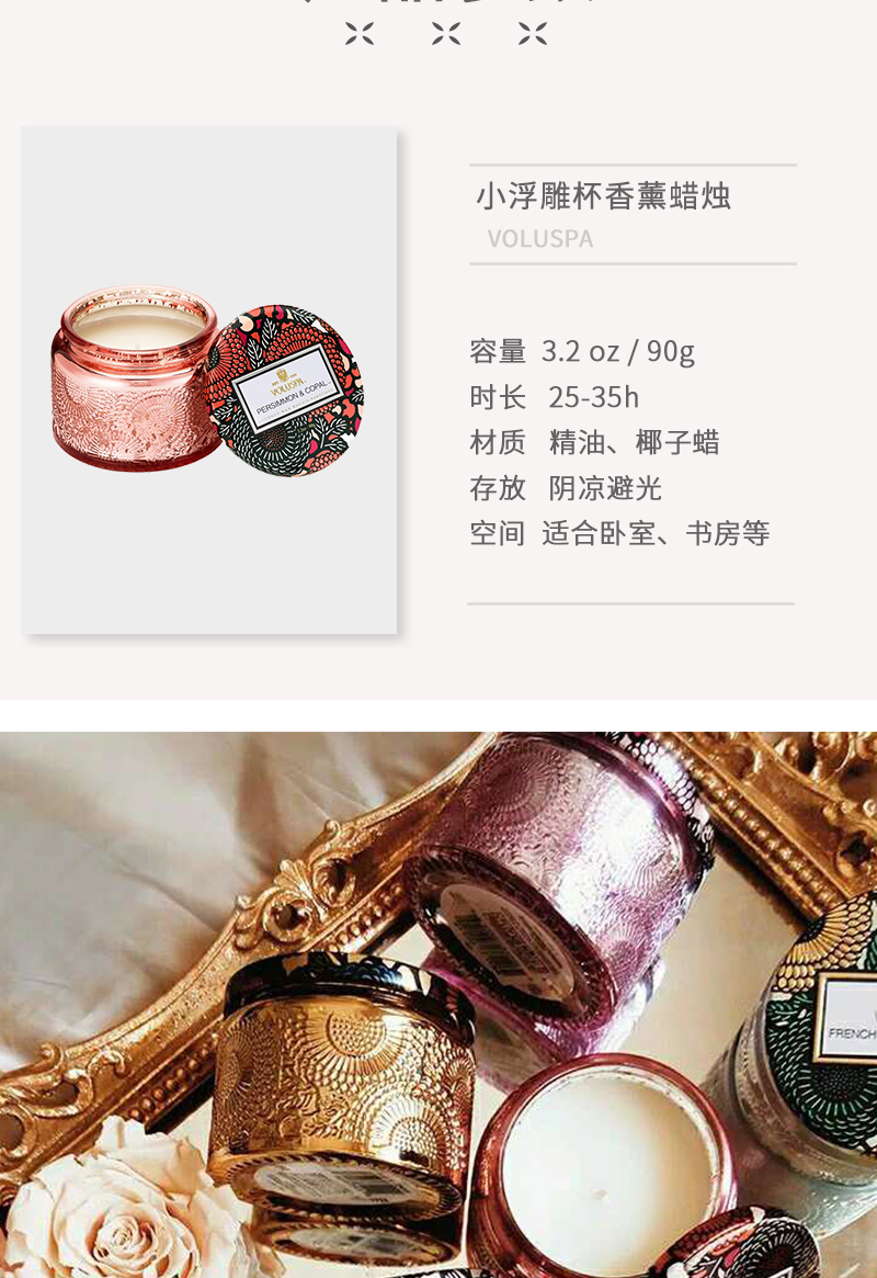 VOLUSPA 山茶小浮雕玻璃杯香薰蜡烛-90g