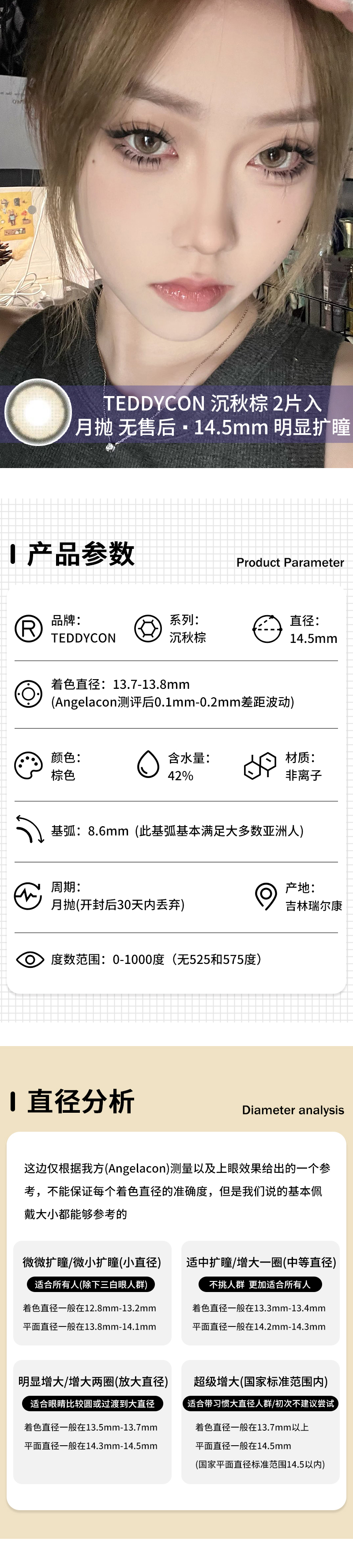 TEDDYCON / 美瞳月抛 / 沉秋棕 / 2片入 / 14.5mm / 明显扩瞳浅色混血
