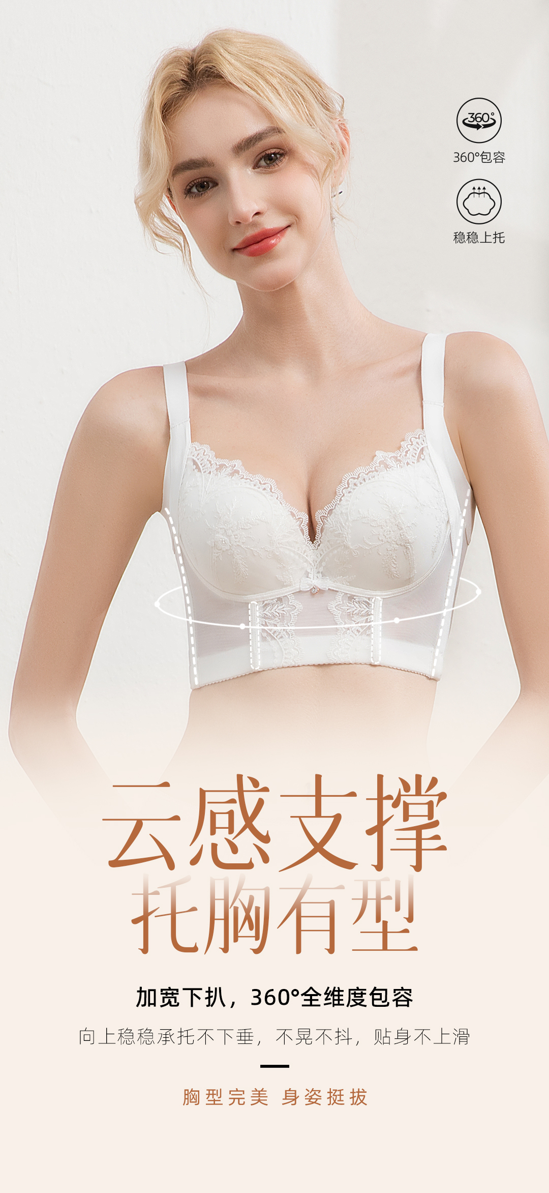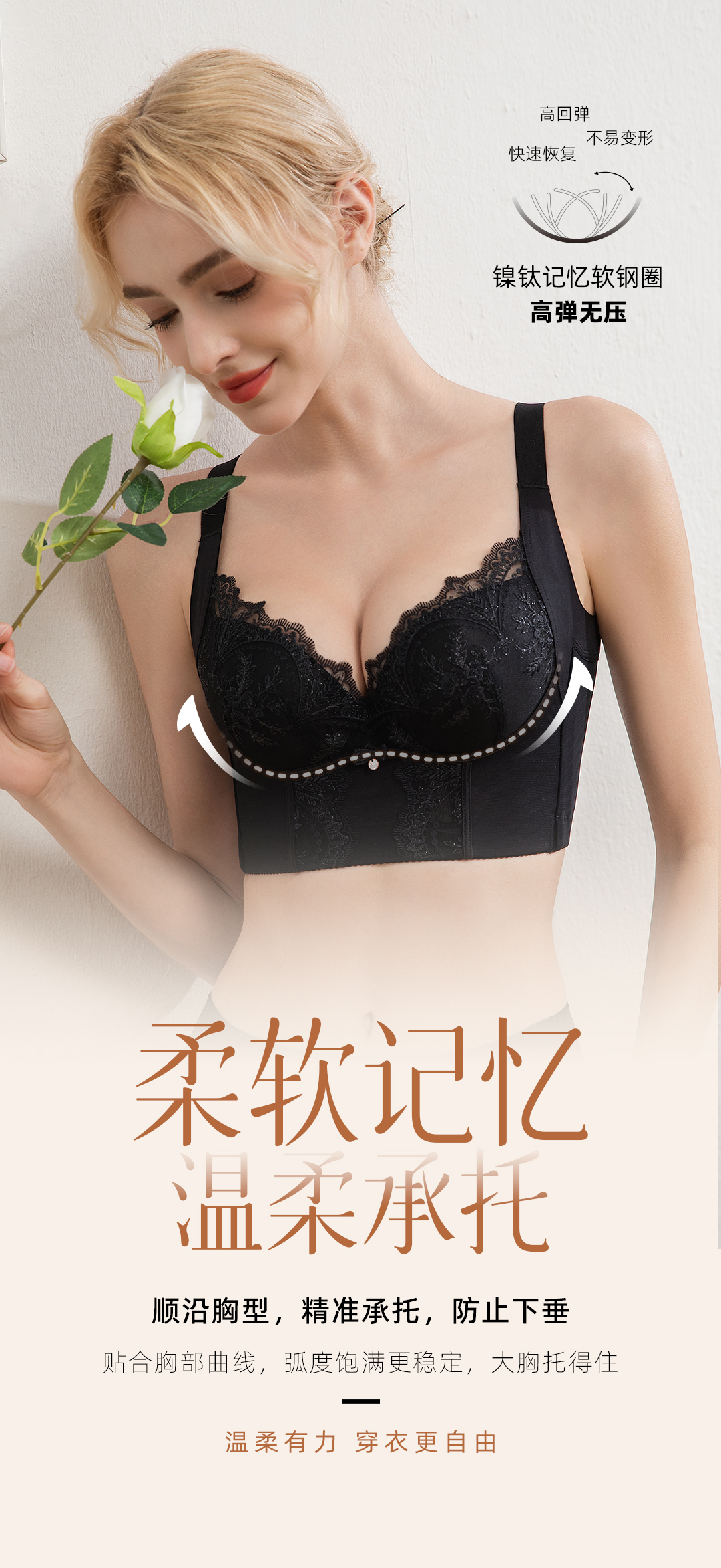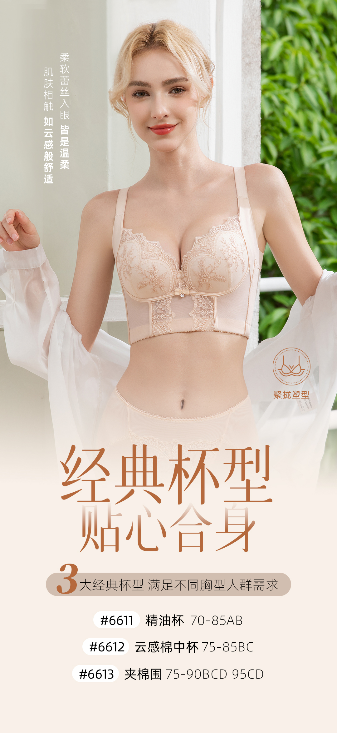 QC-6611#/6612#/6613# 3大经典杯型聚拢自然挺拔镍钛记忆软钢圈防下垂云感舒适收脂美舒内衣(单件)