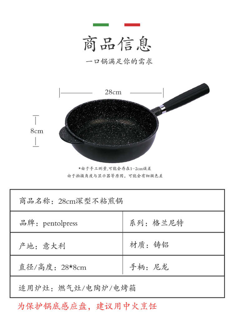意大利原产PENTOLPRESS格兰尼特系列煎炒锅28cm(燃气款)