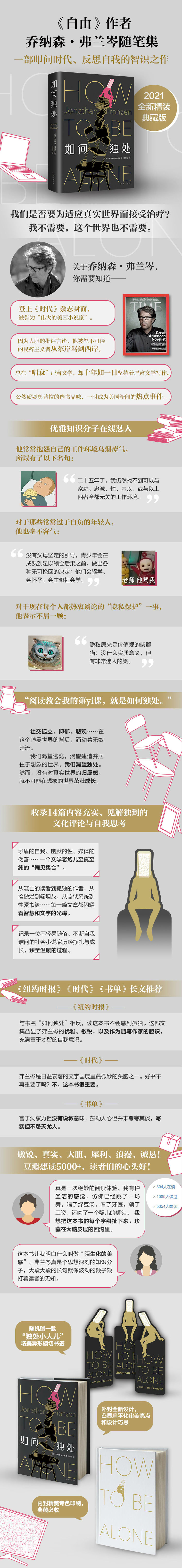 与书名“如何独处”相反,读这本书不会感到孤独……这部文集凸显了弗兰岑的优雅、敏锐,以及作为随笔作家的胆识,充满富于才智的自我意识。——《纽约时报》