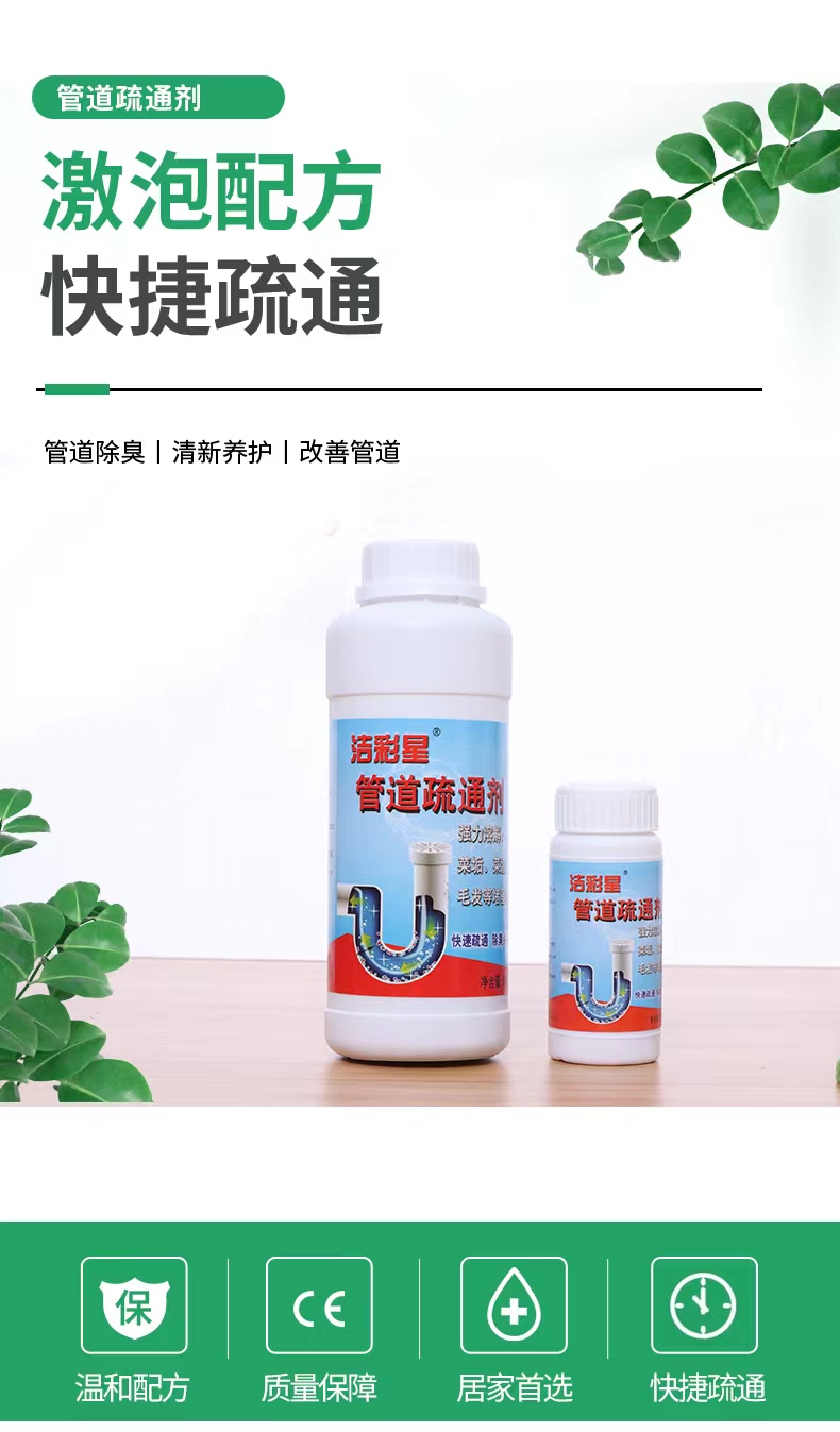 【疏通管道】洁彩星新型激泡通用除臭管道疏通剂激泡配方一到激泡无需加热水温和疏通分解堵塞物