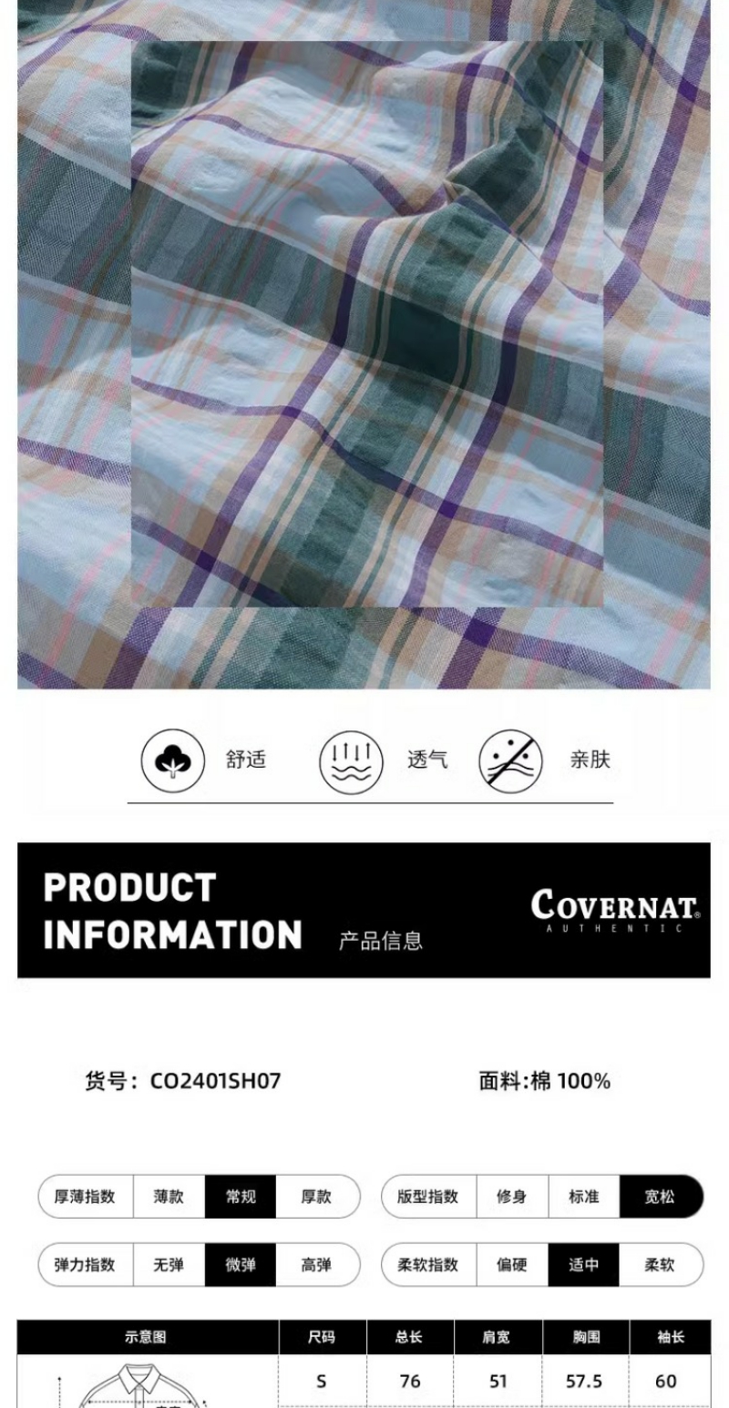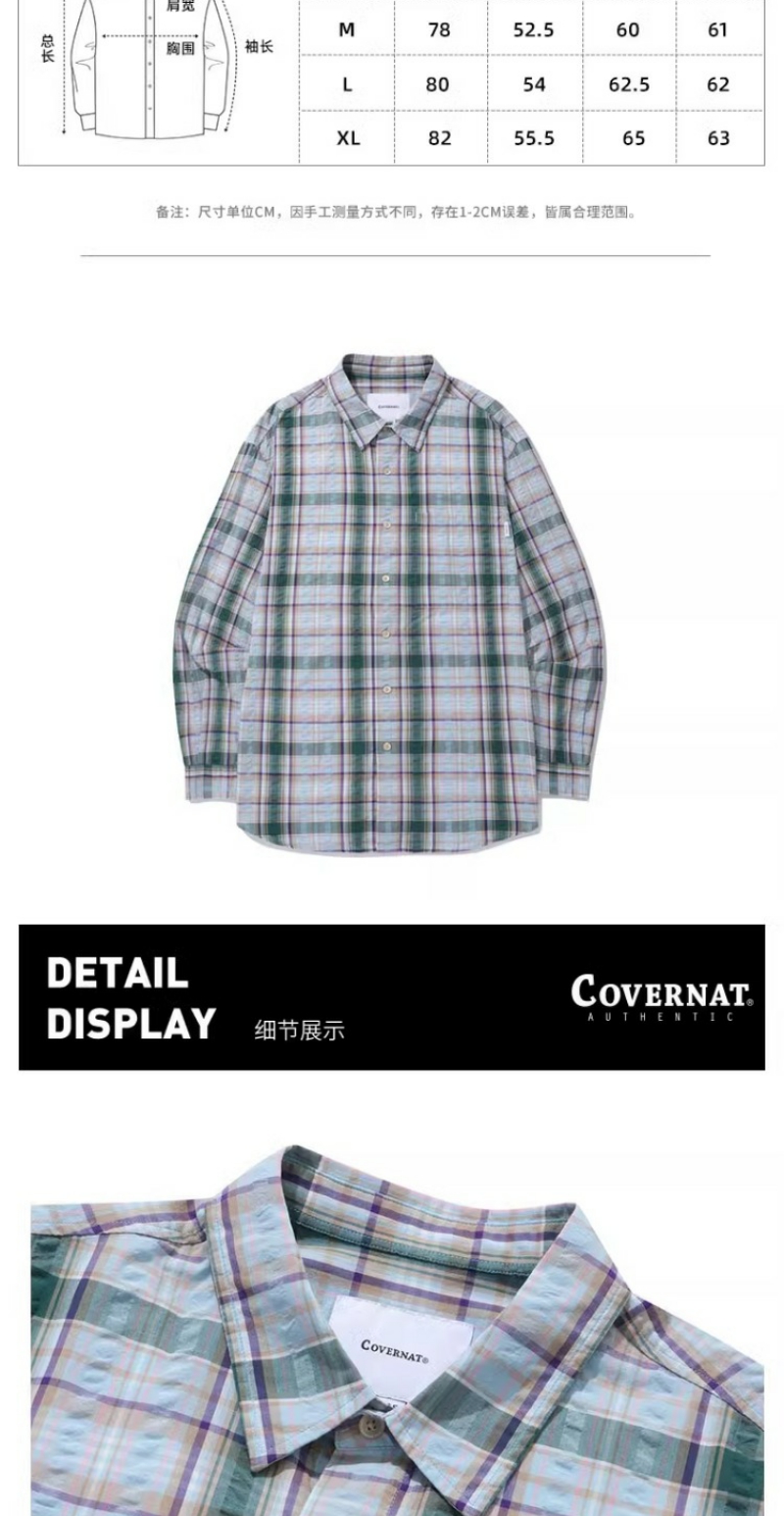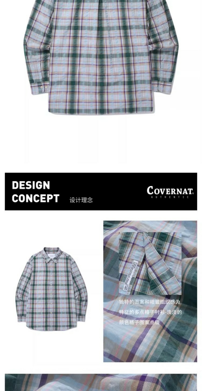 covernat韩国潮牌多种颜色纯棉时尚透气格子衬衫2024春夏新品CO2401SH07