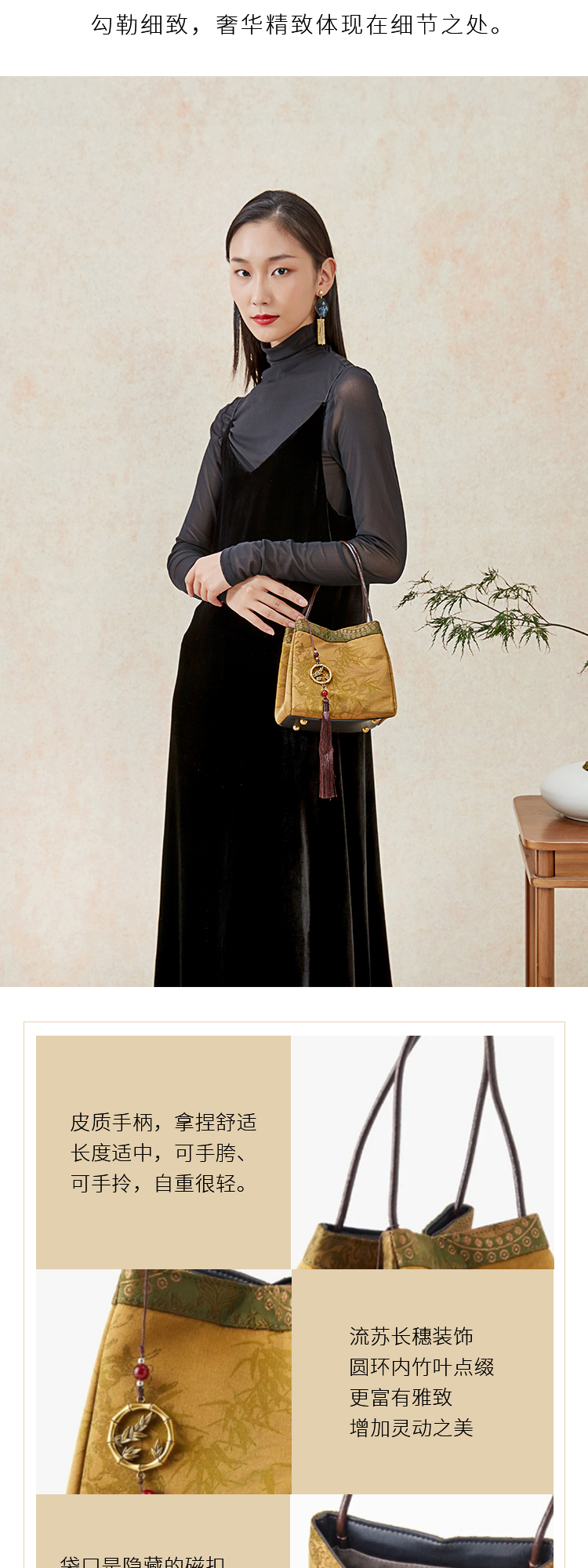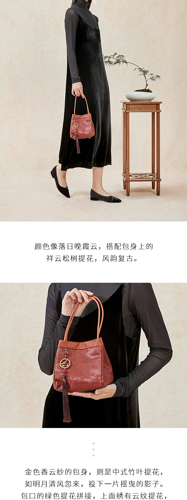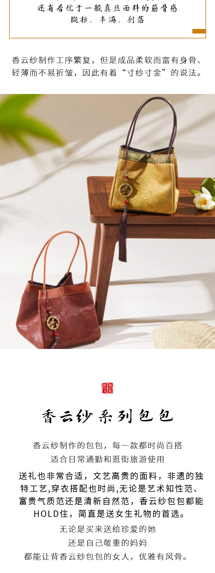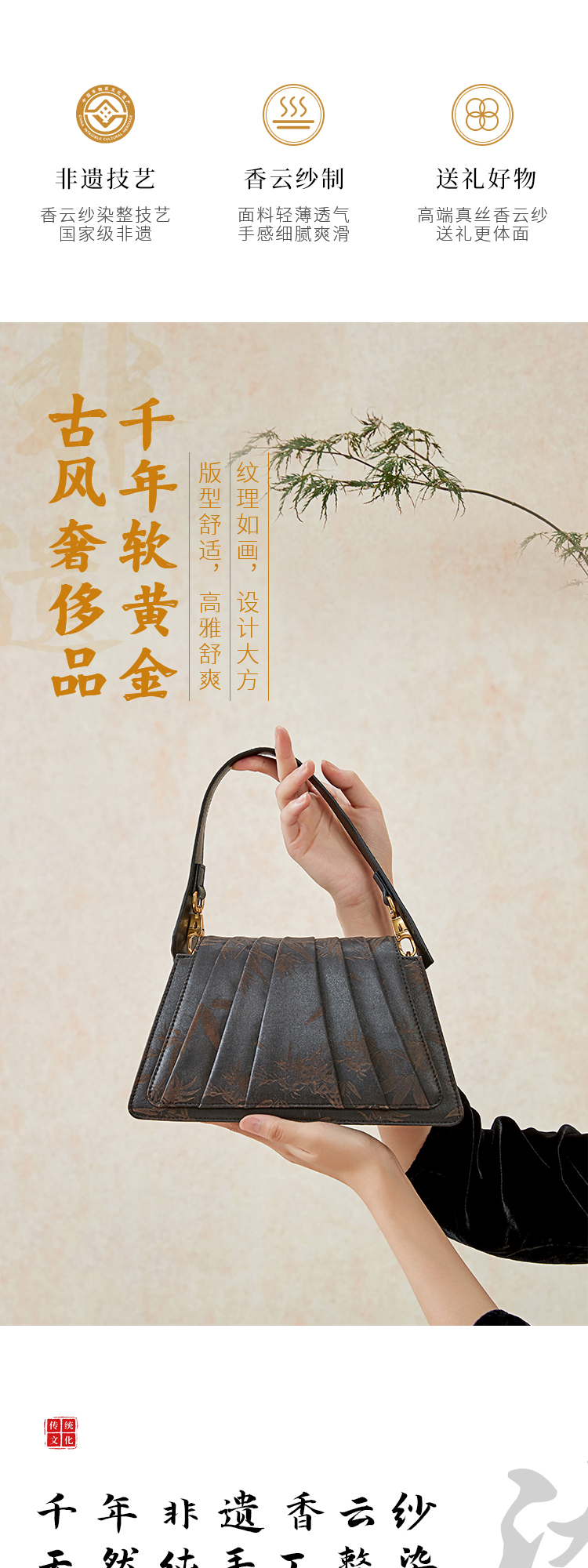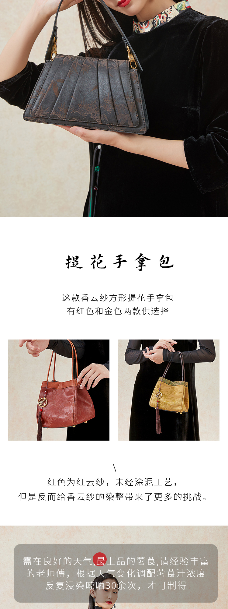 “软黄金”非遗香云纱 纯手工国风奢侈女包 非遗技艺 香云纱染整技艺 面料轻薄透气 手感细腻爽滑