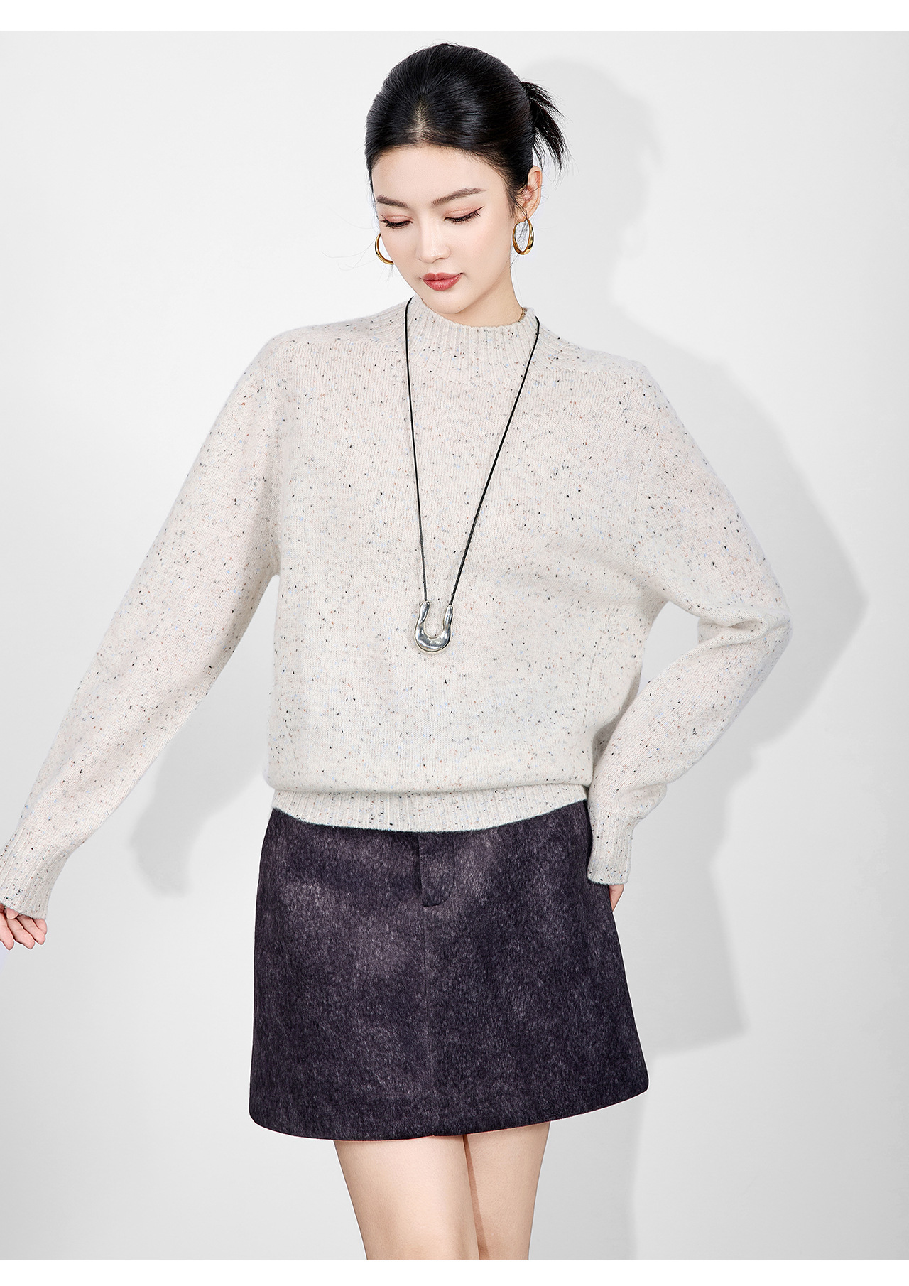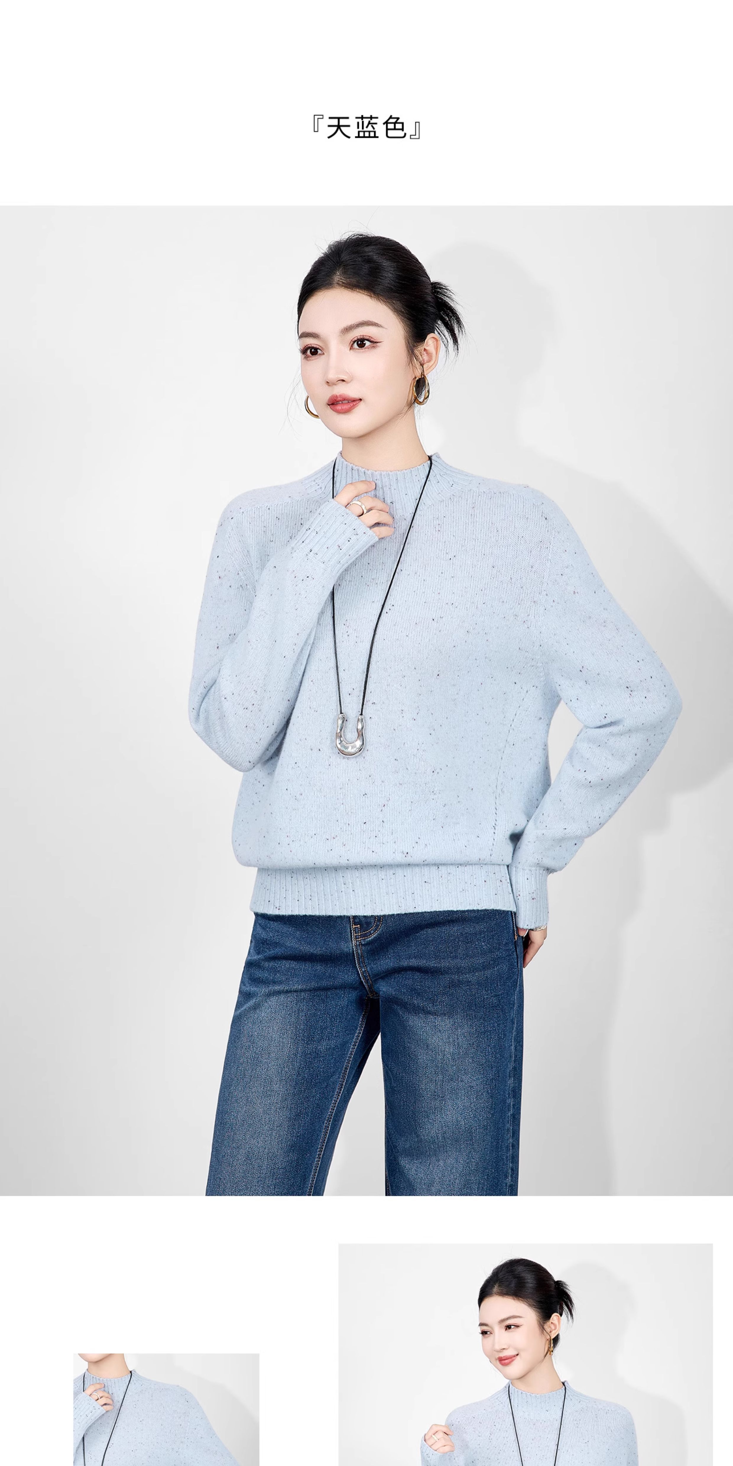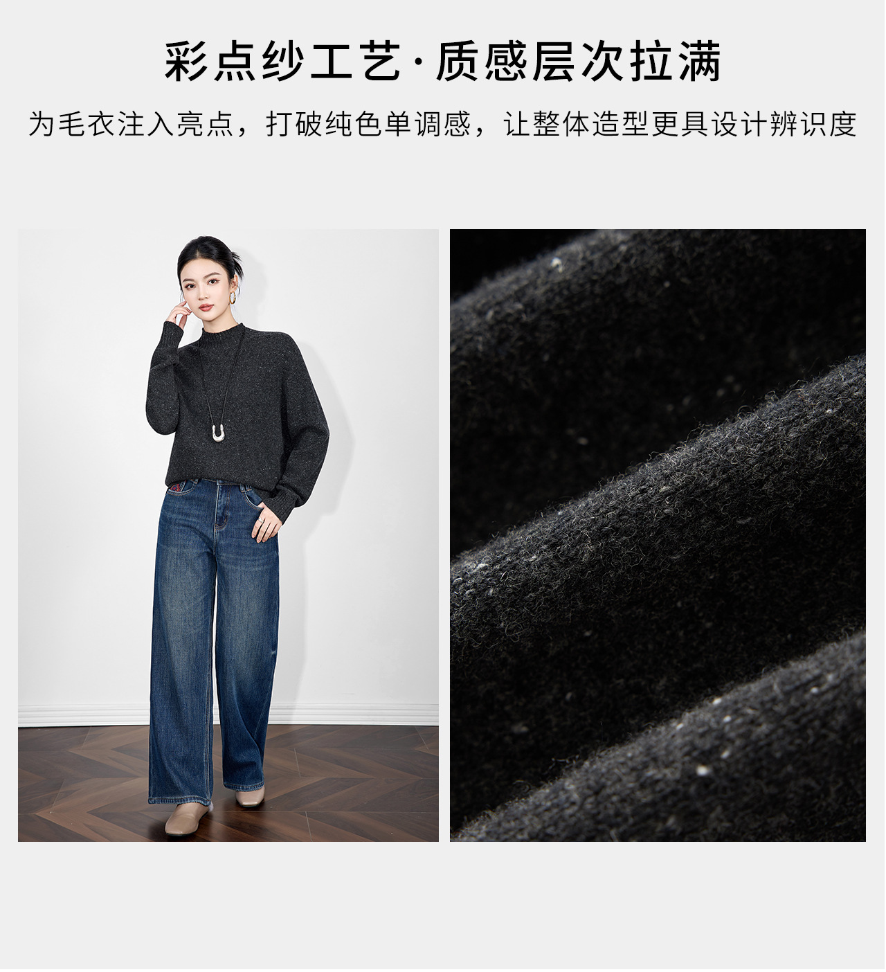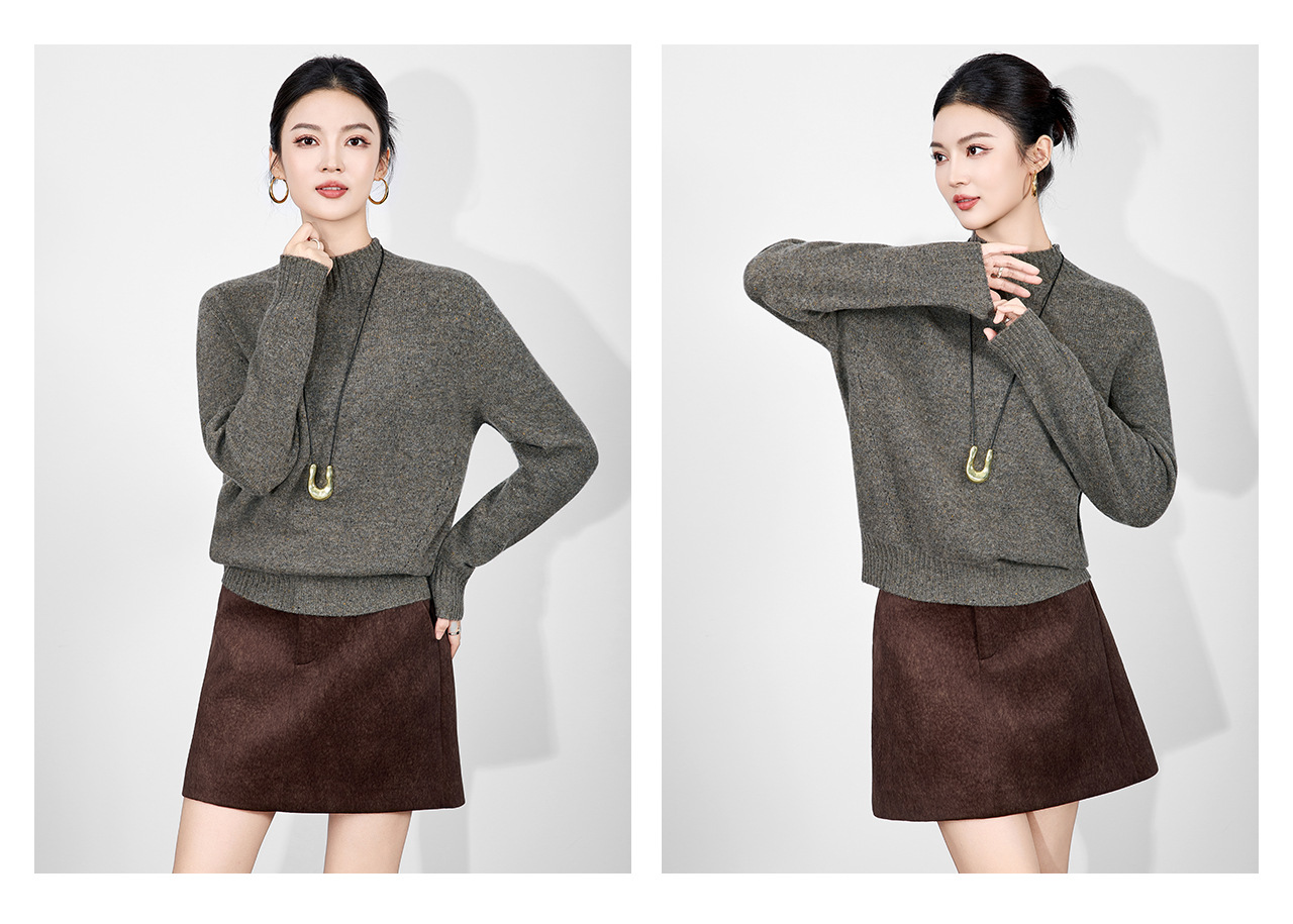 「高货wl」全新升级【铂金会员238/天猫319/差价81】(00251)洛诗琳密织彩点纱美丽诺羊毛上衣2025秋冬立领宽松针织毛