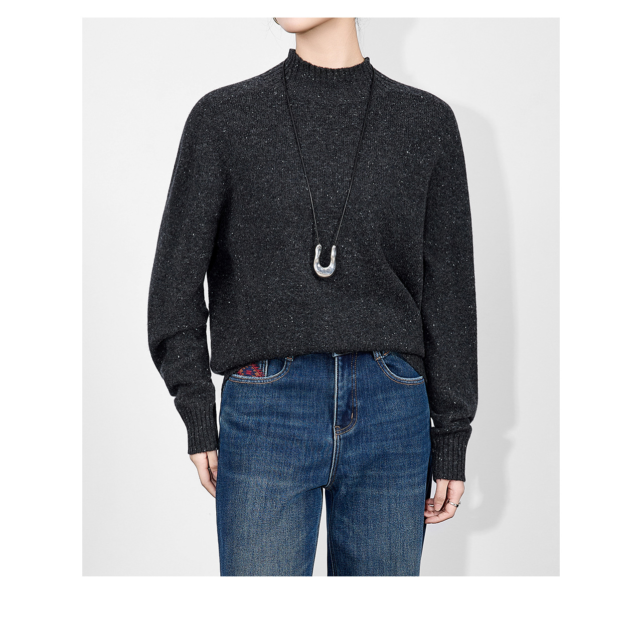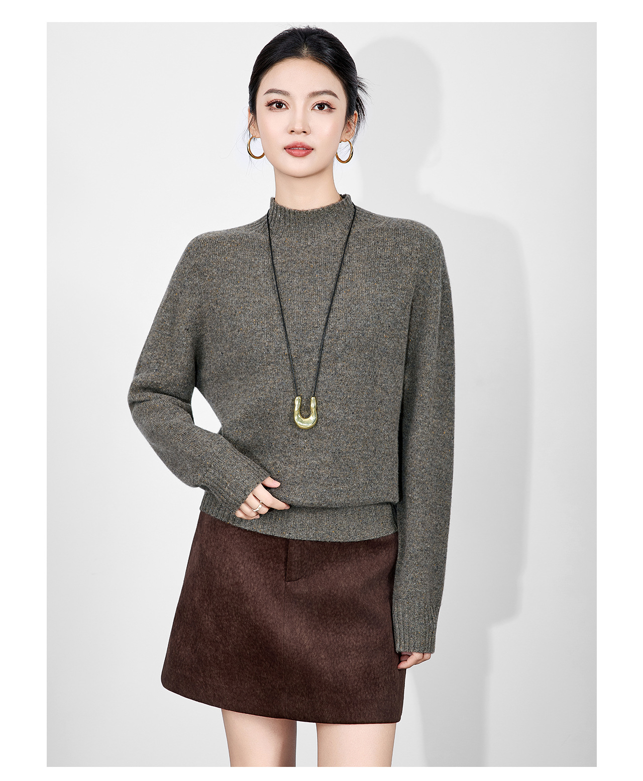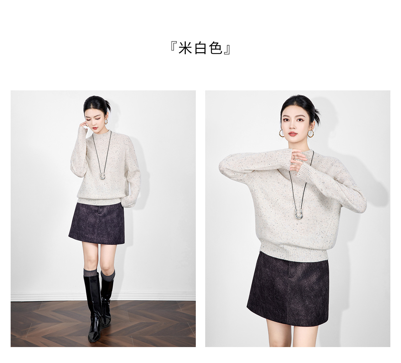 「高货wl」全新升级【铂金会员238/天猫319/差价81】(00251)洛诗琳密织彩点纱美丽诺羊毛上衣2025秋冬立领宽松针织毛