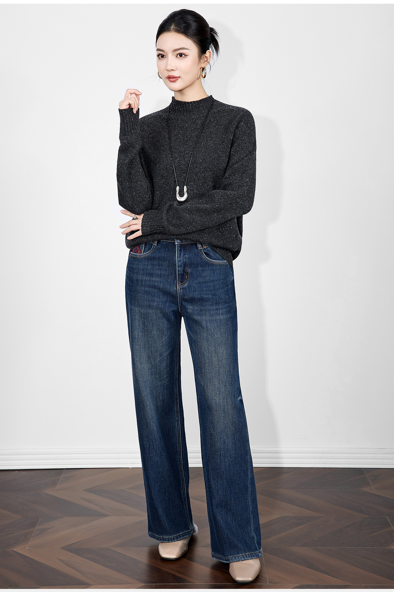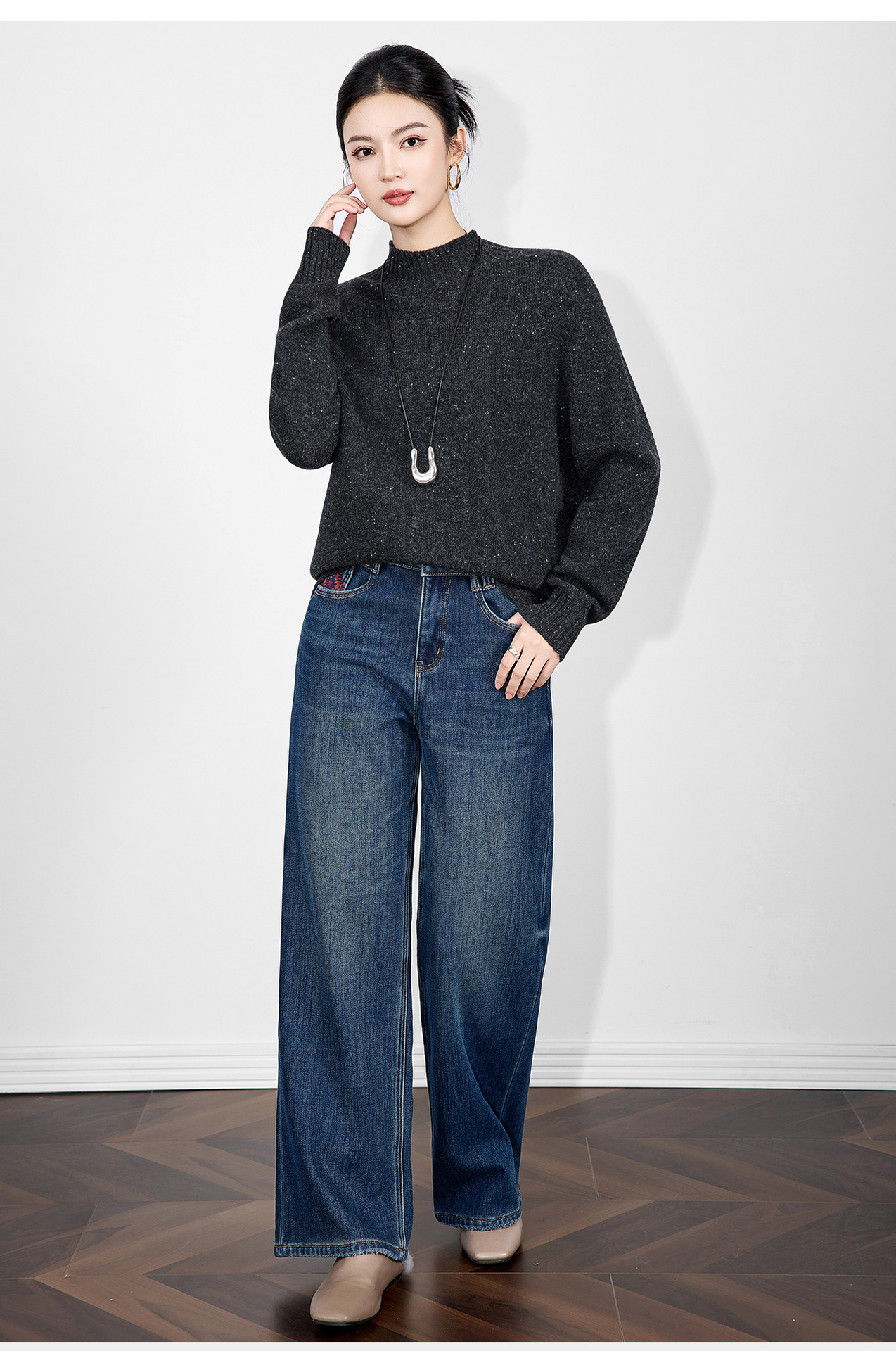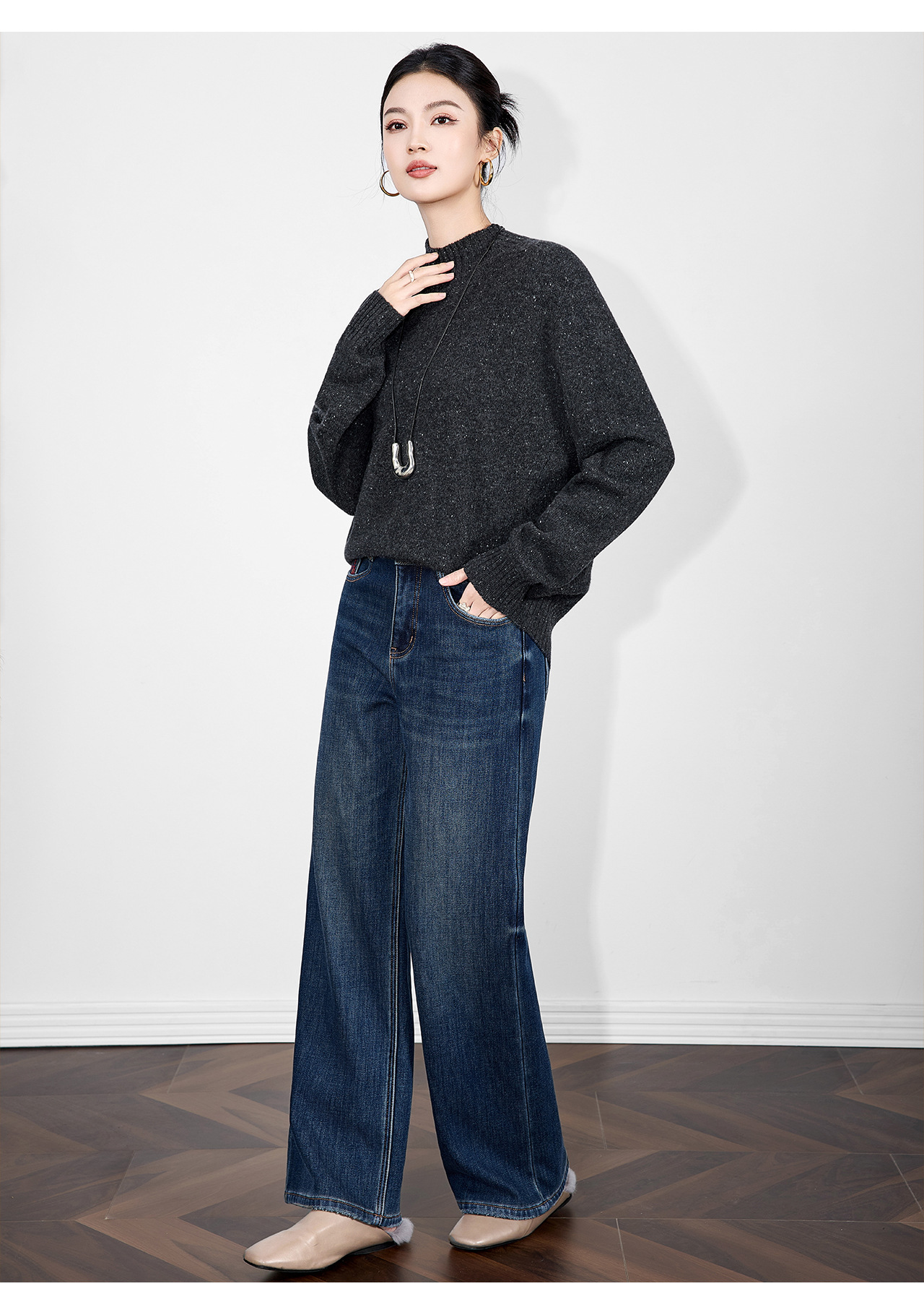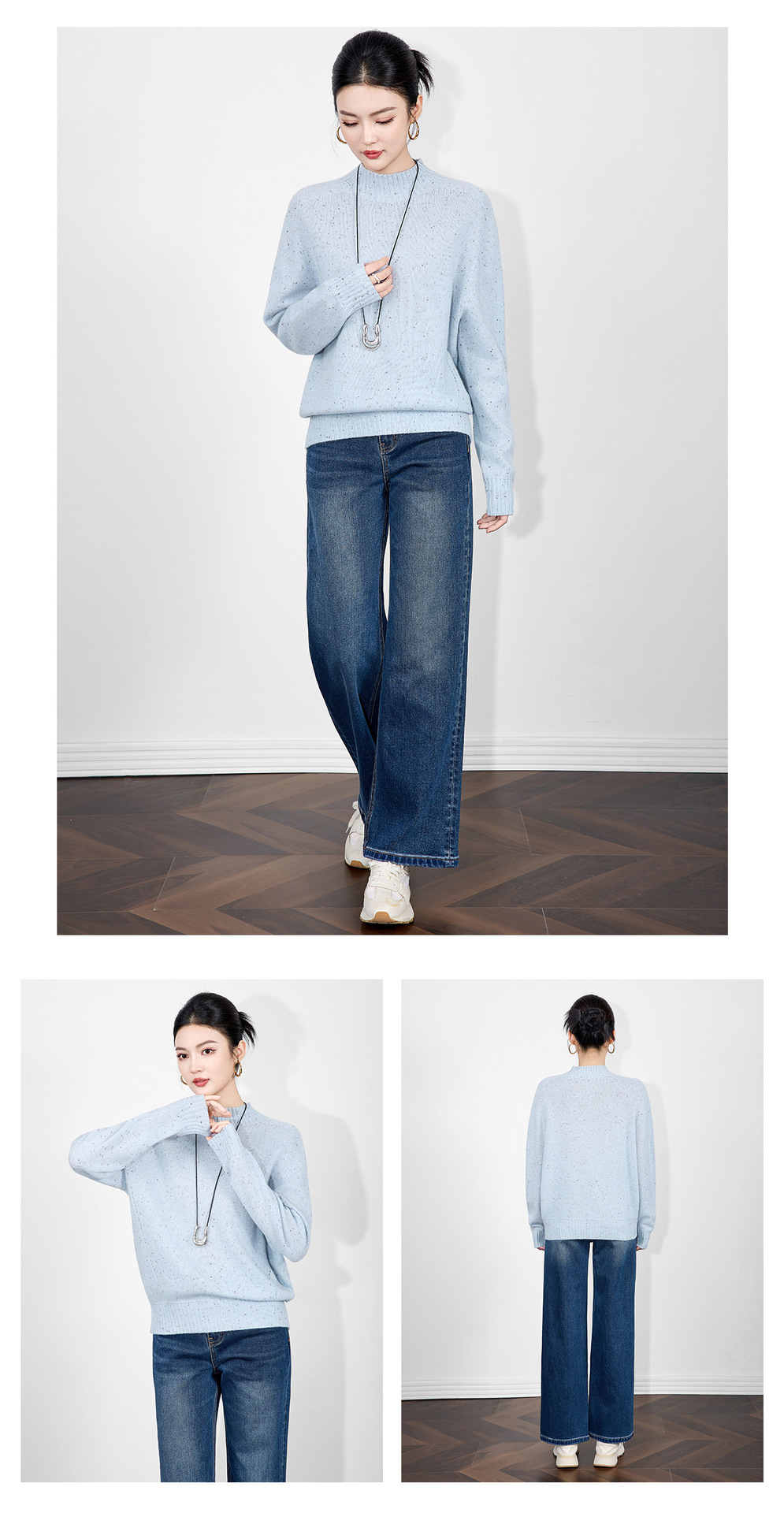 「高货wl」全新升级【铂金会员238/天猫319/差价81】(00251)洛诗琳密织彩点纱美丽诺羊毛上衣2025秋冬立领宽松针织毛