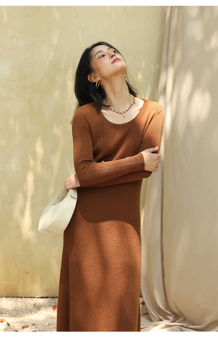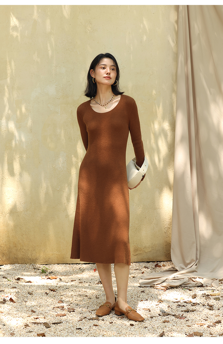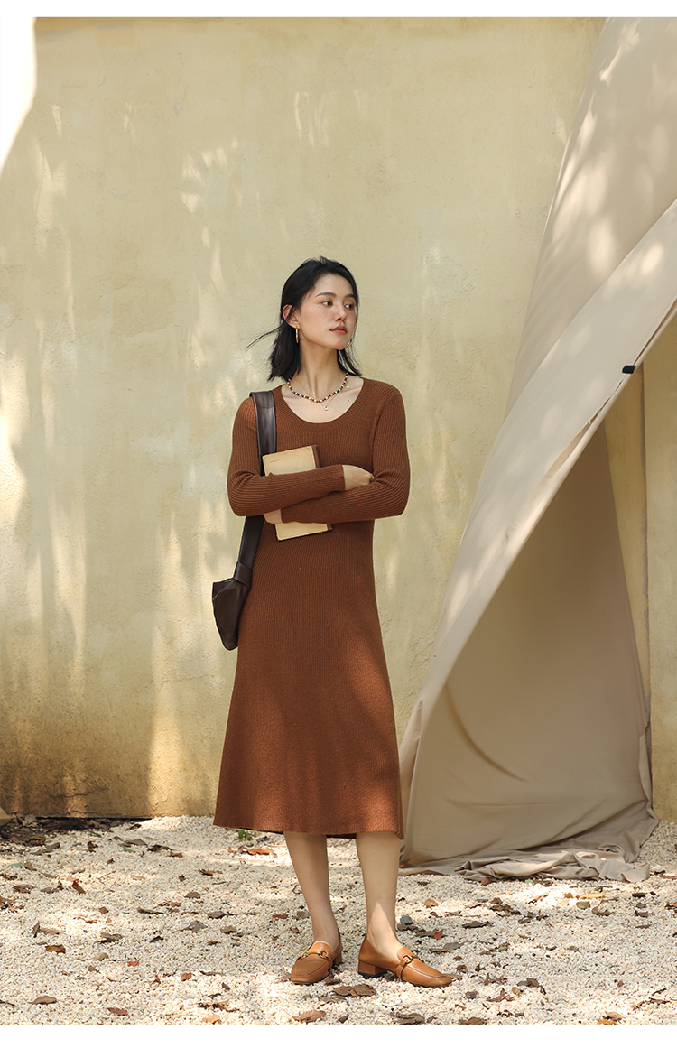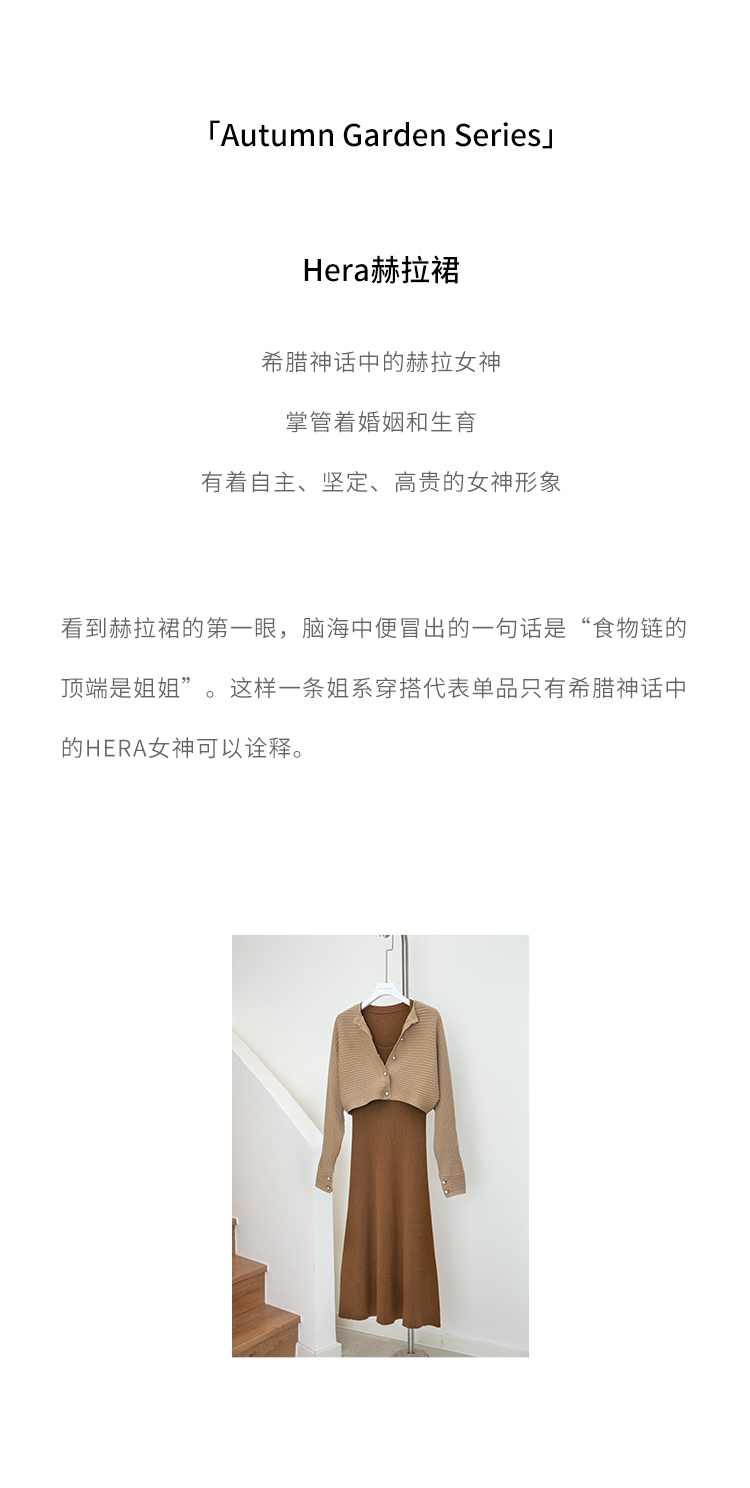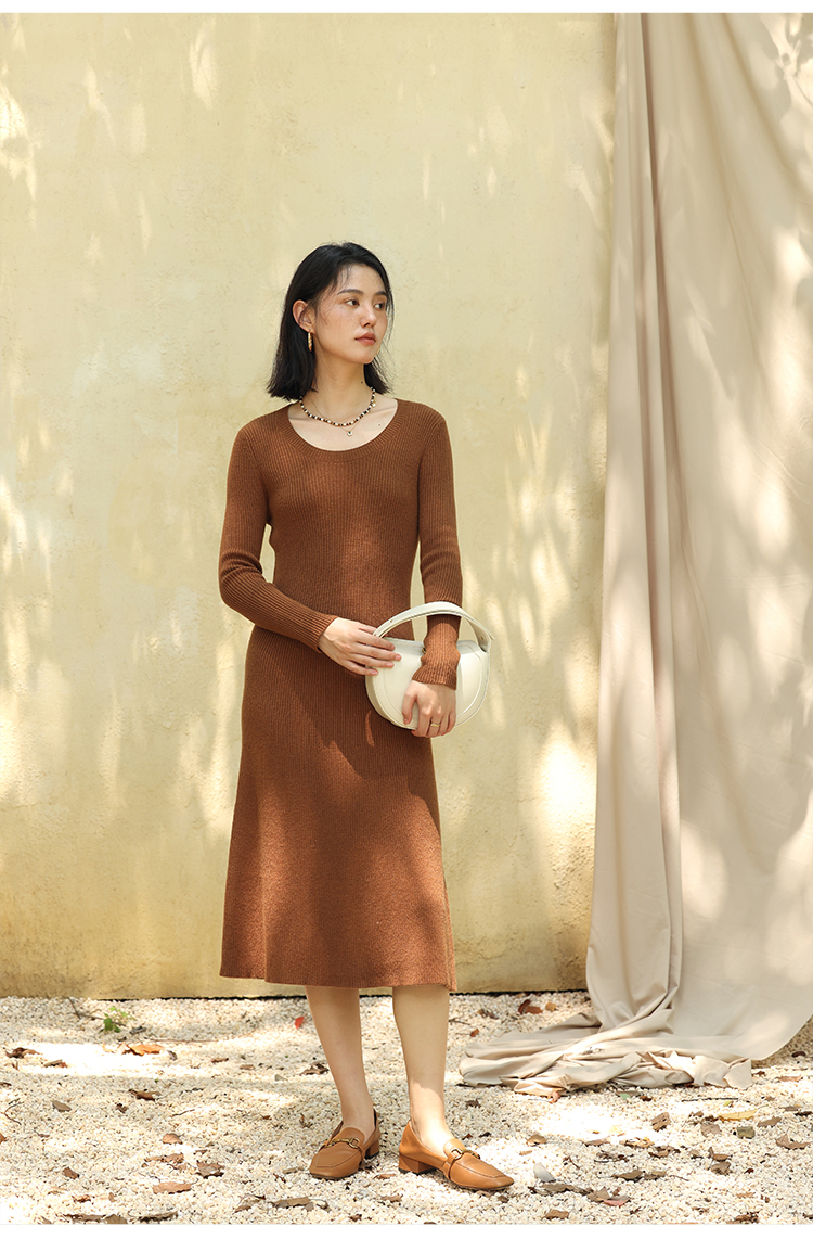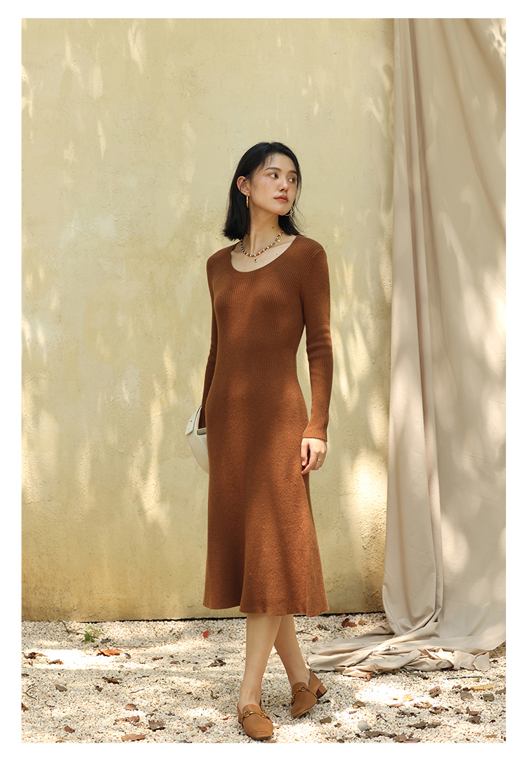 HeyDress法式羊毛针织连衣裙女秋季修身显瘦开衫U领显瘦A字裙子