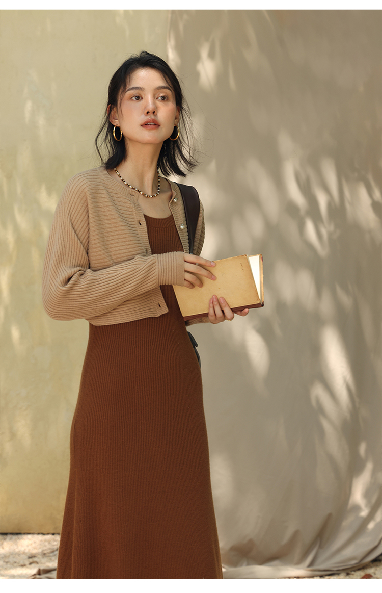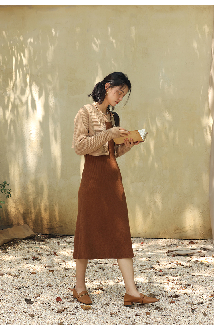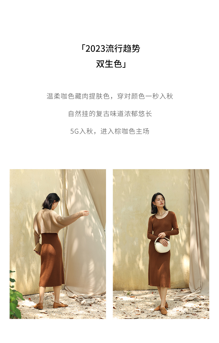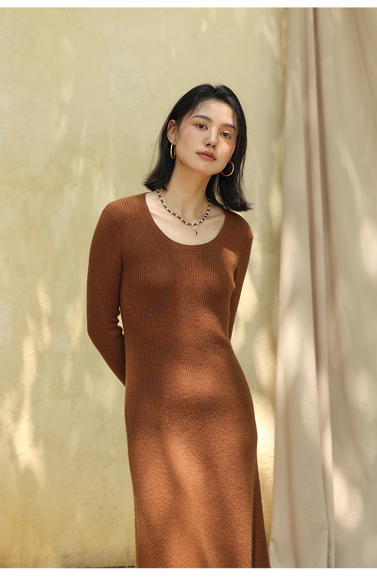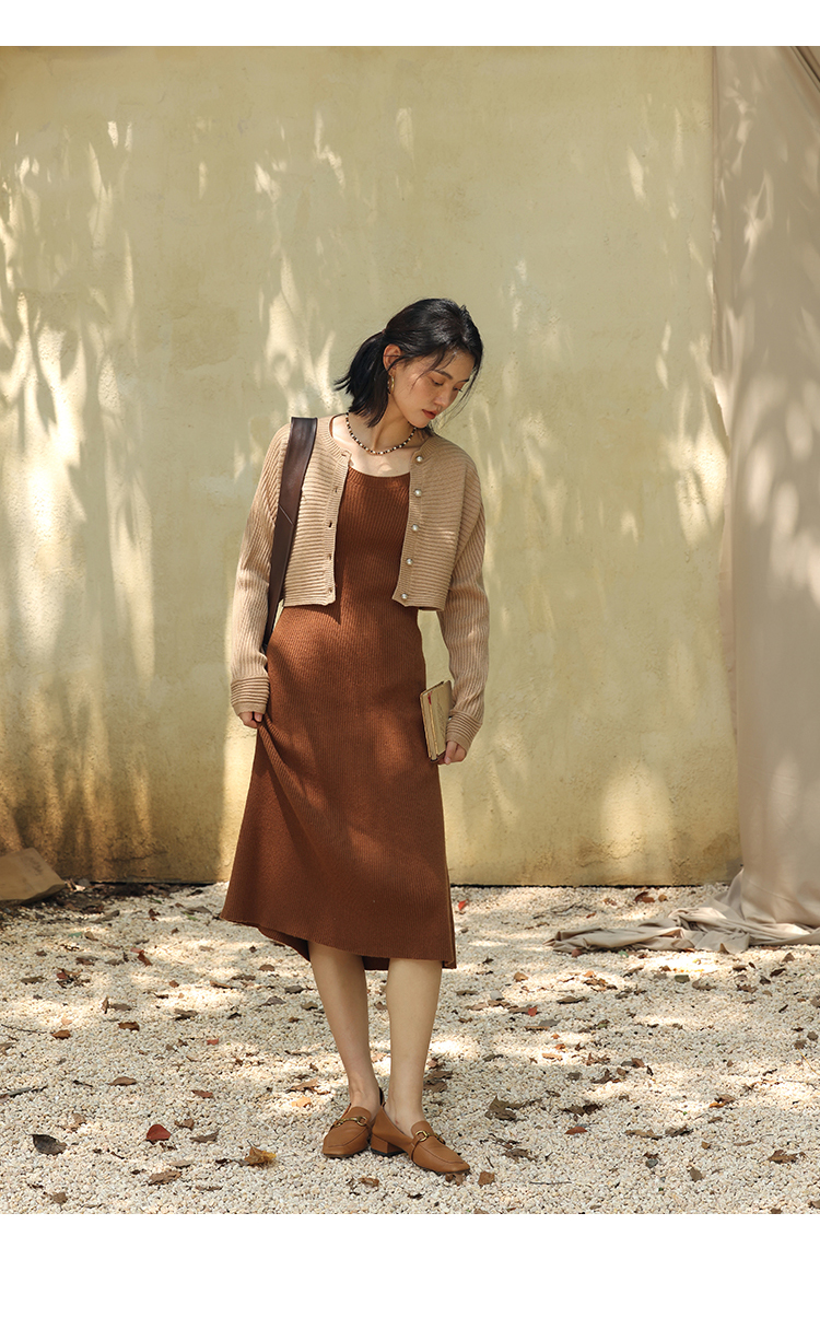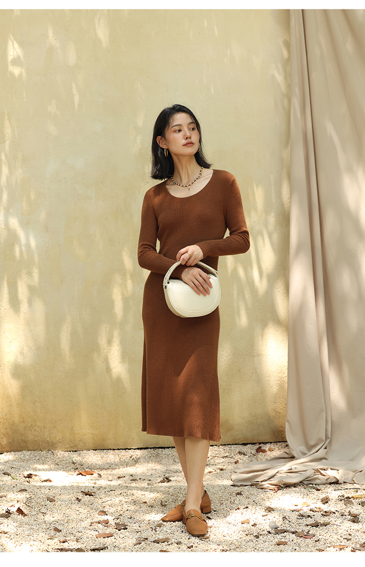 HeyDress法式羊毛针织连衣裙女秋季修身显瘦开衫U领显瘦A字裙子