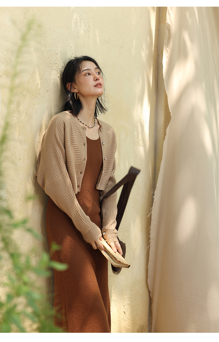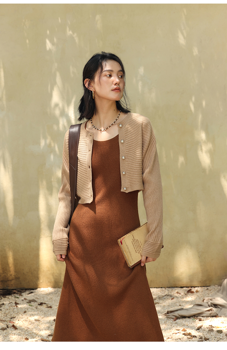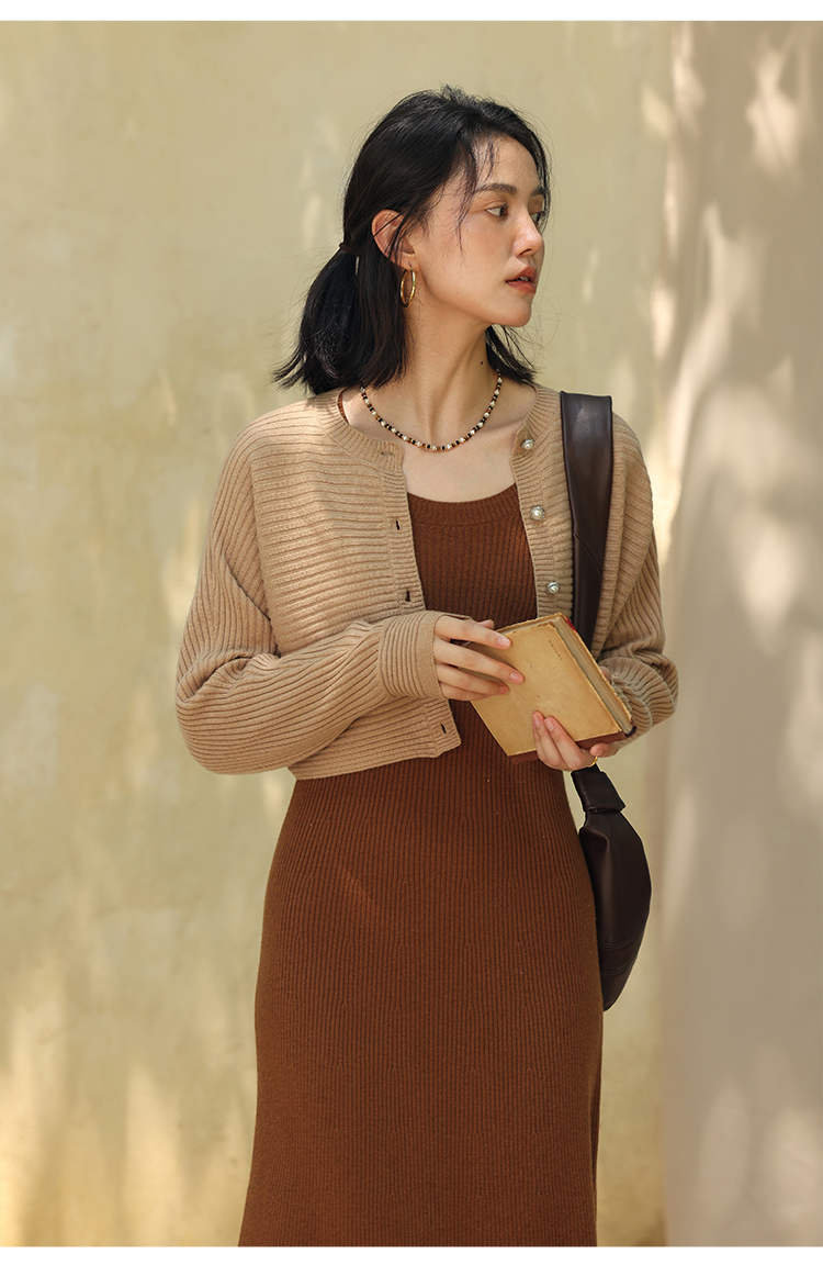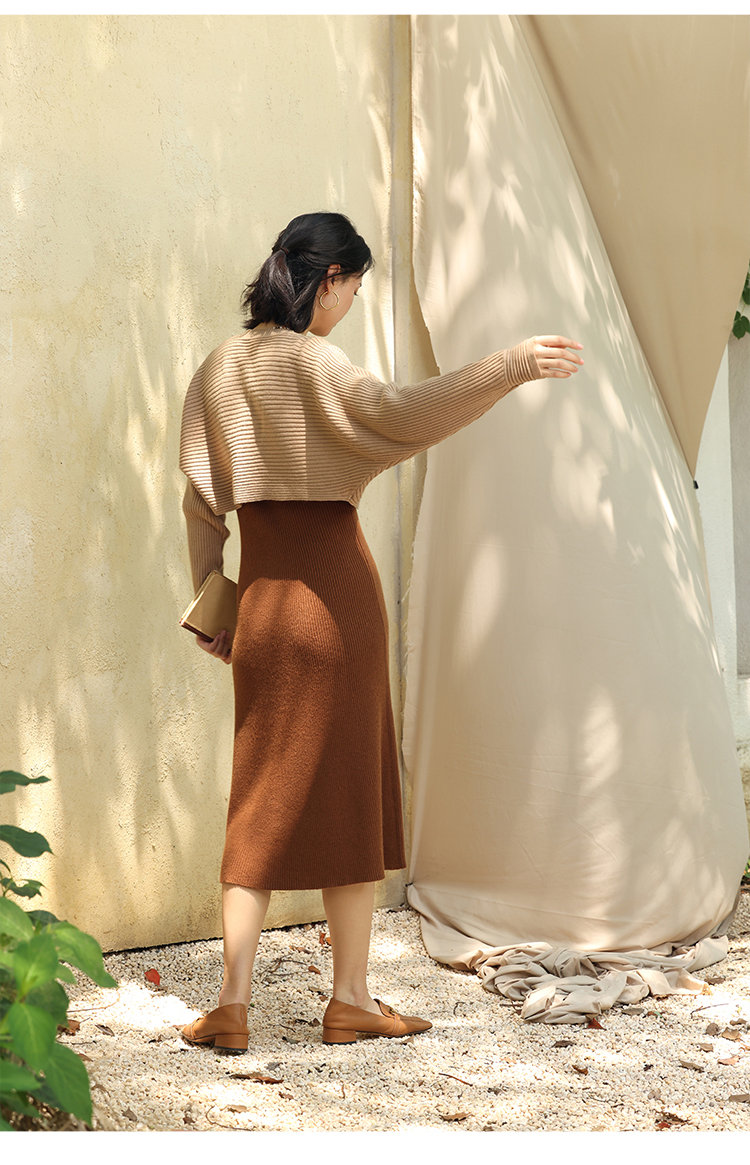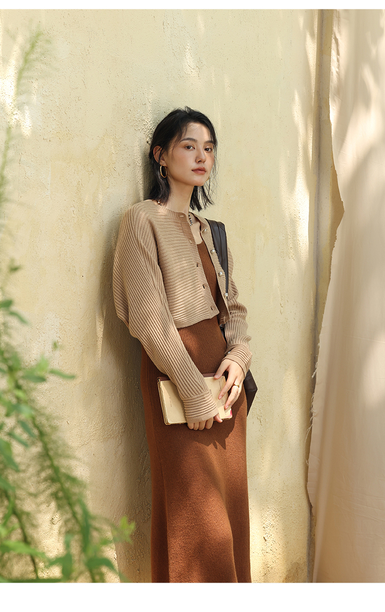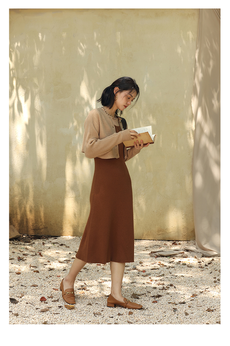 HeyDress法式羊毛针织连衣裙女秋季修身显瘦开衫U领显瘦A字裙子