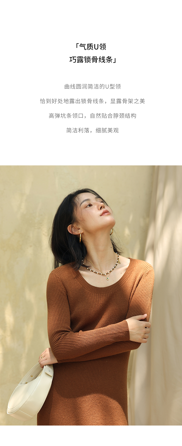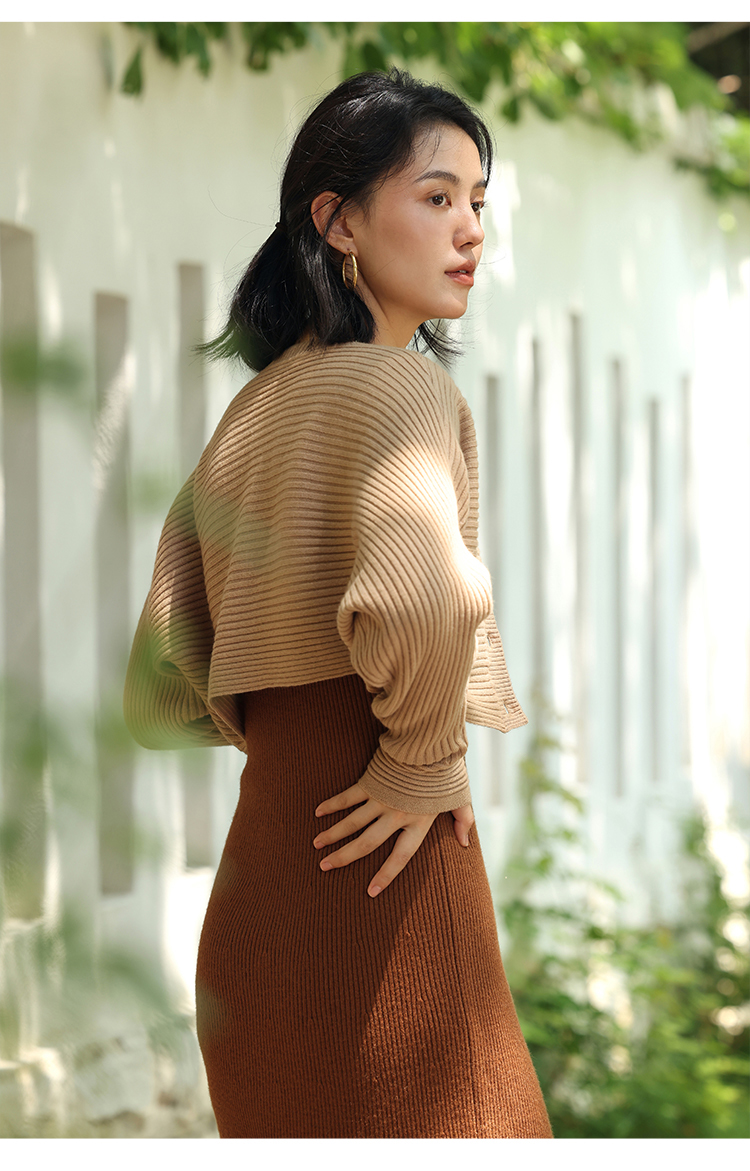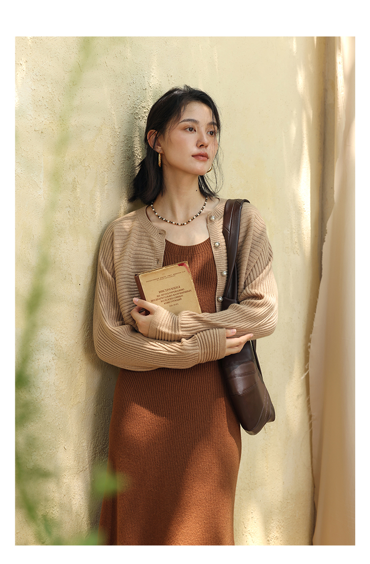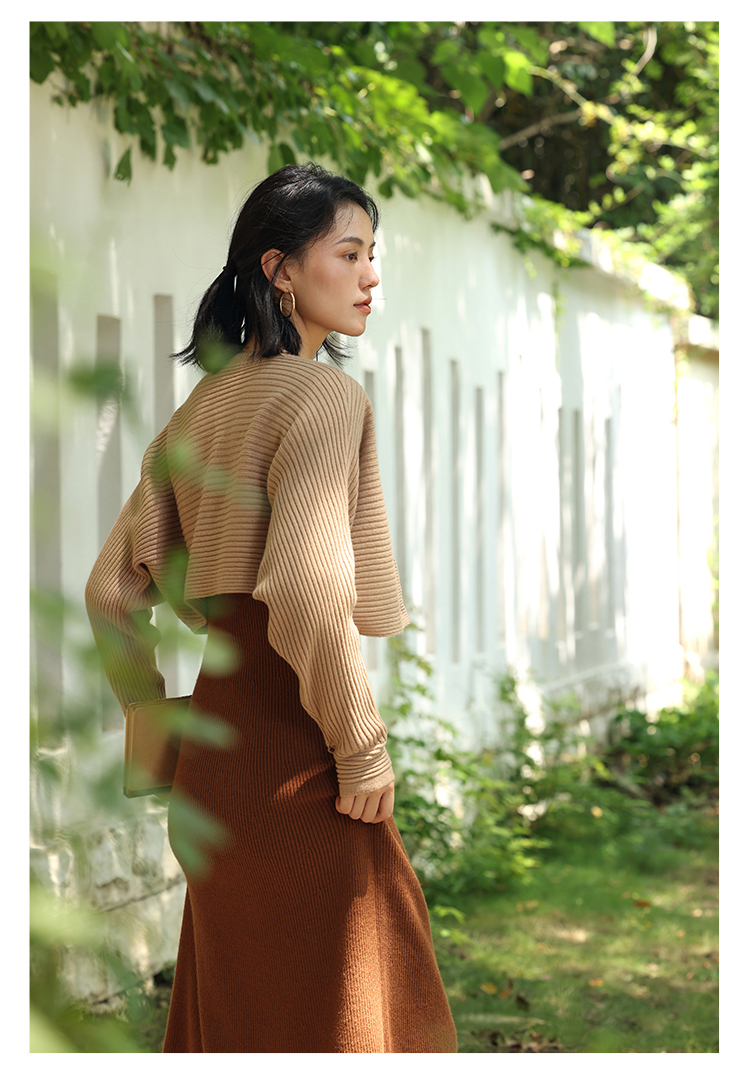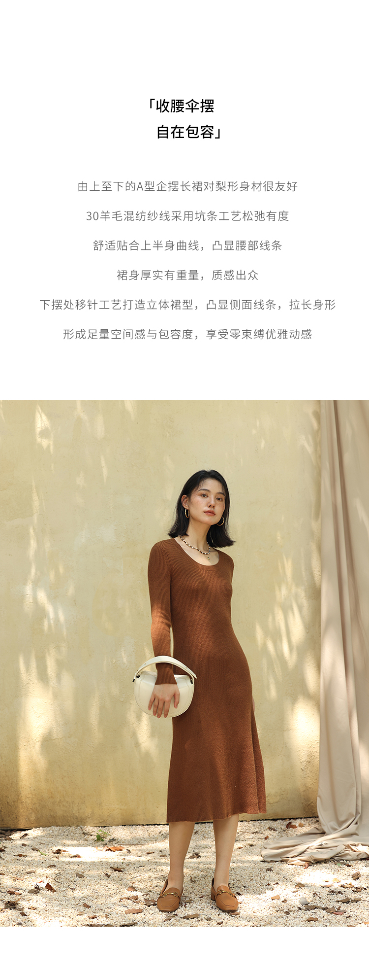 HeyDress法式羊毛针织连衣裙女秋季修身显瘦开衫U领显瘦A字裙子