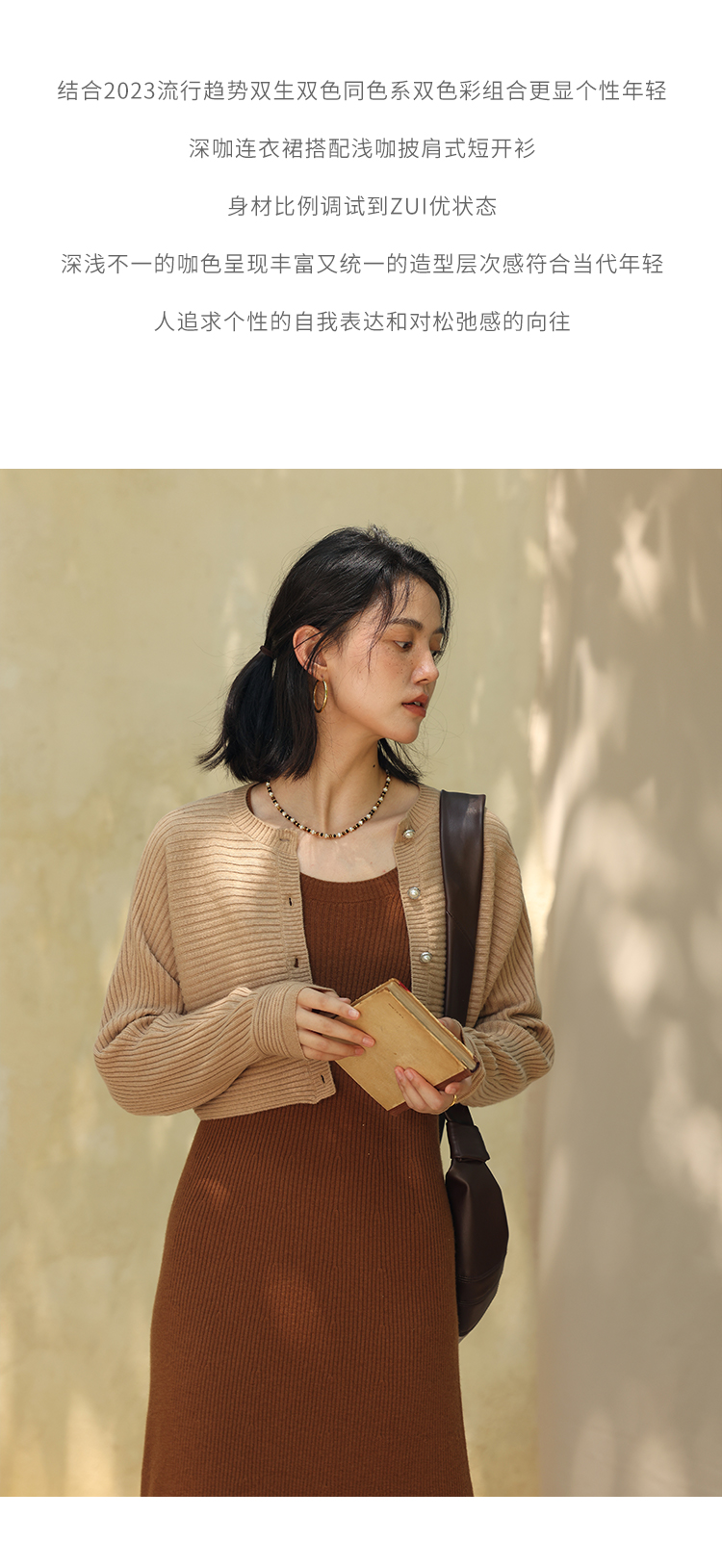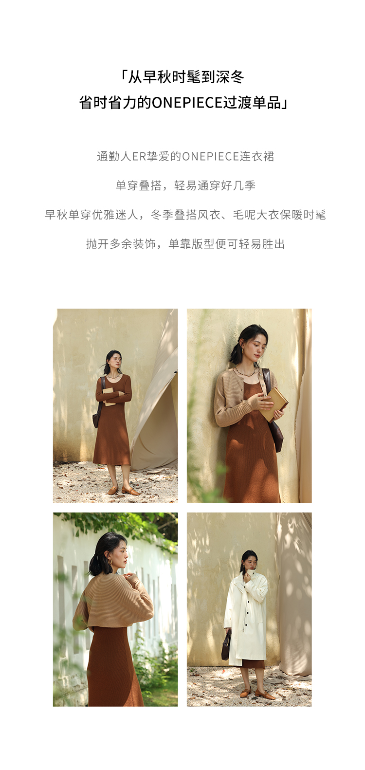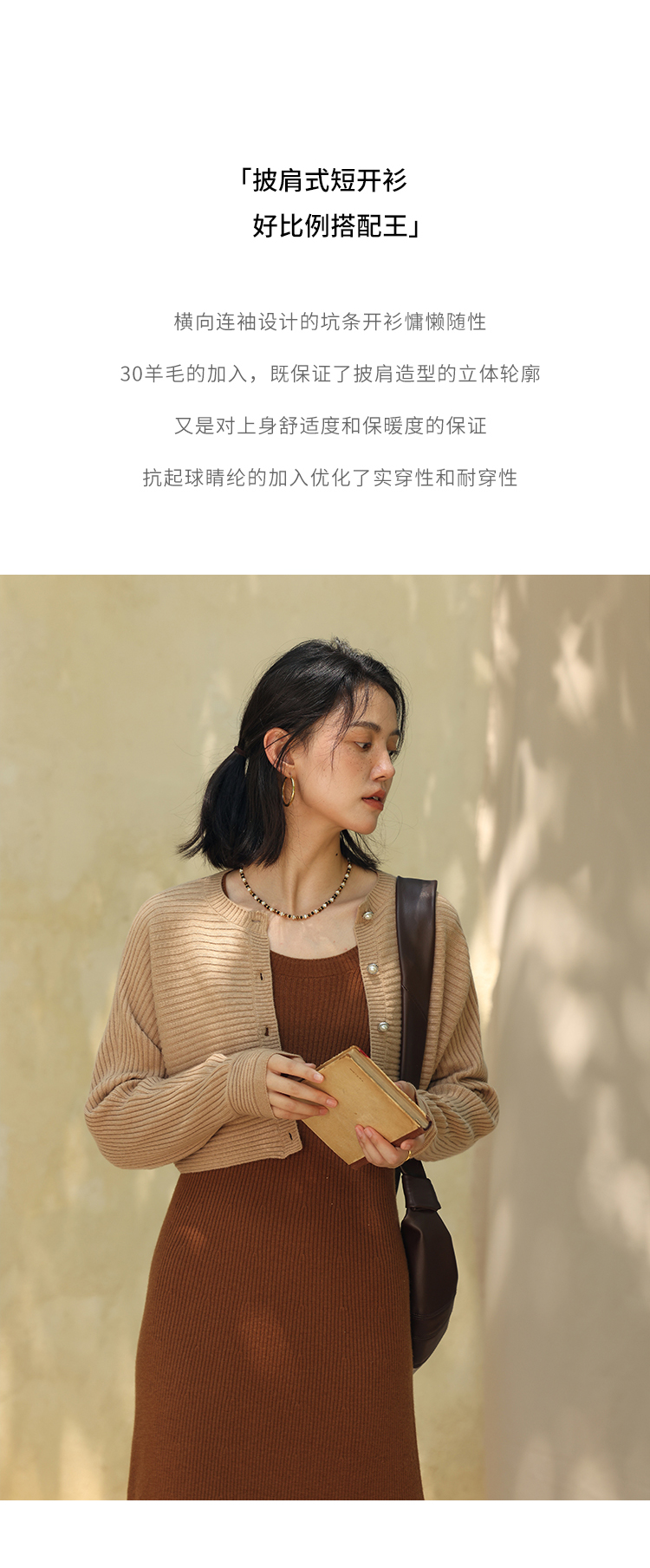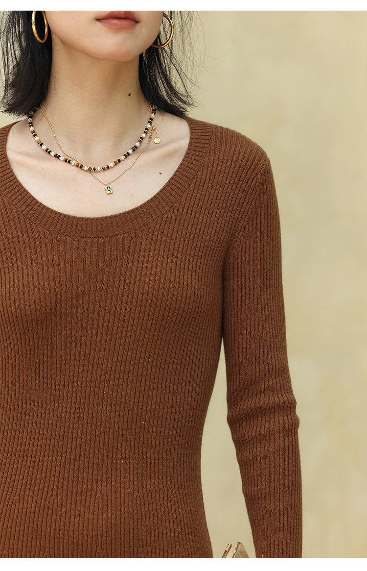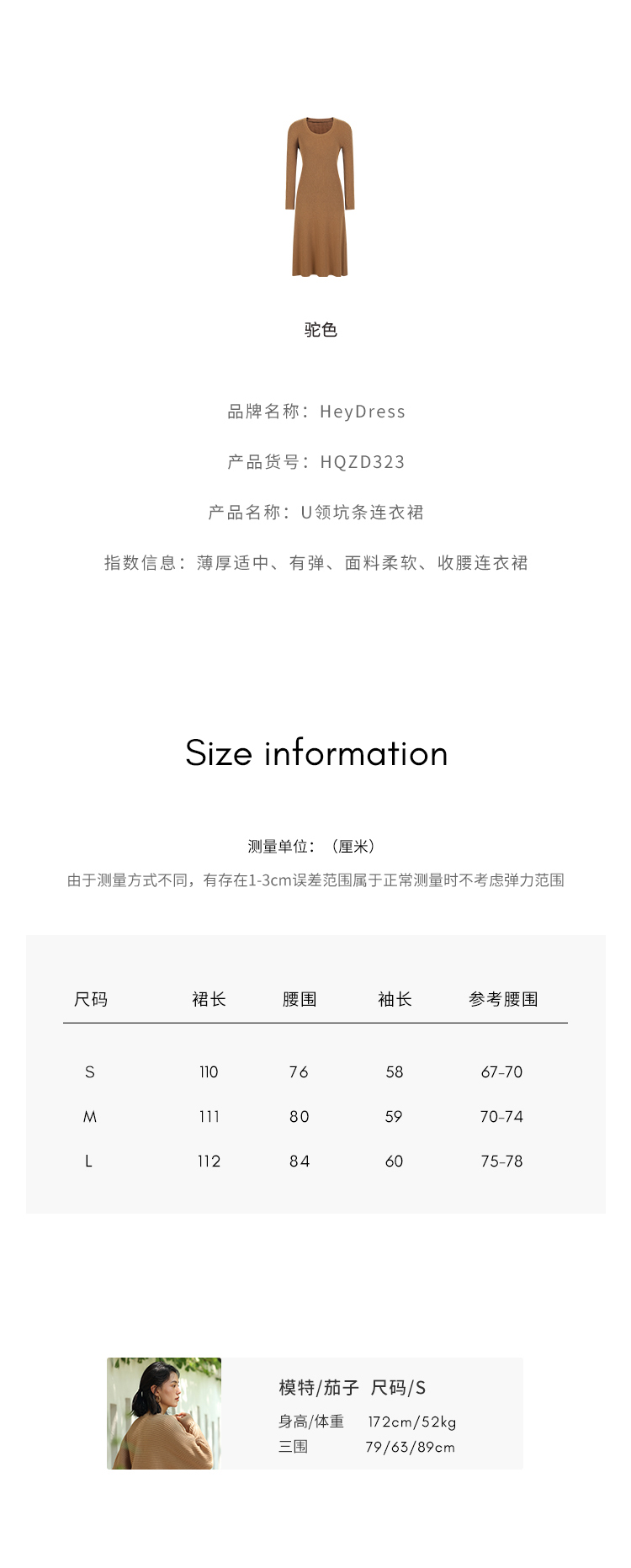 HeyDress法式羊毛针织连衣裙女秋季修身显瘦开衫U领显瘦A字裙子