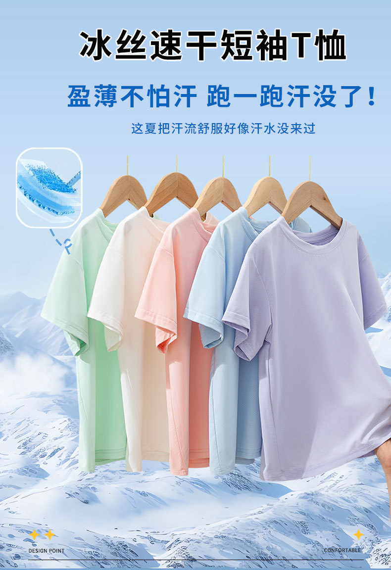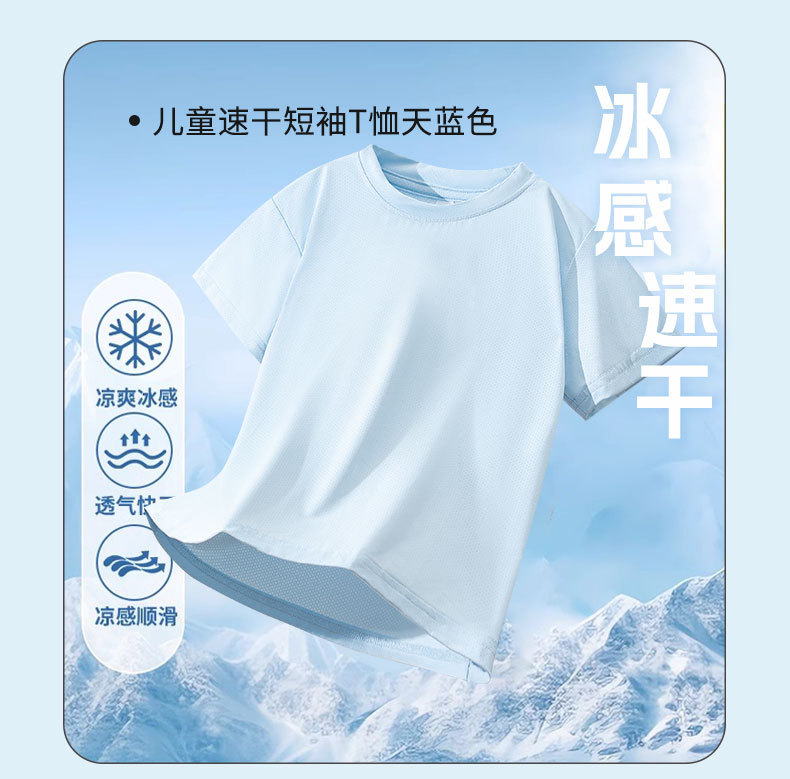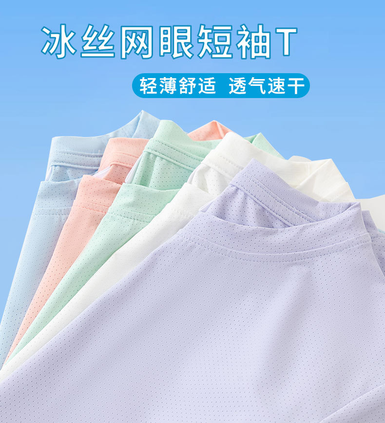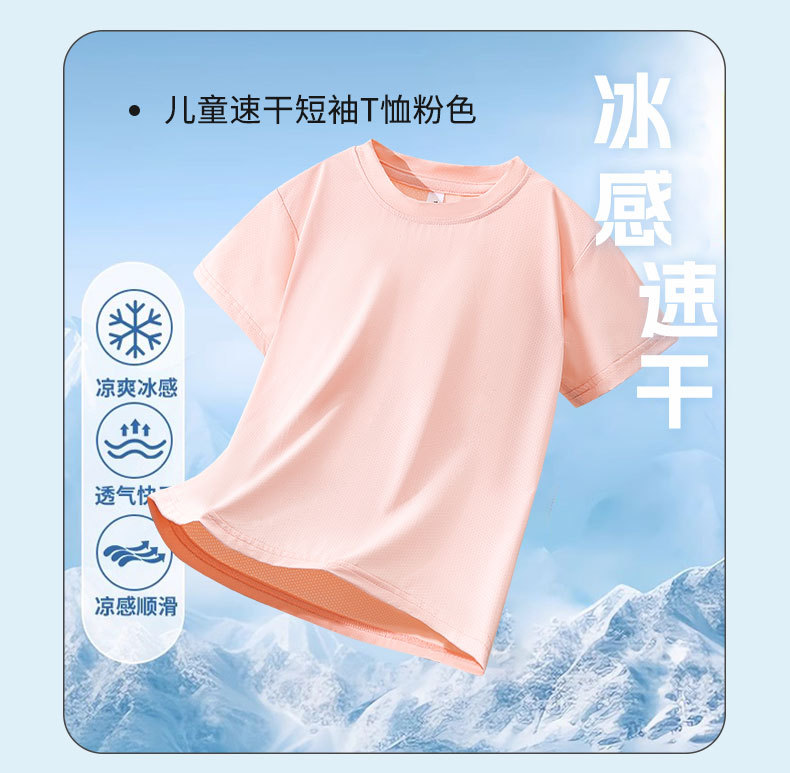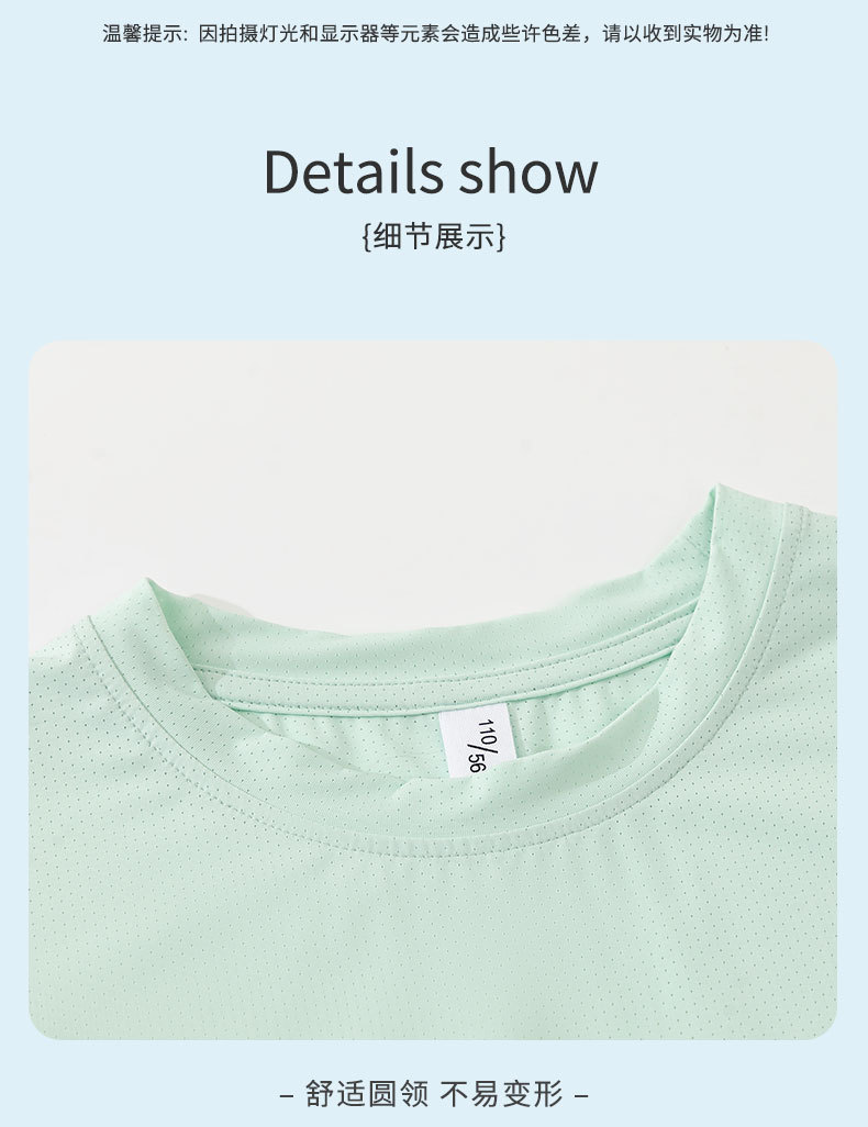 【盈薄不怕汗,跑一跑汗没了~】儿童冰丝速干衣 纯色童装 男童网眼短袖 中大童夏装 女童运动t恤薄款-QQ