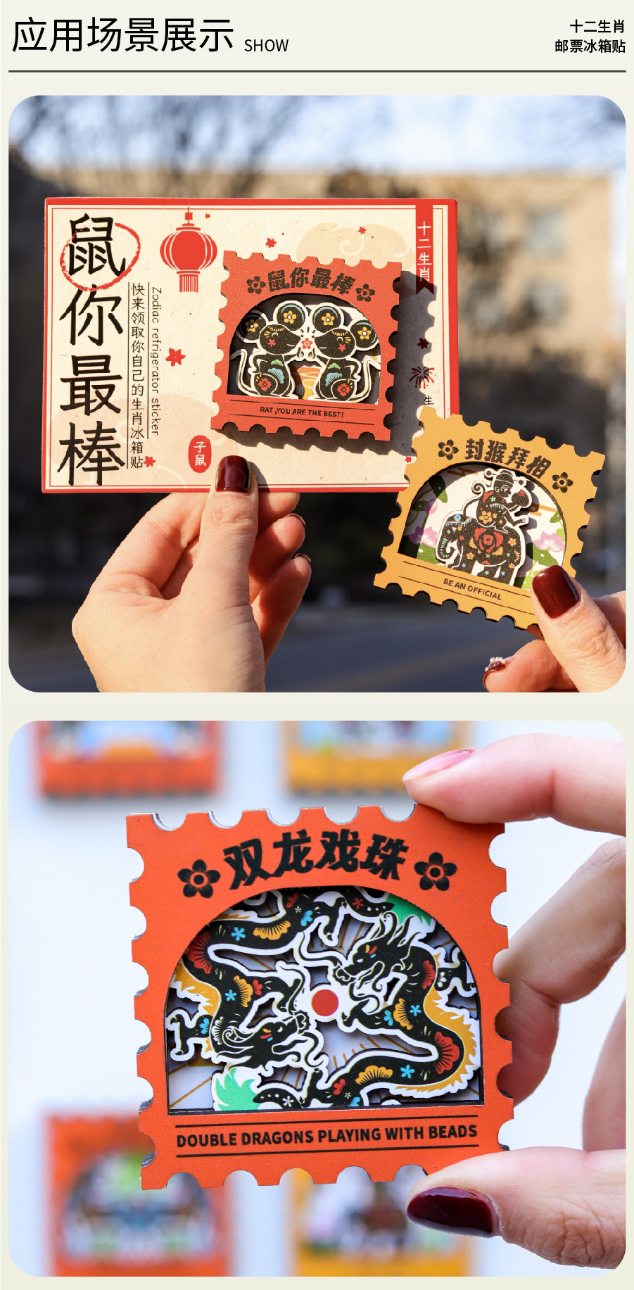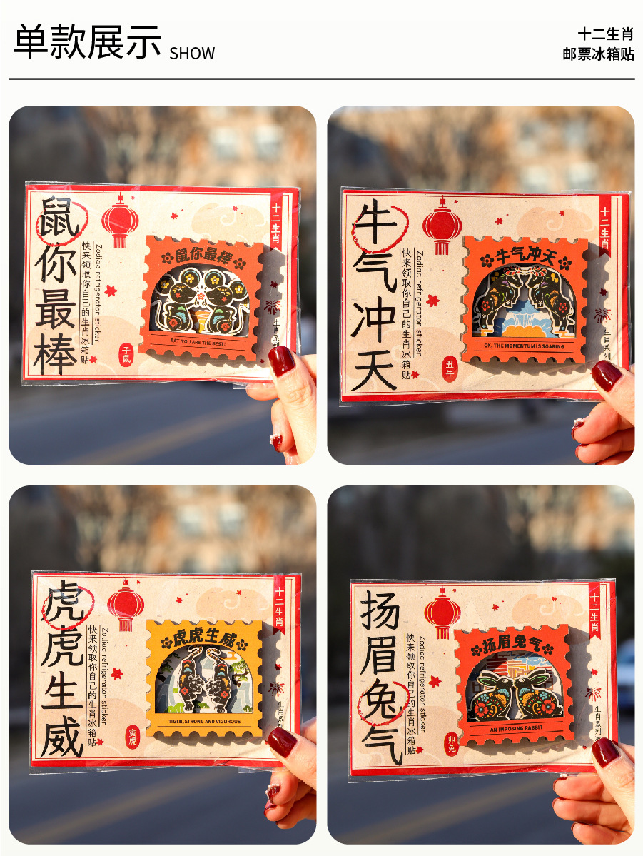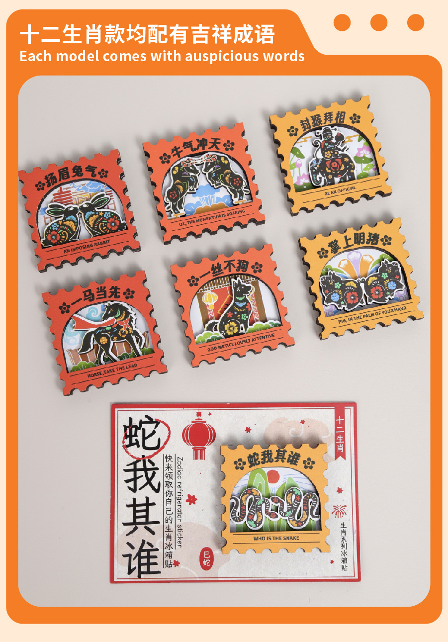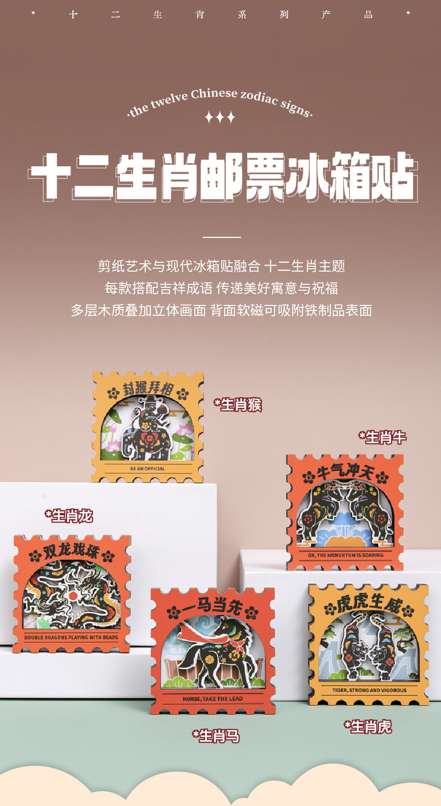 【十二生肖动物冰箱贴】 木质磁性贴新年文创意国风旅游纪念礼品