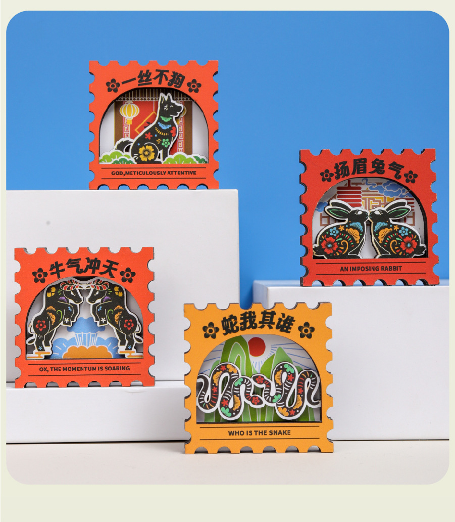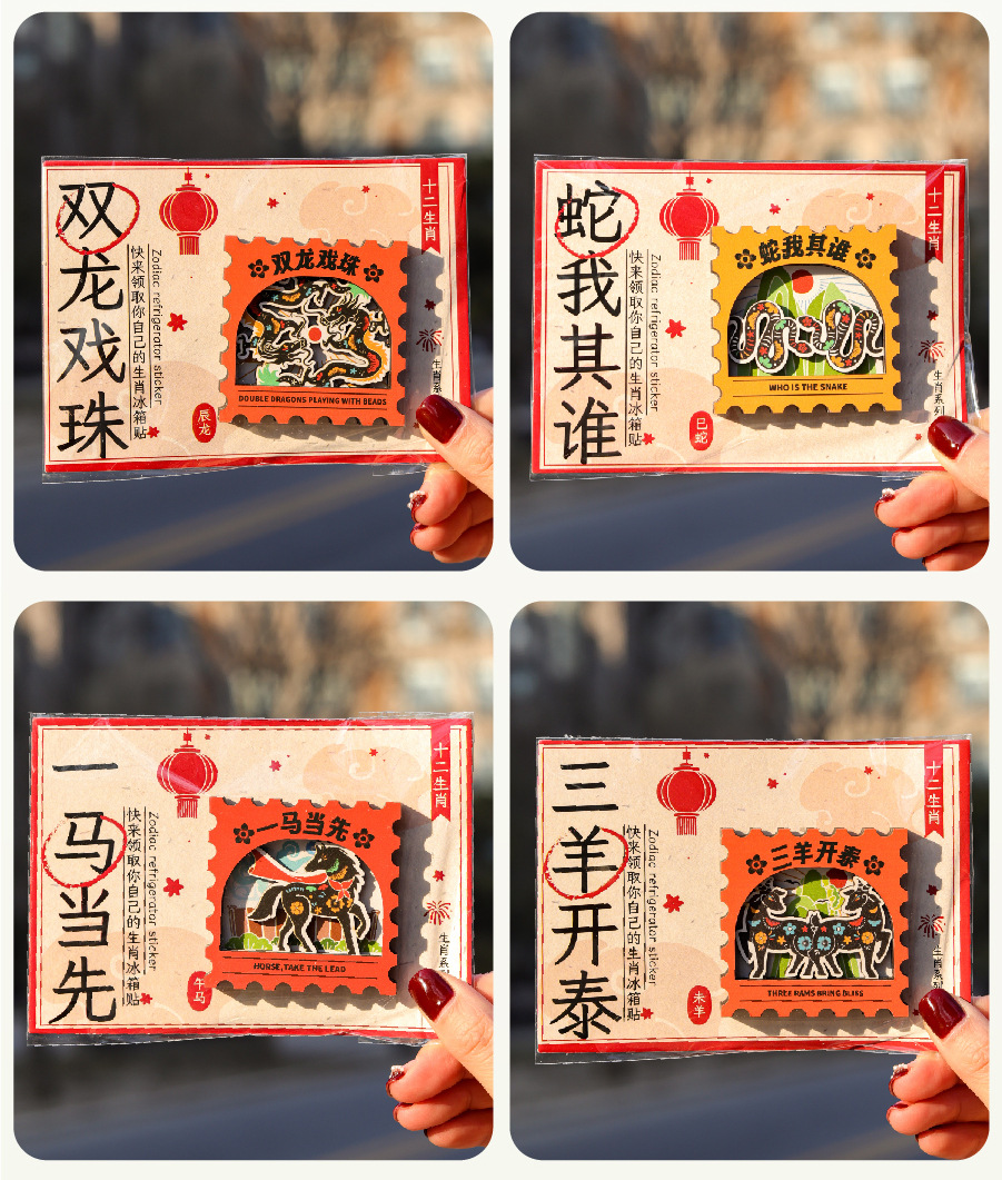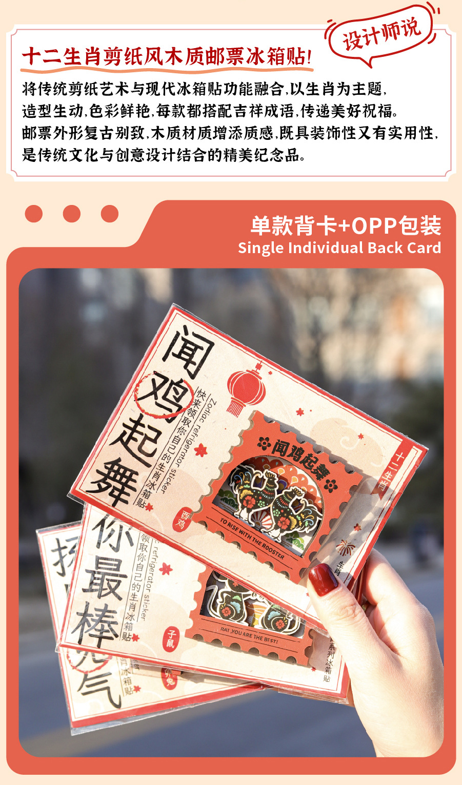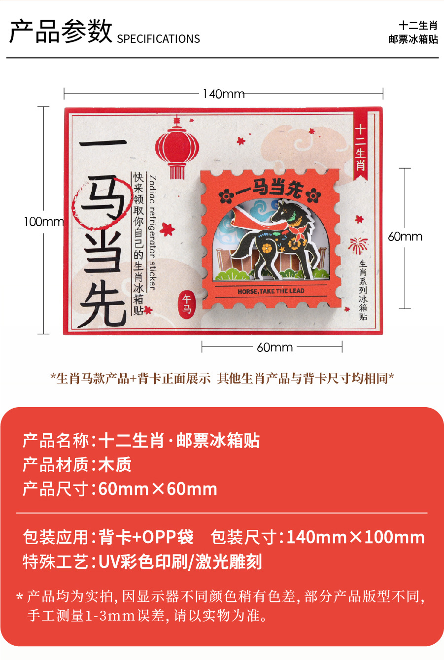 【十二生肖动物冰箱贴】 木质磁性贴新年文创意国风旅游纪念礼品