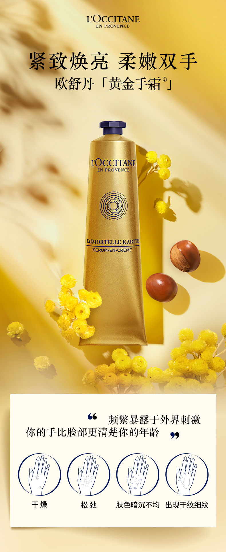 欧舒丹乳木果腊菊手部紧致精华霜75ml+颈部精华霜50ML