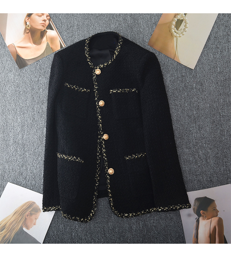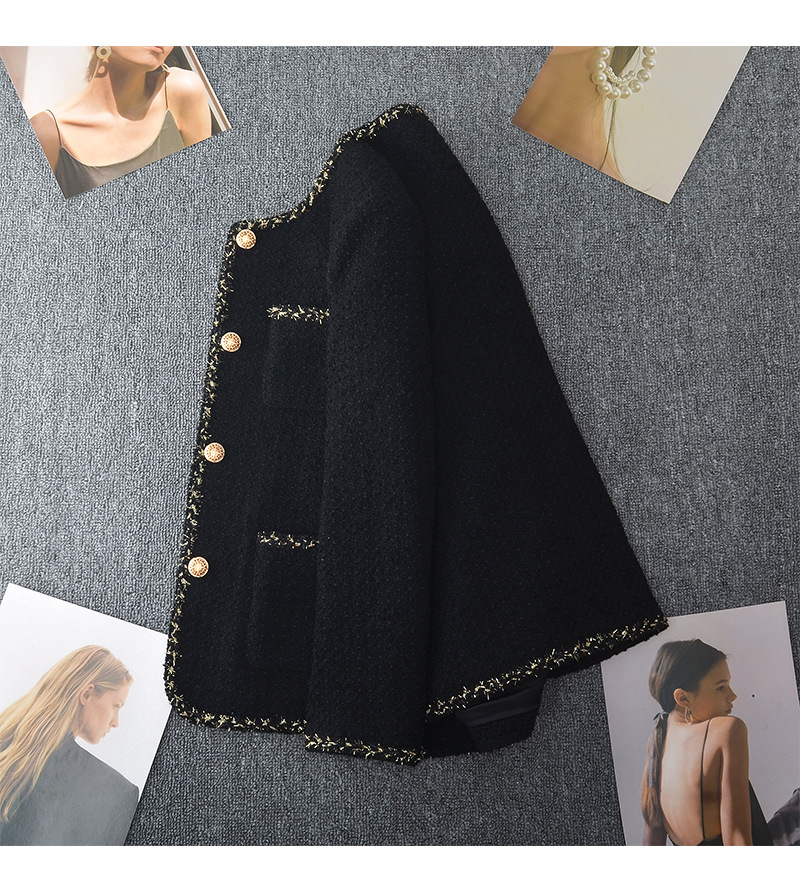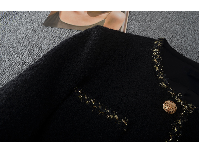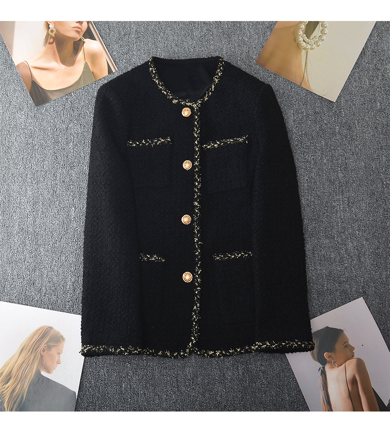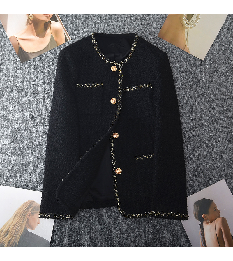丁摩 新款大码金丝小香风外套女春胖mm中长款圆领显瘦粗花呢上衣200斤5ZF- 24001