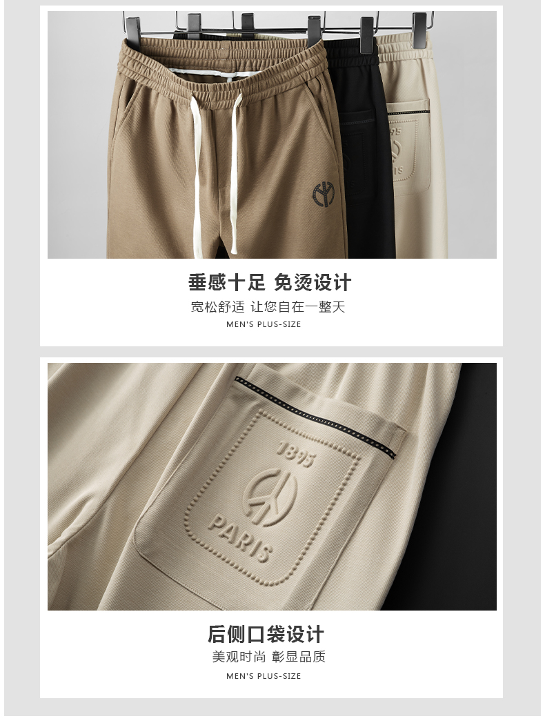 莱赛尔【DDP】大依优型休闲裤运动裤弹力松紧腰直筒裤弹力加肥加大宽松大码男士长裤