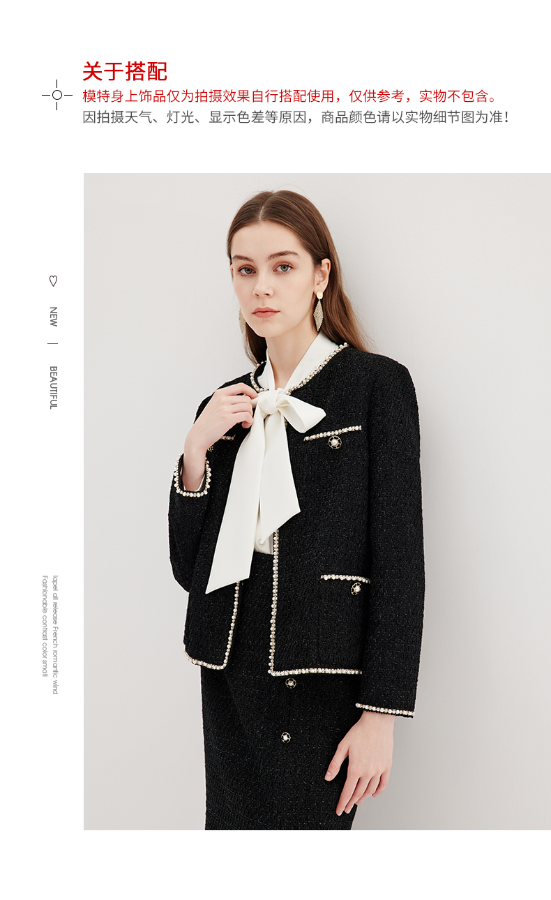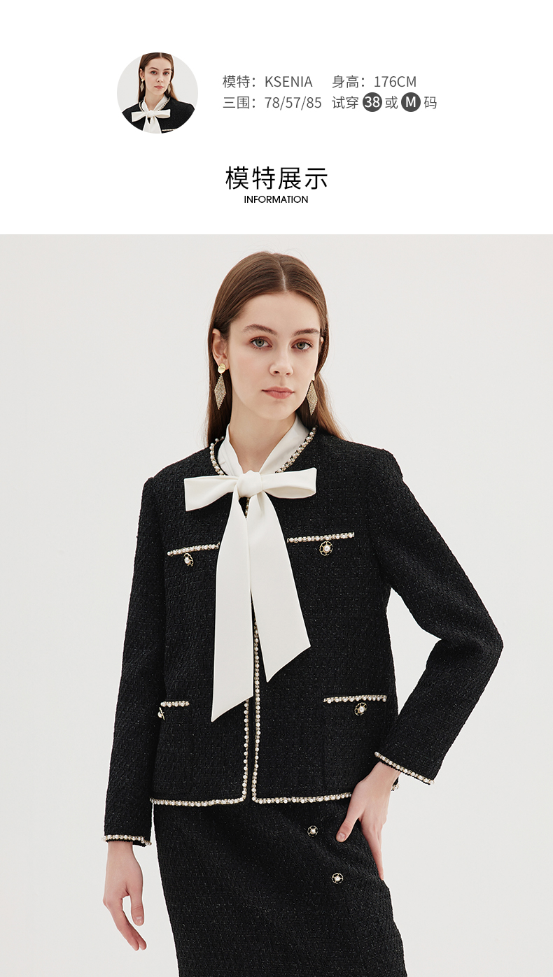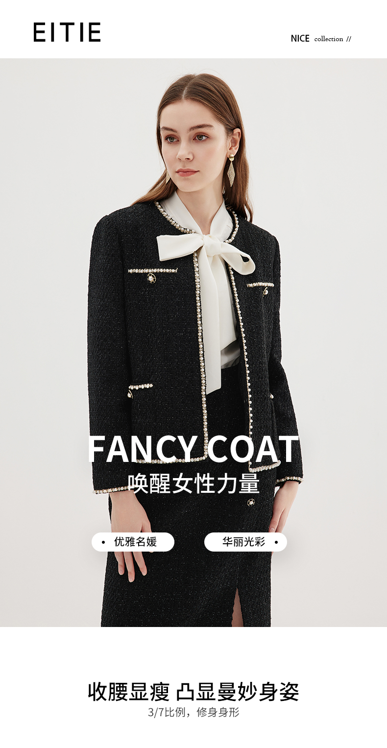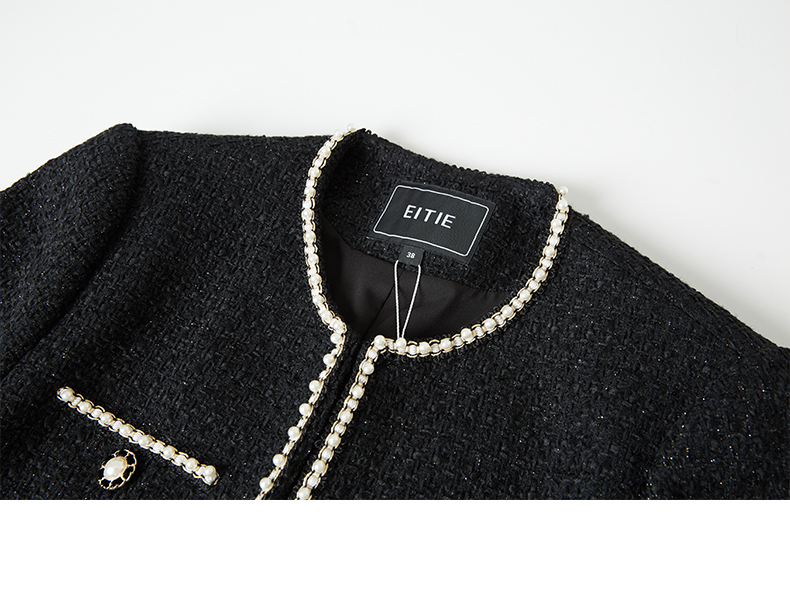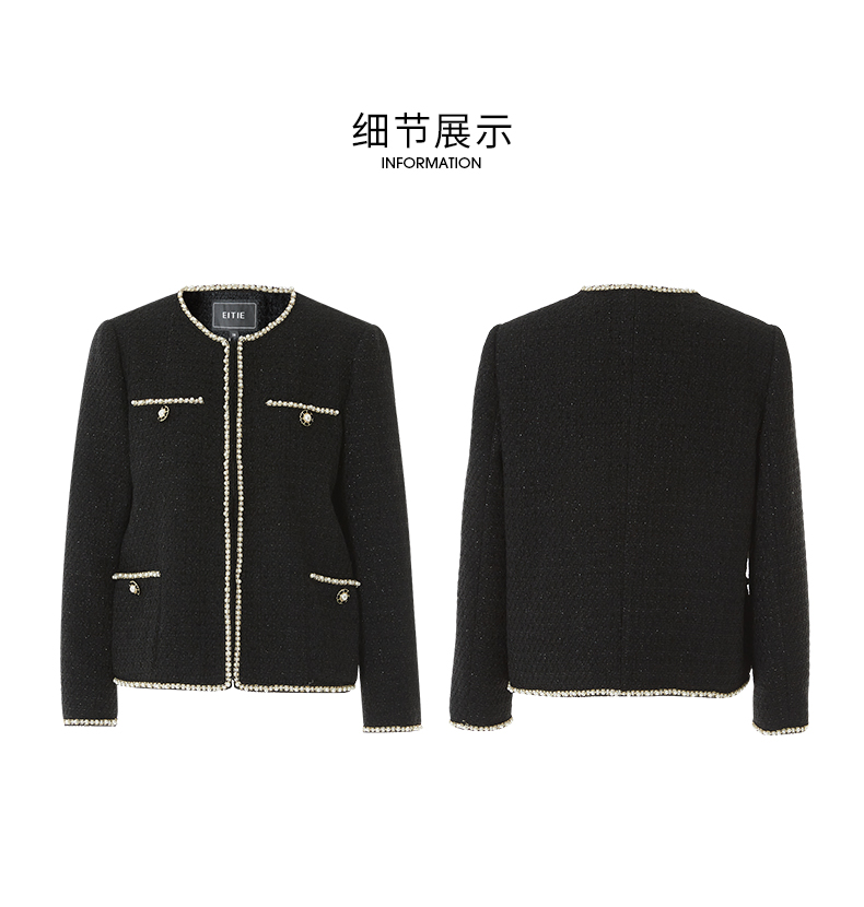 EITIE爱特爱精致千金感黑色通勤直筒小香风粗花呢外套秋季新款C2303210