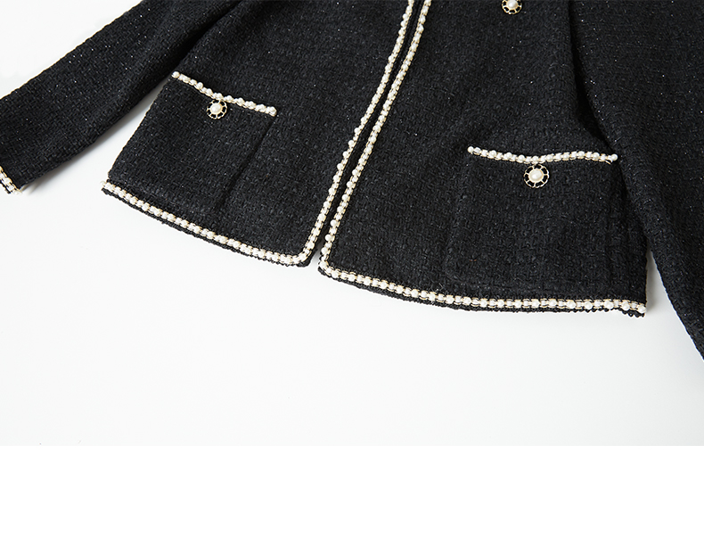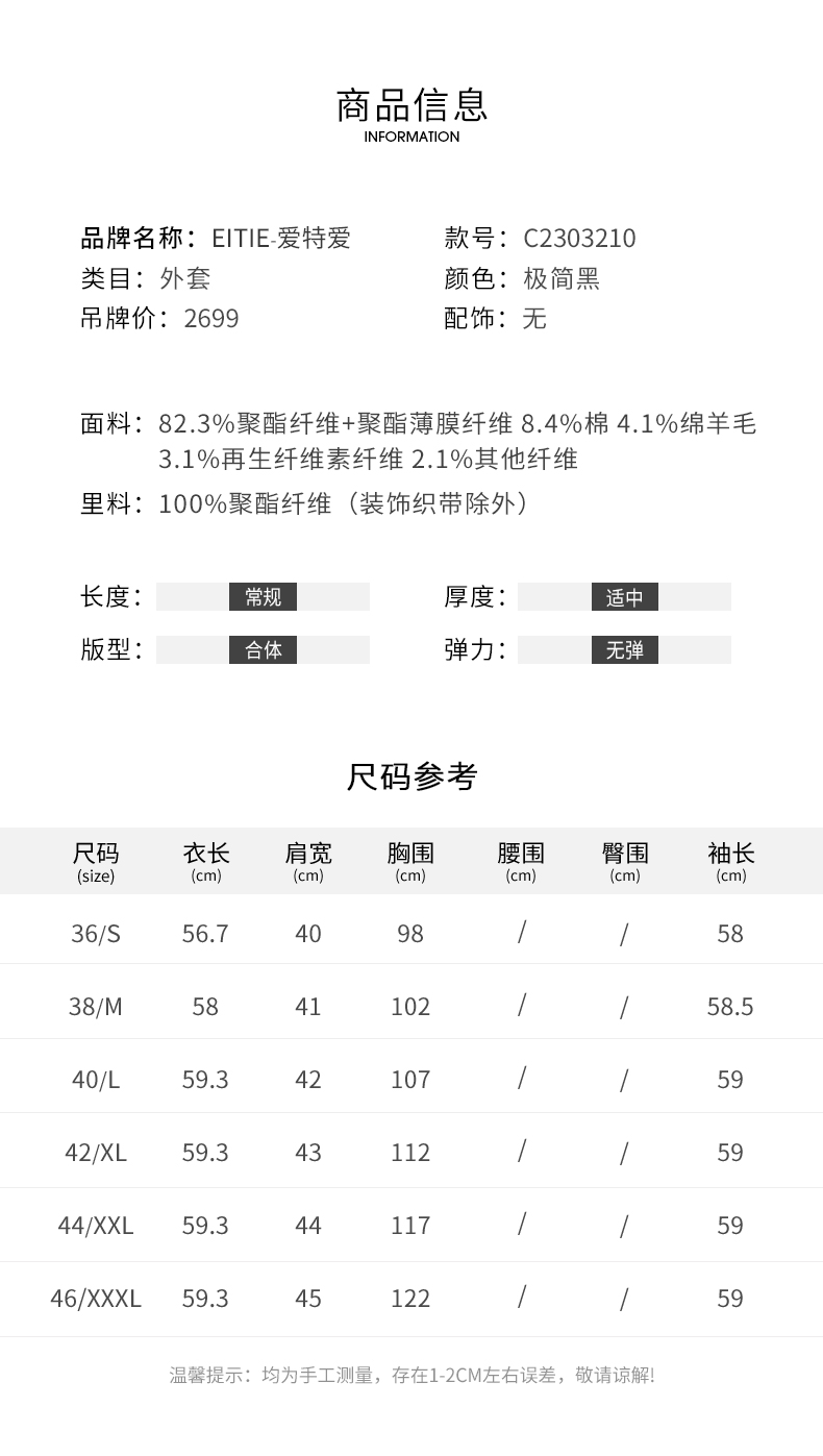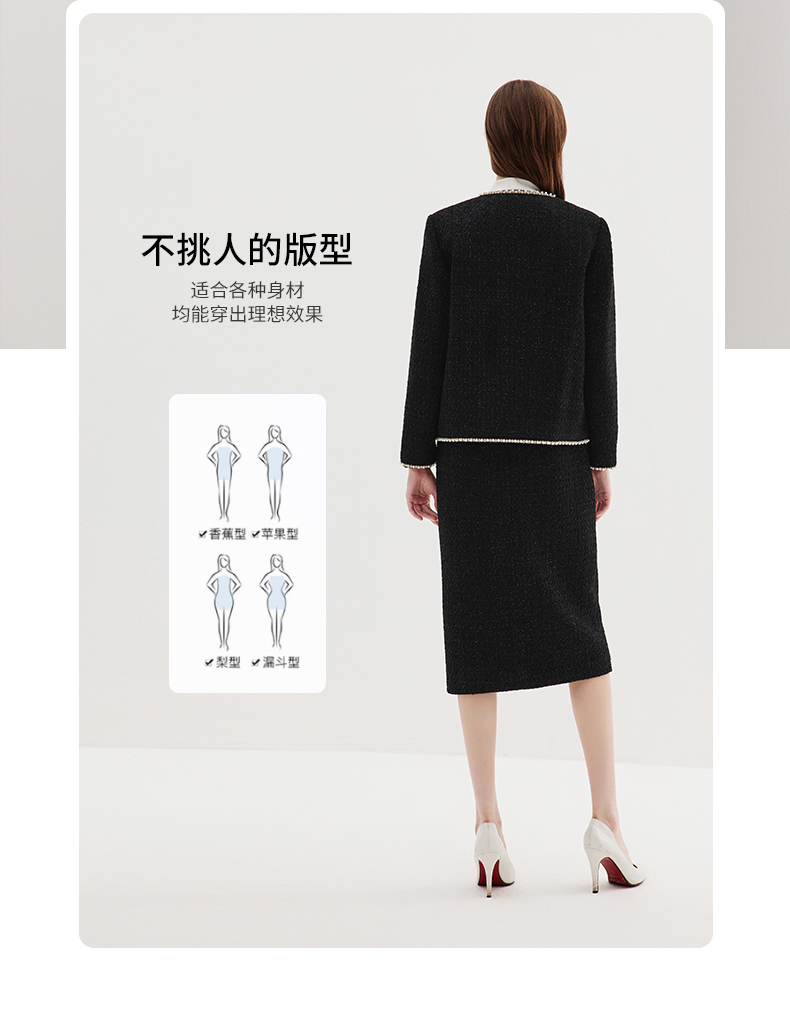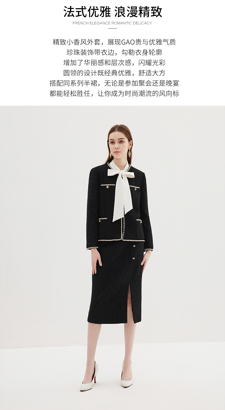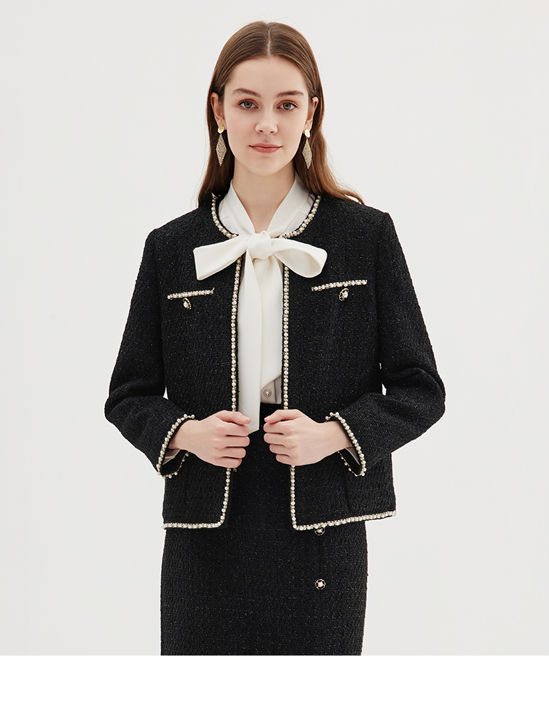 EITIE爱特爱精致千金感黑色通勤直筒小香风粗花呢外套秋季新款C2303210