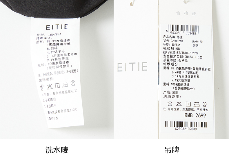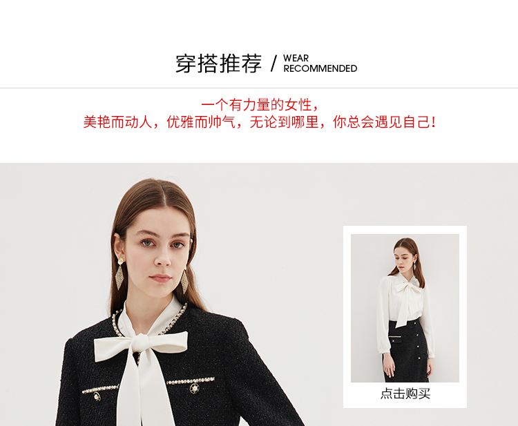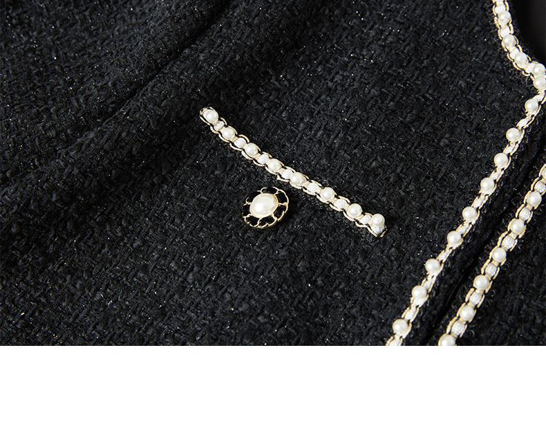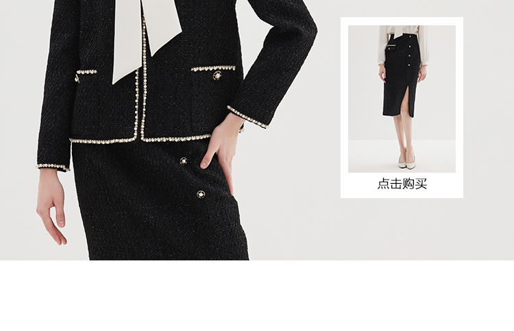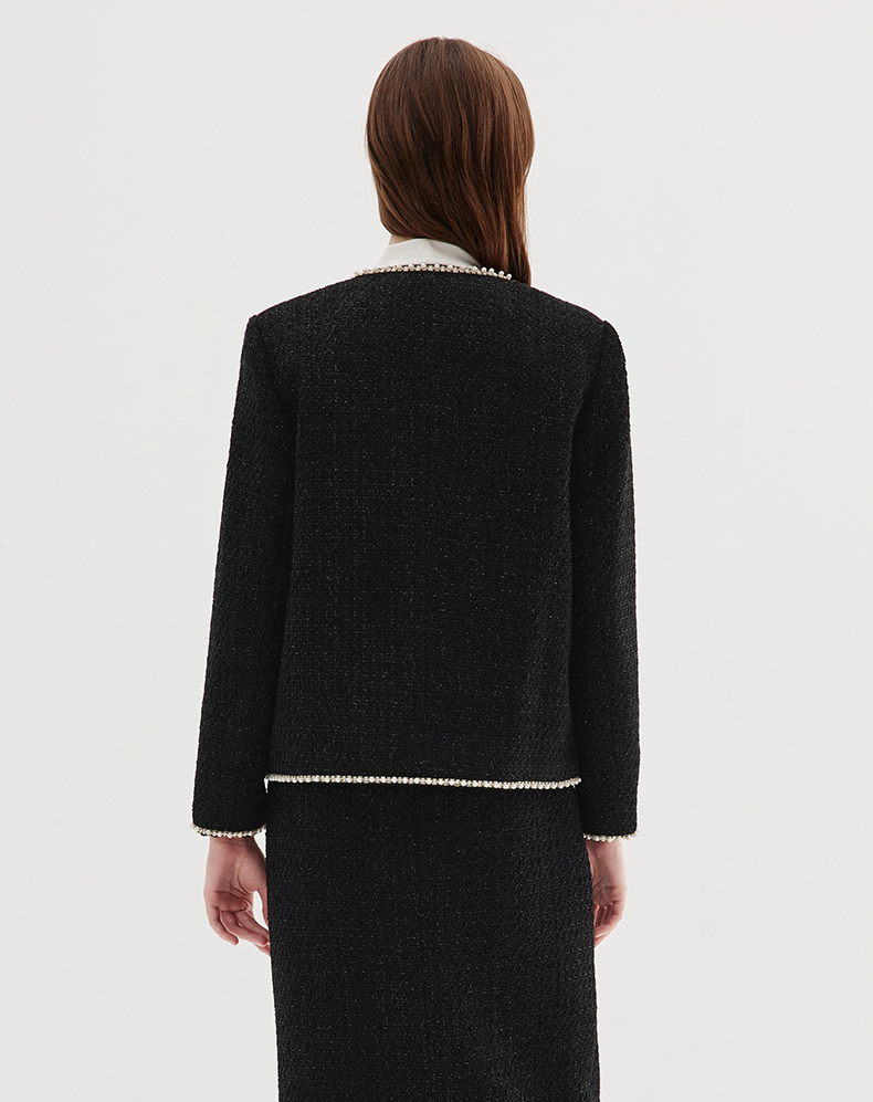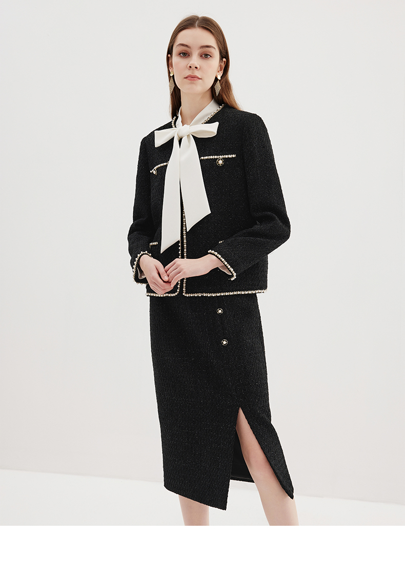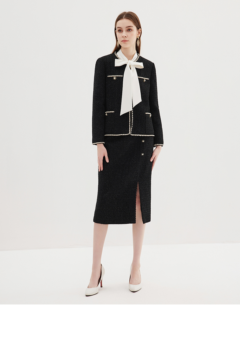 EITIE爱特爱精致千金感黑色通勤直筒小香风粗花呢外套秋季新款C2303210