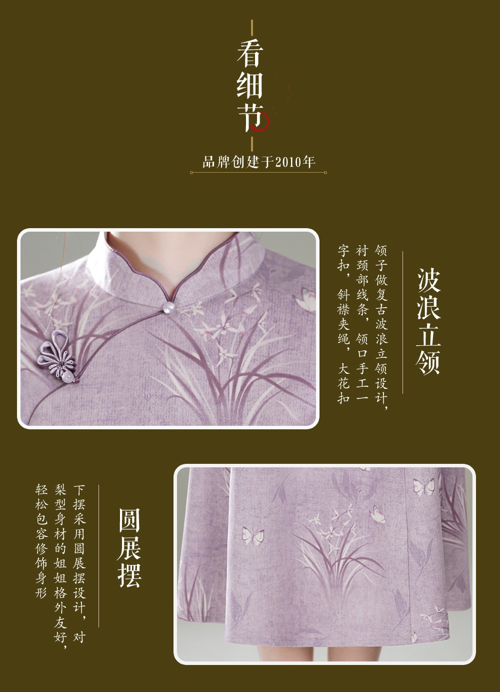 【紫仙】麂皮绒复古长袖,新中式国风旗袍连衣裙XGT-Q25121