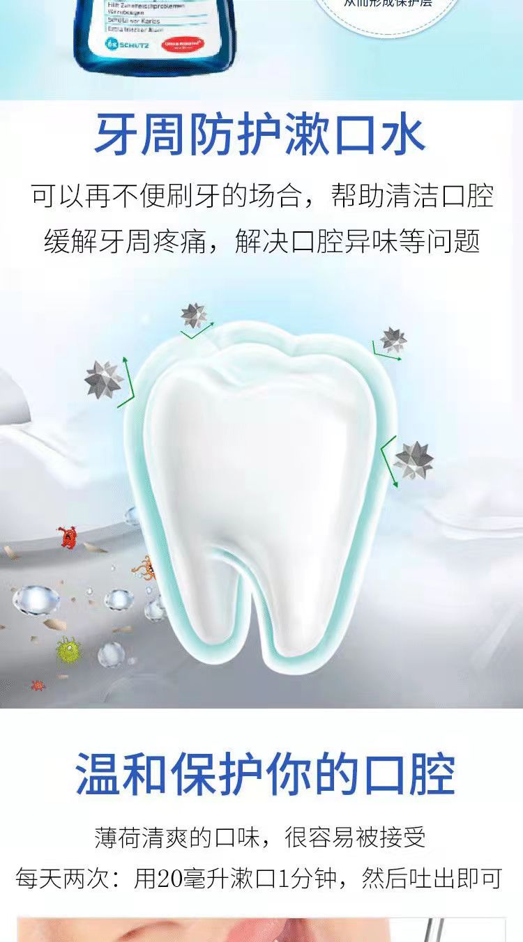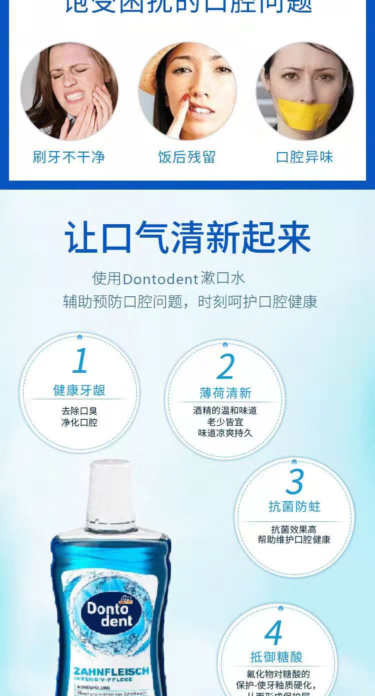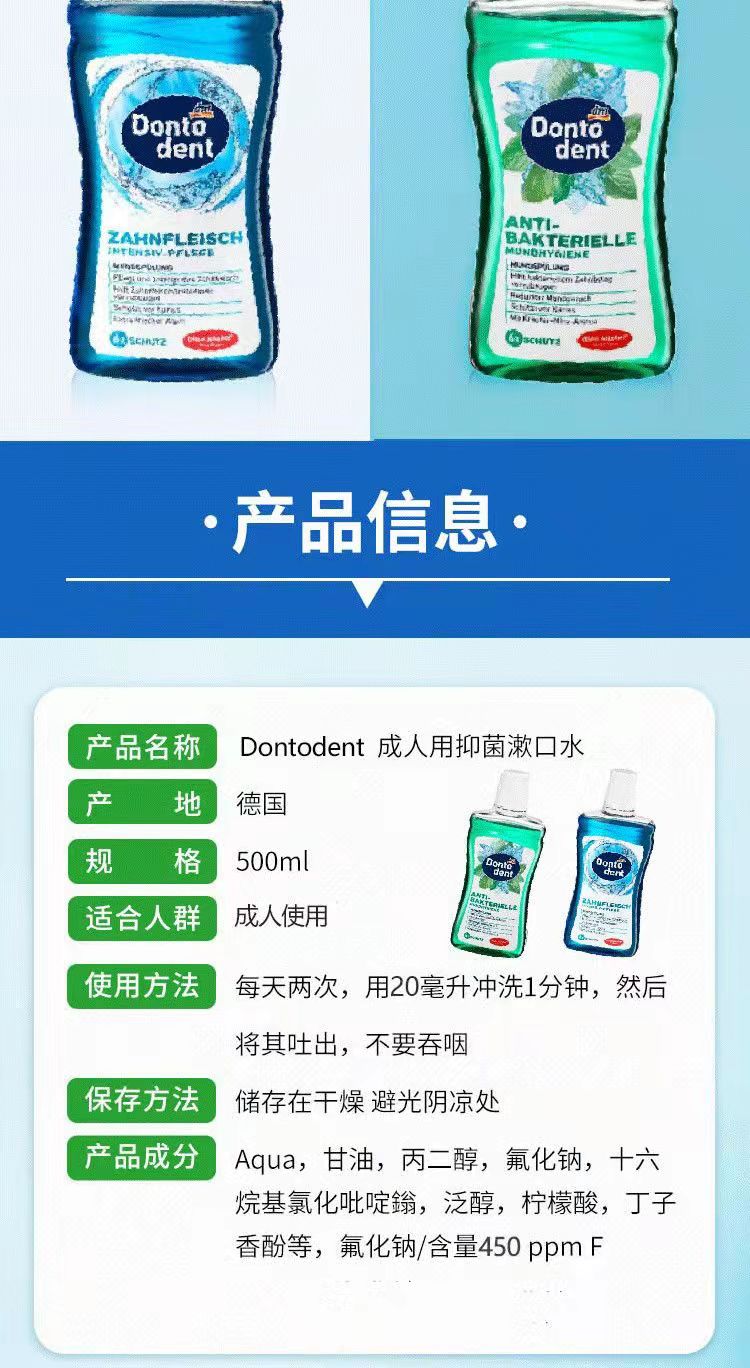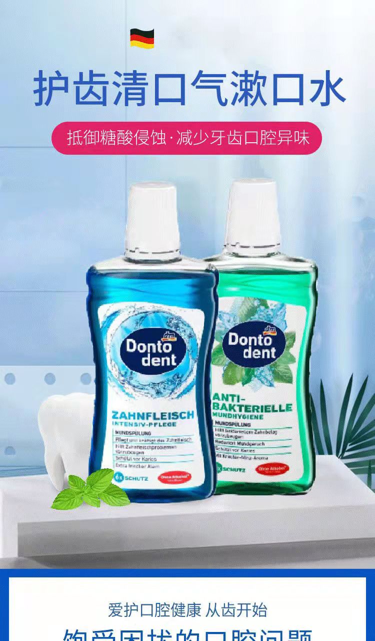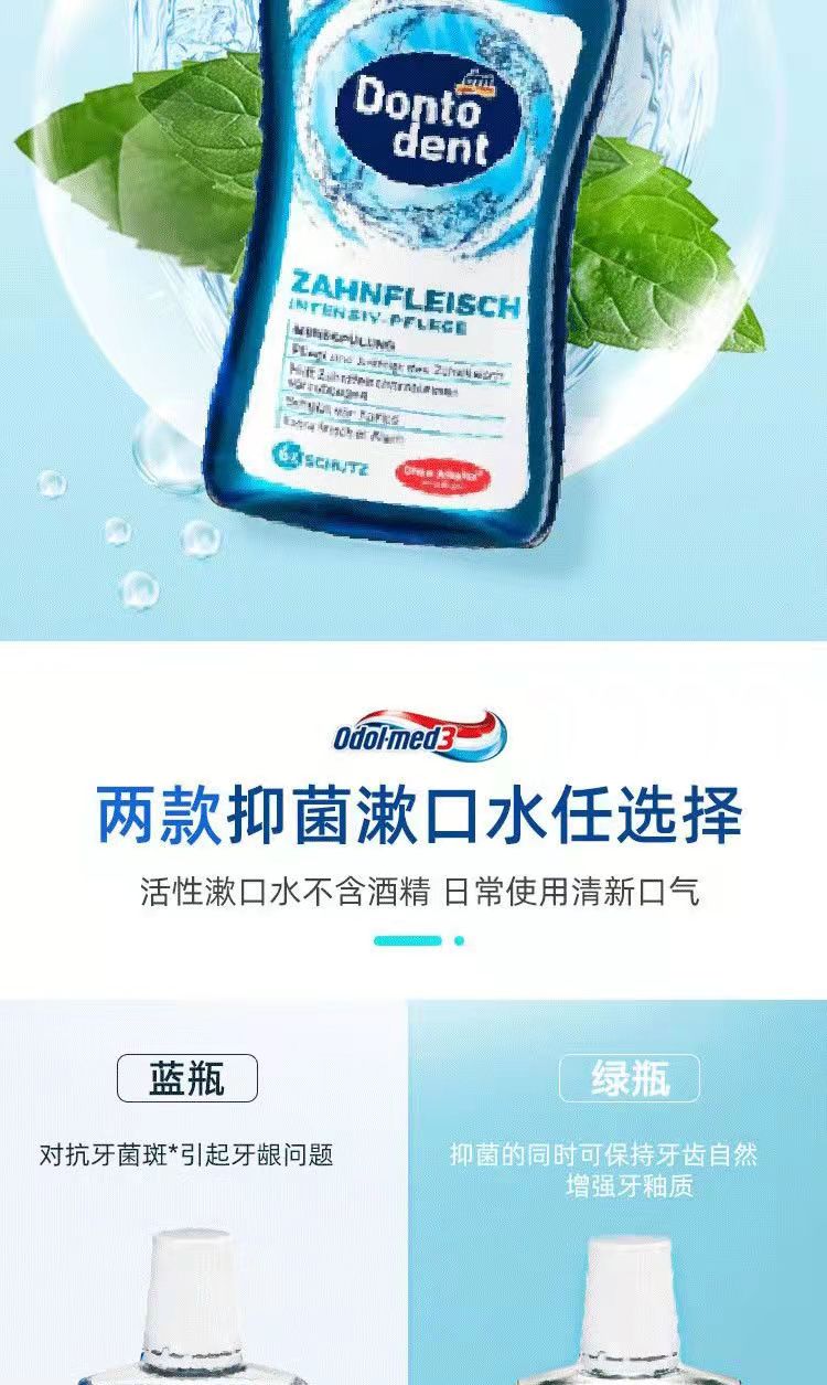 【品牌直发】德国漱口水原装进口东托登特 蓝色/绿色漱口水 儿童漱口水 500ML/瓶